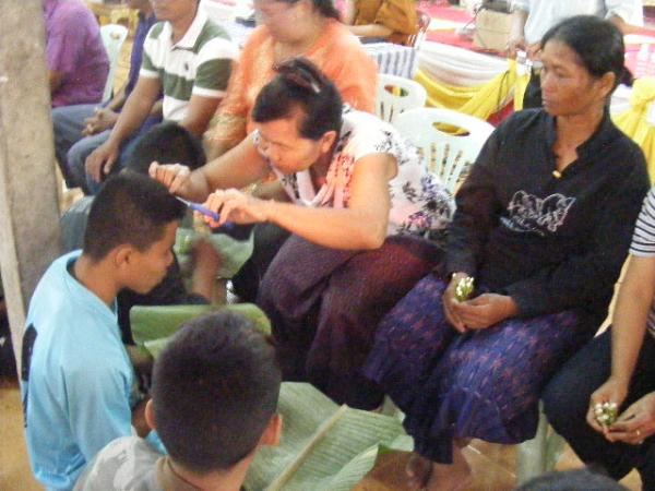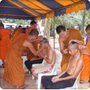 ภาพบรรยากาศวันบรรพชาสามเณร พ่อแม่ ญาติพี่น้องสามเณรมาร่วมงานกันอย่างพร้อมหน้าพร้อมตา