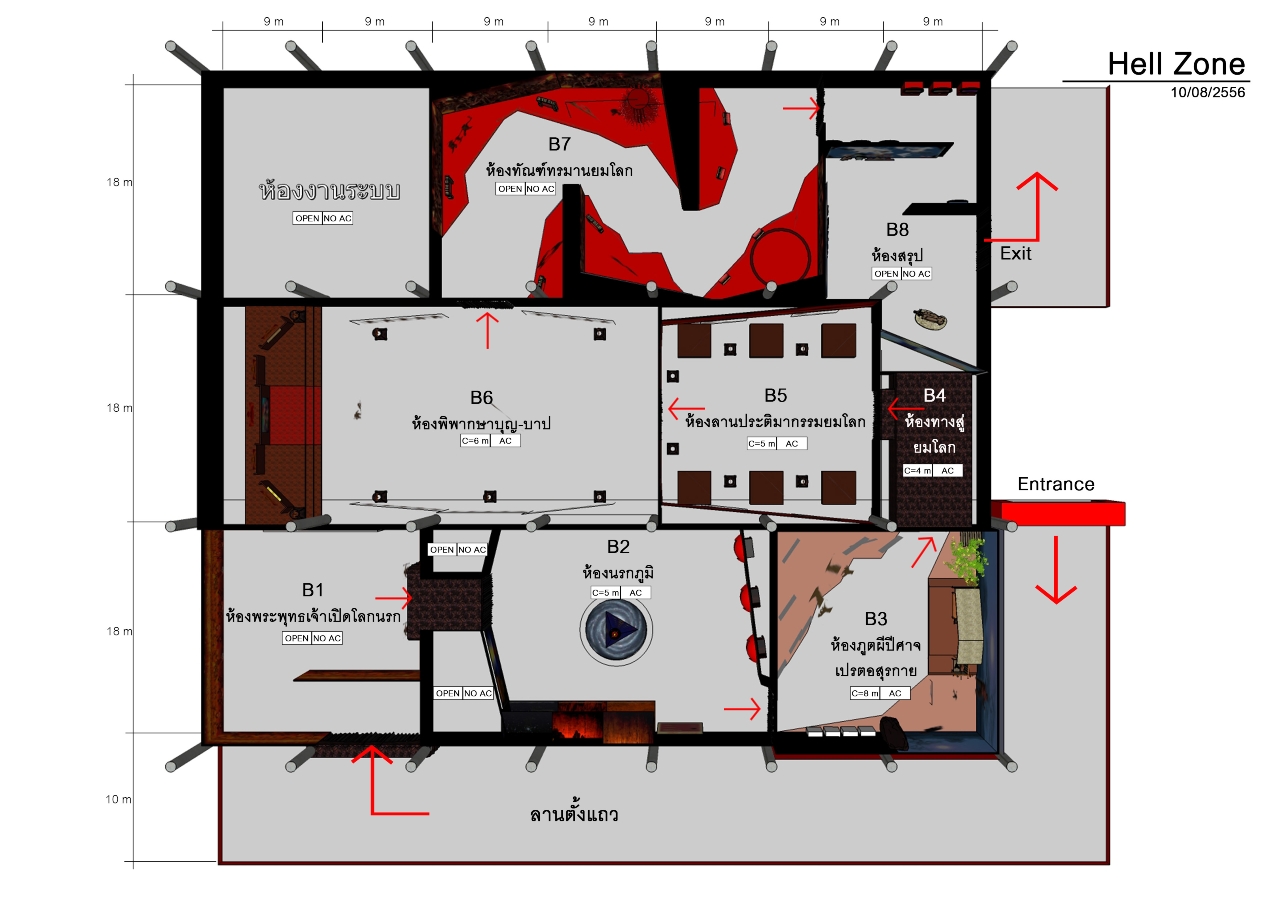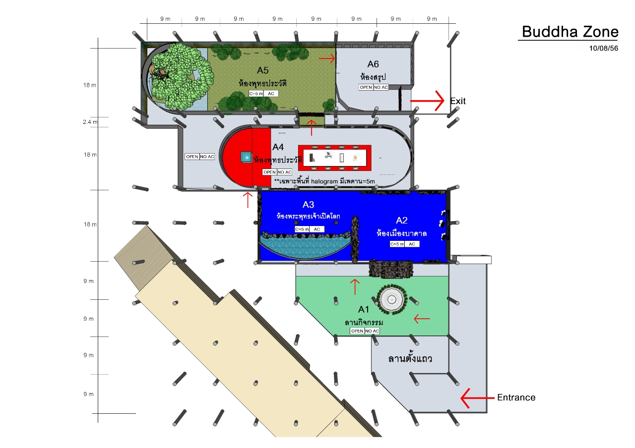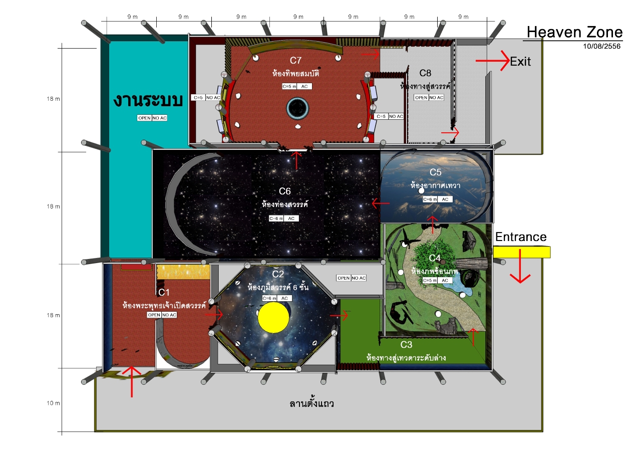 การจัดแสดงเน้นความเสมือนจริงด้วยเทคโนโลยีทันสมัยเพื่อให้ผู้เข้าชมได้บรรยากาศสมจริงของนรก สวรรค์ วันพระพุทธเจ้าเปิดโลก และการฝึกสมาธิภายในนิทรรศการประกอบด้วย 4 โซนหลักคือ