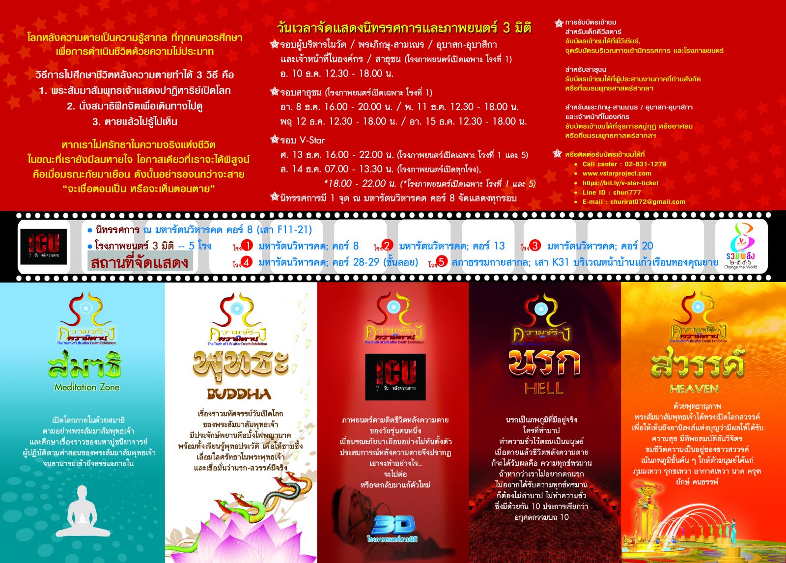นิทรรศการความจริงหลังความตาย จัดแสดงโลกหลังความตาย ตามหลักธรรมในพระพุทธศาสนา ทั้งนี้การจัดแสดงอยู่บนพื้นฐานของ ตถาคตโพธิสัทธา คือความเชื่อในการตรัสรู้ธรรมของพระสัมมาสัมพุทธเจ้า
