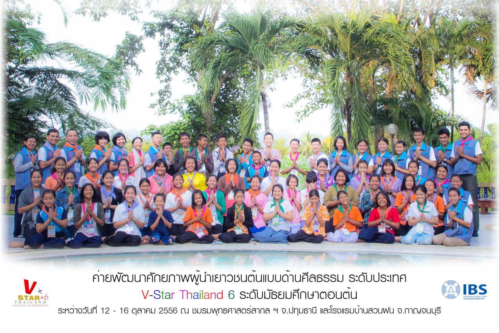 ชมรมพุทธศาสตร์สากล ในอุปถัมภ์สมเด็จพระมหารัชมังคลาจารย์ จัดค่ายพัฒนาศักยภาพผู้นำเยาวชนต้นแบบด้านศีลธรรม ระดับประเทศ ( V-Star Thailand 6 ) มี 2 รุ่น คือ ระดับมัธยมต้น ระหว่างวันที่ ๑๒ - ๑๖ ตุลาคม ๒๕๕๖ และระดับมัธยมปลาย ระหว่างวันที่ ๑๙ – ๒๖ ตุลาคม ๒๕๕๖ ณ ชมรมพุทธศาสตร์สากล ฯ จ.ปทุมธานี และโรงแรมบ้านสวนฝน จ.กาญจนบุรี ในการจัดค่ายครั้งนี้ มีเด็กดี V-Star จากทั่วประเทศเดินทางมารวมตัวกันกว่า ๒๐๐ คน โดยมีภาพบรรยากาศอันแสนประทับใจมาให้ชมกัน