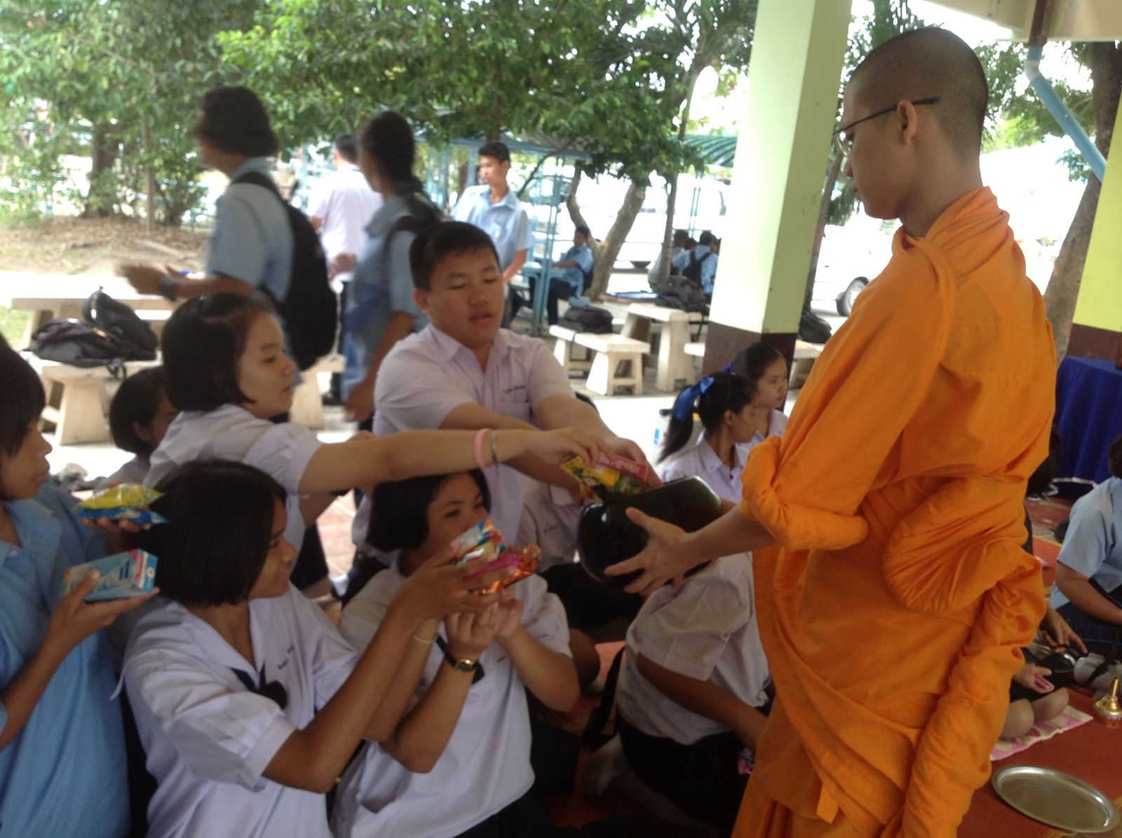 นักเรียนกว่า 50 คนจะมาร่วมกันทำบุญตักบาตร โดยนำข้าวสารอาหารแห้งที่เตรียมมาจากบ้านบ้าง มาซื้อที่จุดบริการขายอาหารตักบาตรบ้าง