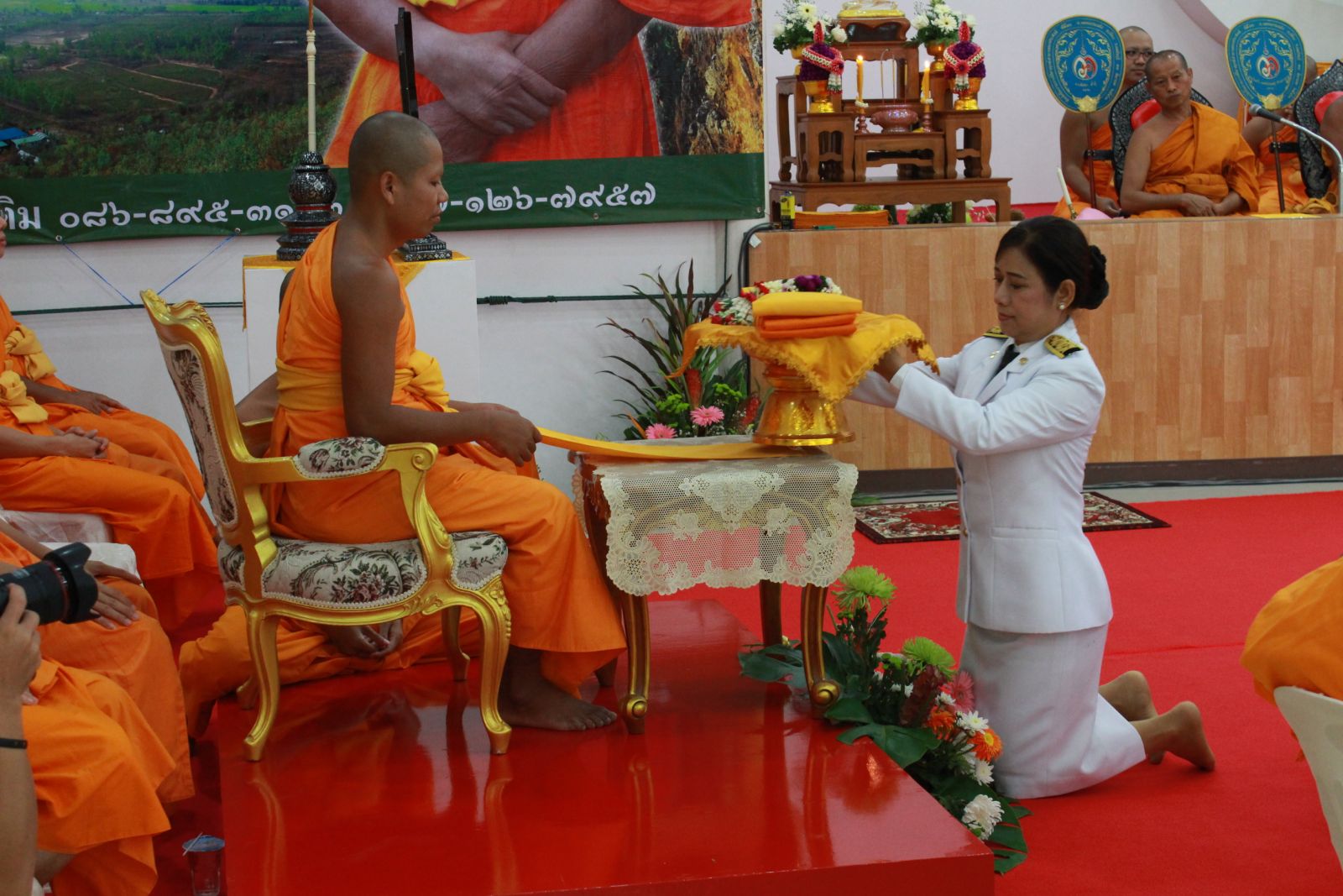 ตัวแทนฆราวาสถวายผ้าไตรแด่พระครูใบฎีกาวรวิทย์ ถิรปญฺโญ