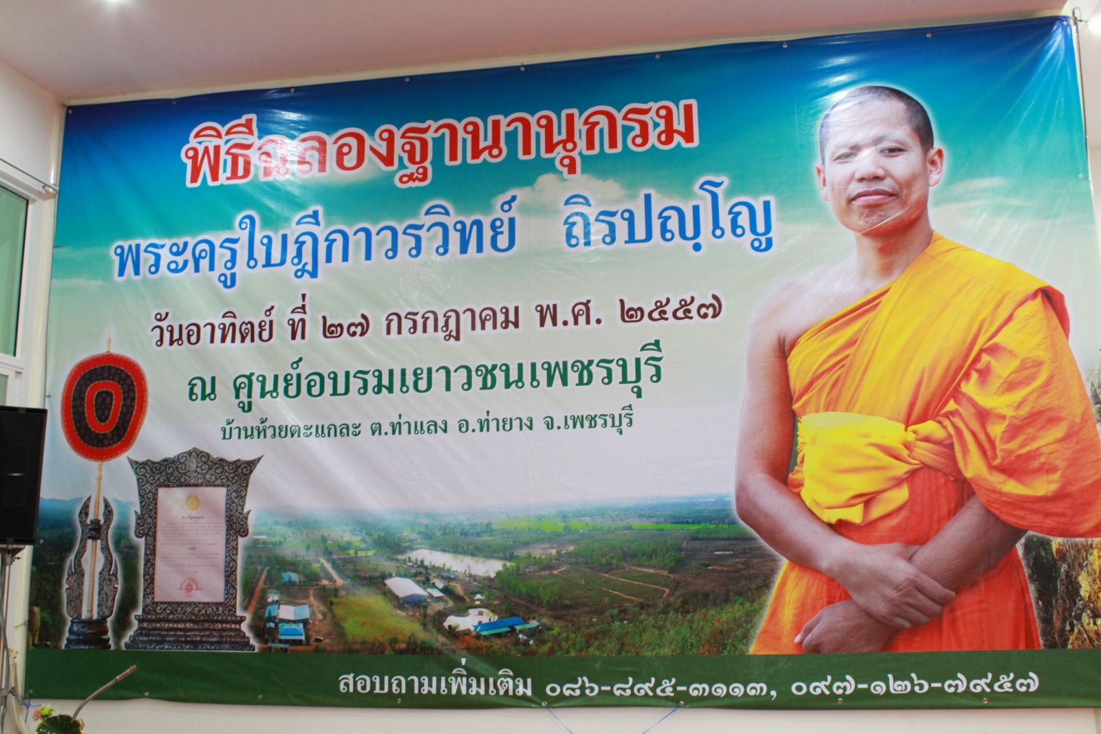 พระครูใบฎีกาวรวิทย์ ถิรปญฺโญ พระประธานจังหวัดและประธานศูนย์อบรมเยาวชนเพชรบุรี