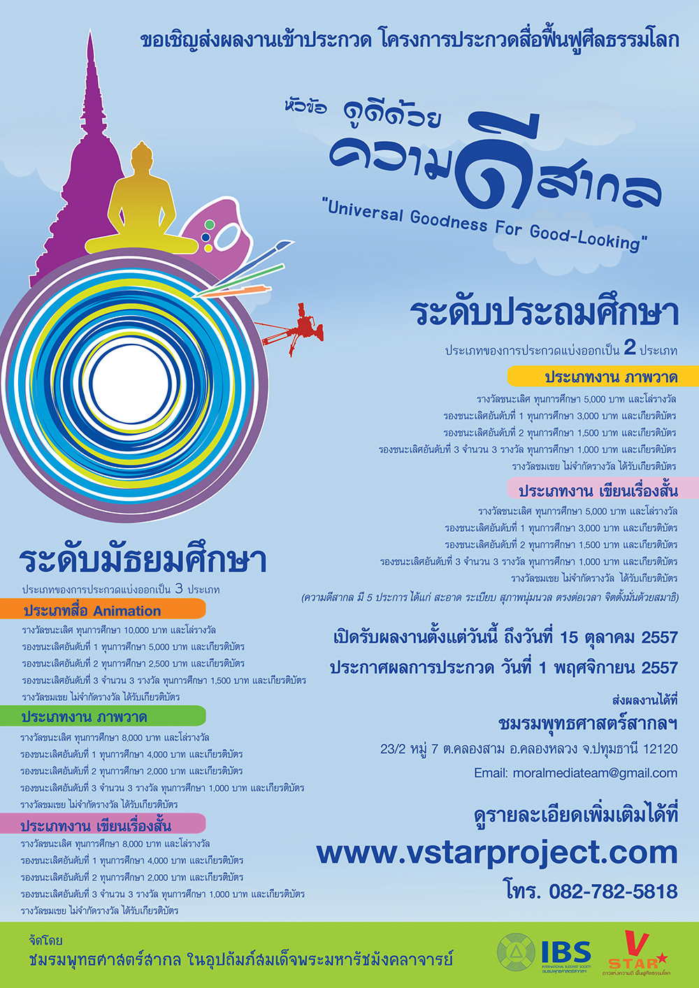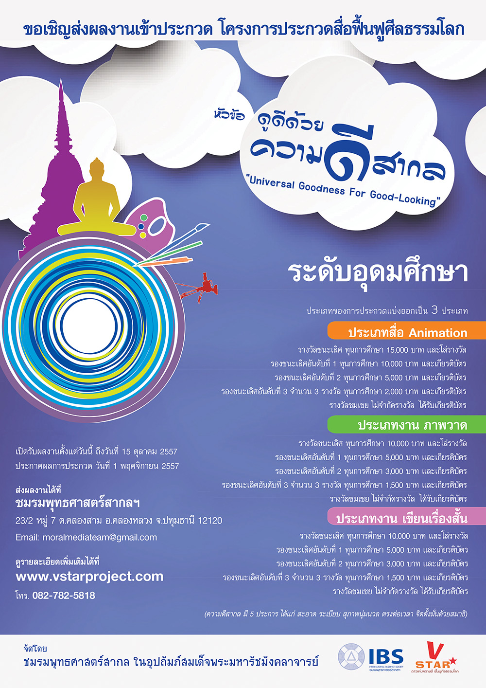 ขอเชิญน้องๆ V-Star และพี่ๆนิสิตนักศึกษา ส่งผลงานเข้าประกวดสื่อฟื้นฟูศีลธรรมโลก