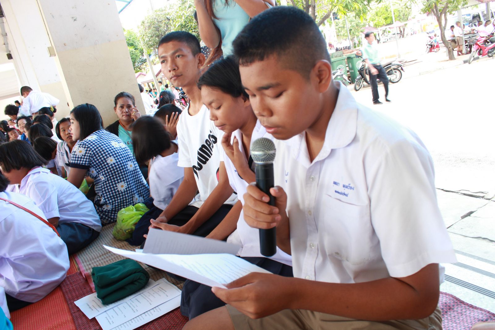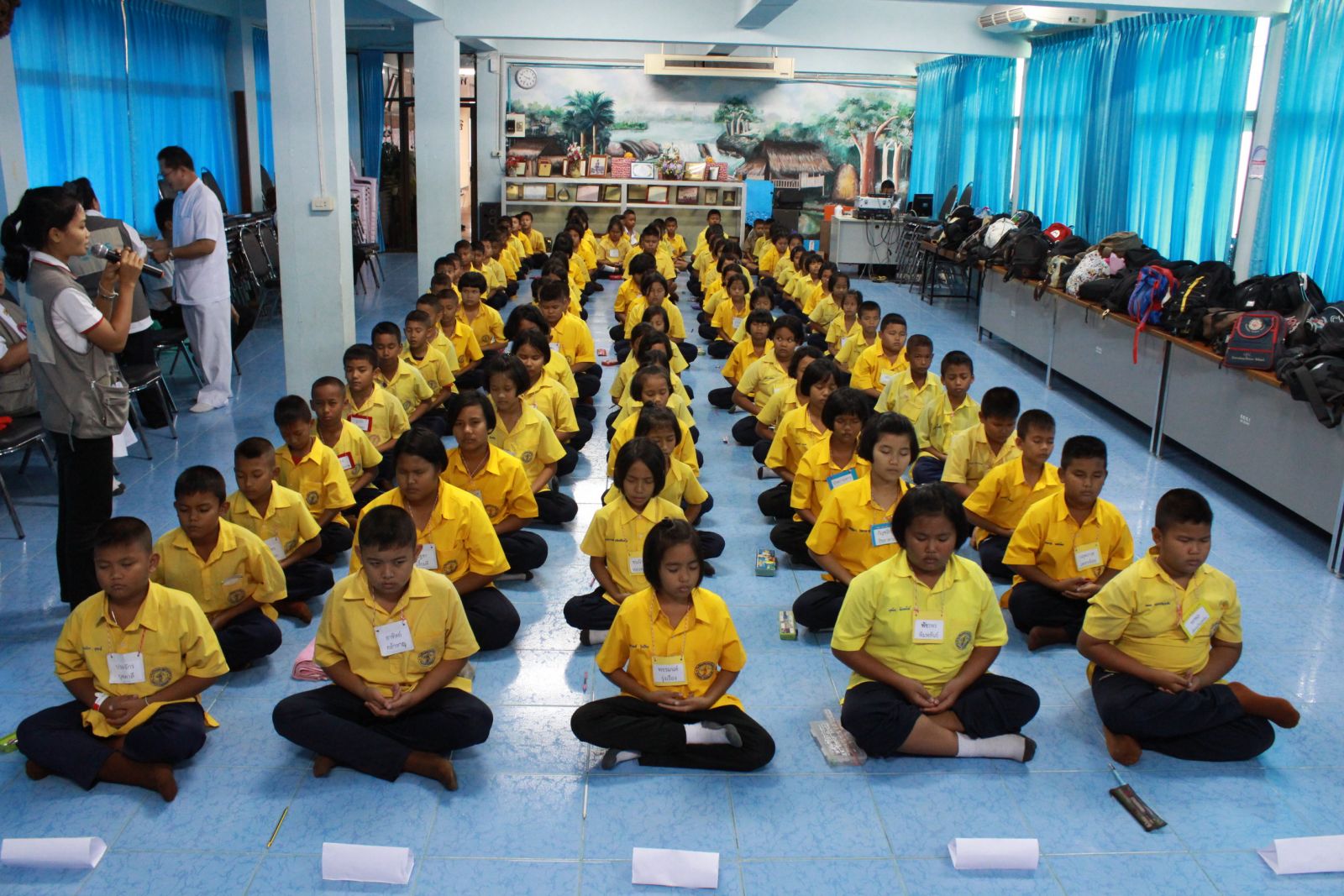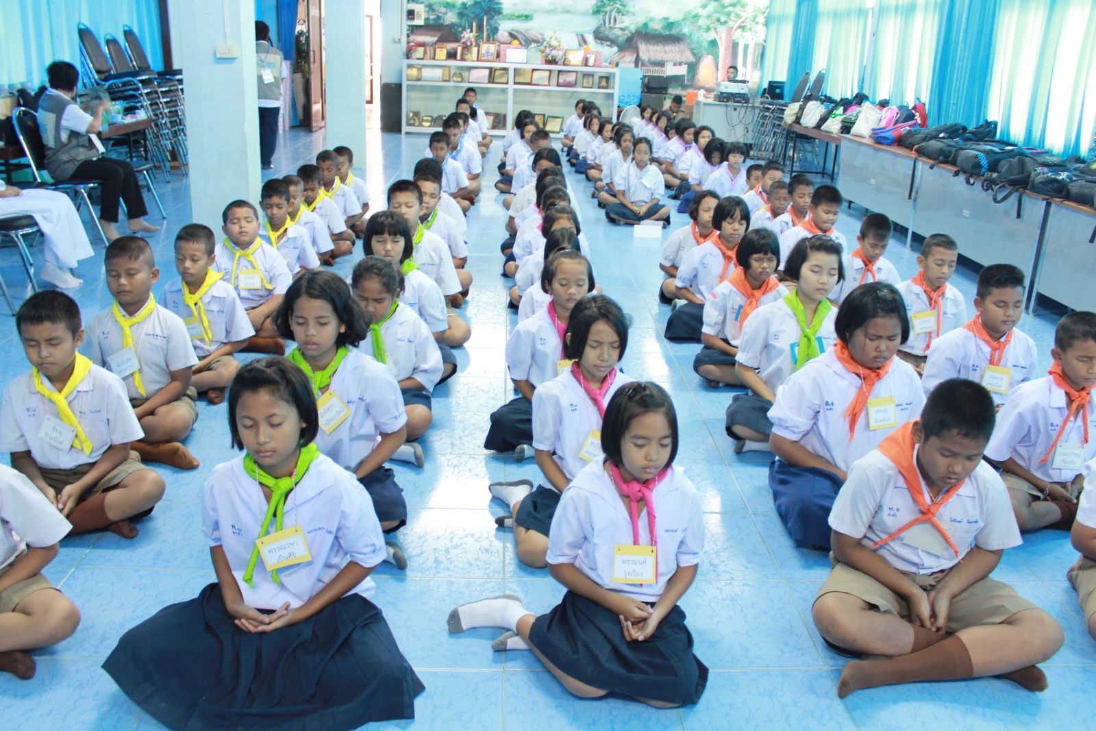 นักเรียนปฏิบัติธรรมนั่งสมาธิในช่วงสาย