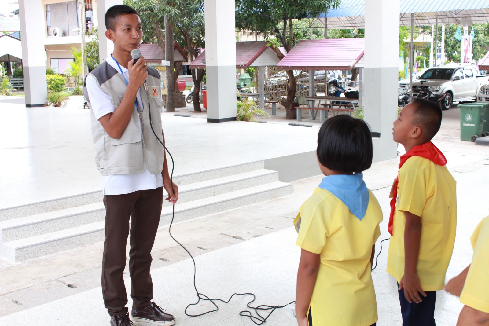 คุณครูมงกุฏ ตรีเงินกุล ครูประสานงานโครงการวีสตาร์ เป็นพิธีกร