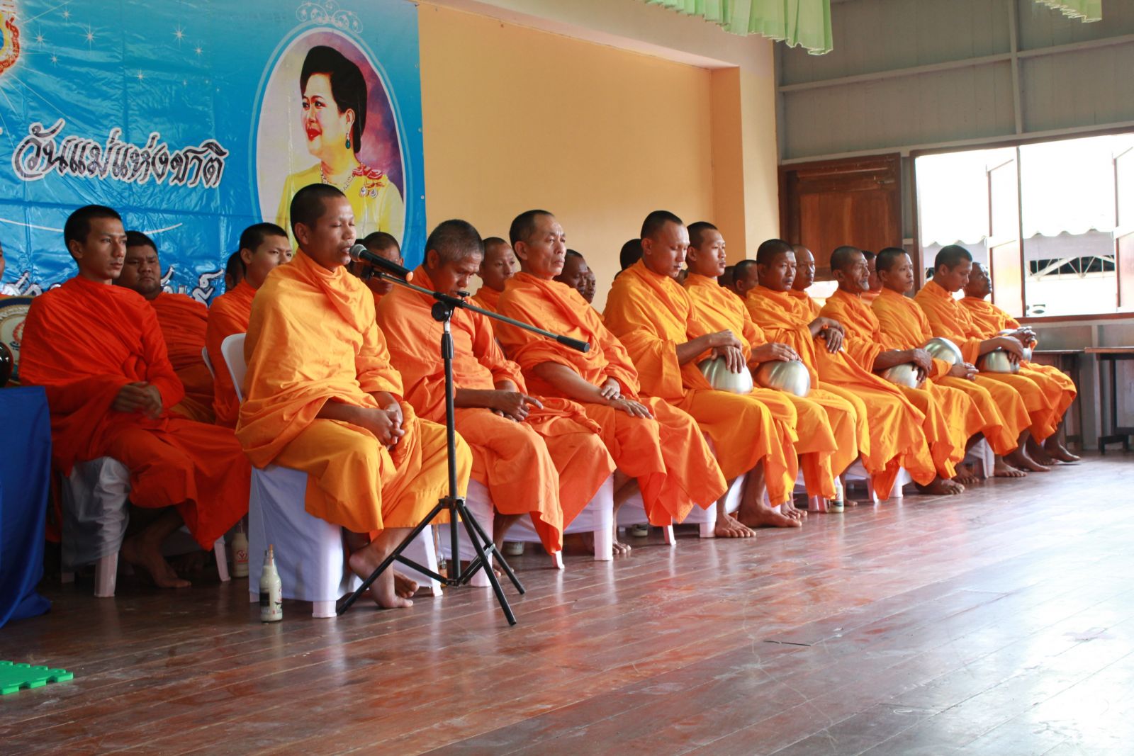นำขบวนคณะสงฆ์เดินแถวรับบาตร