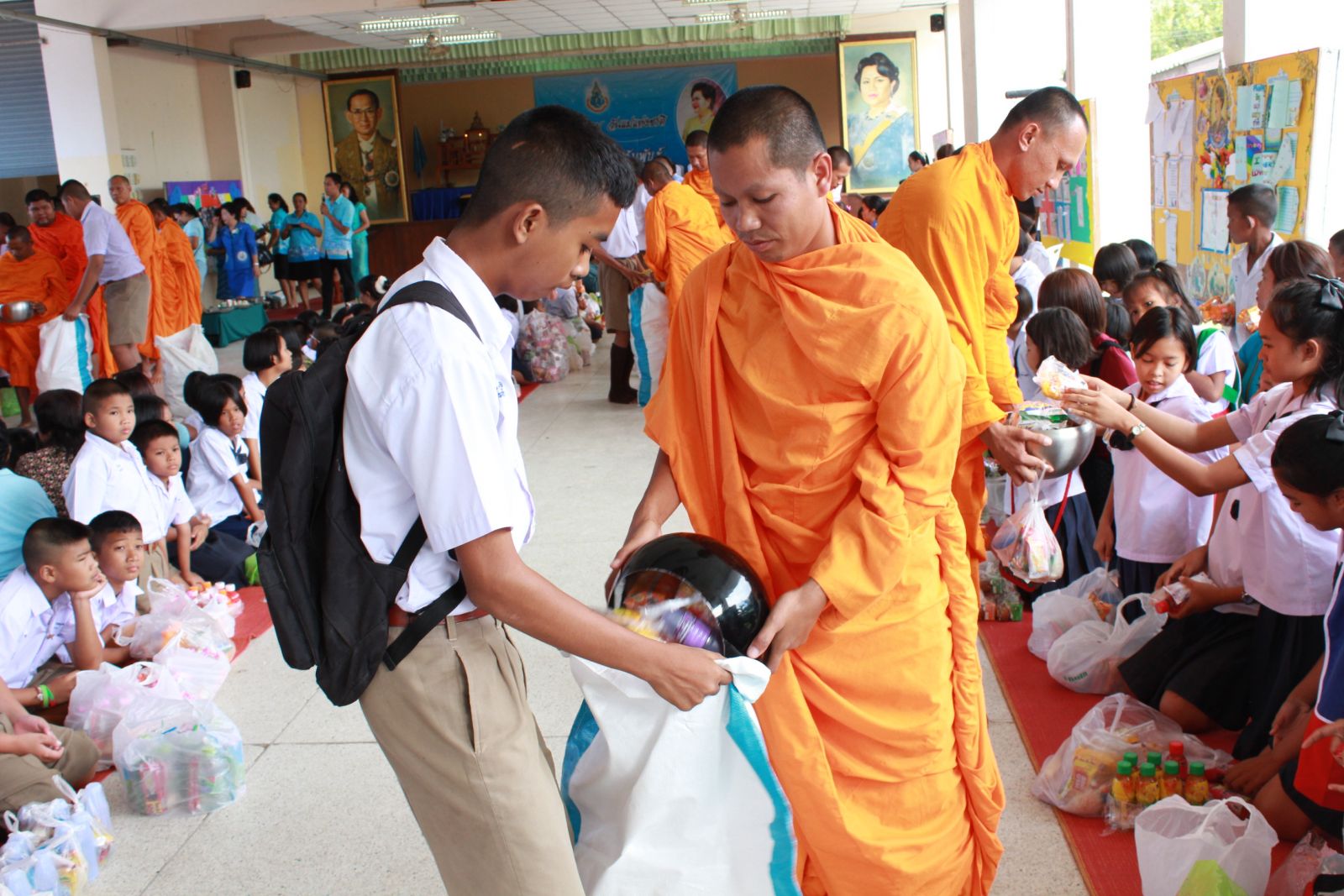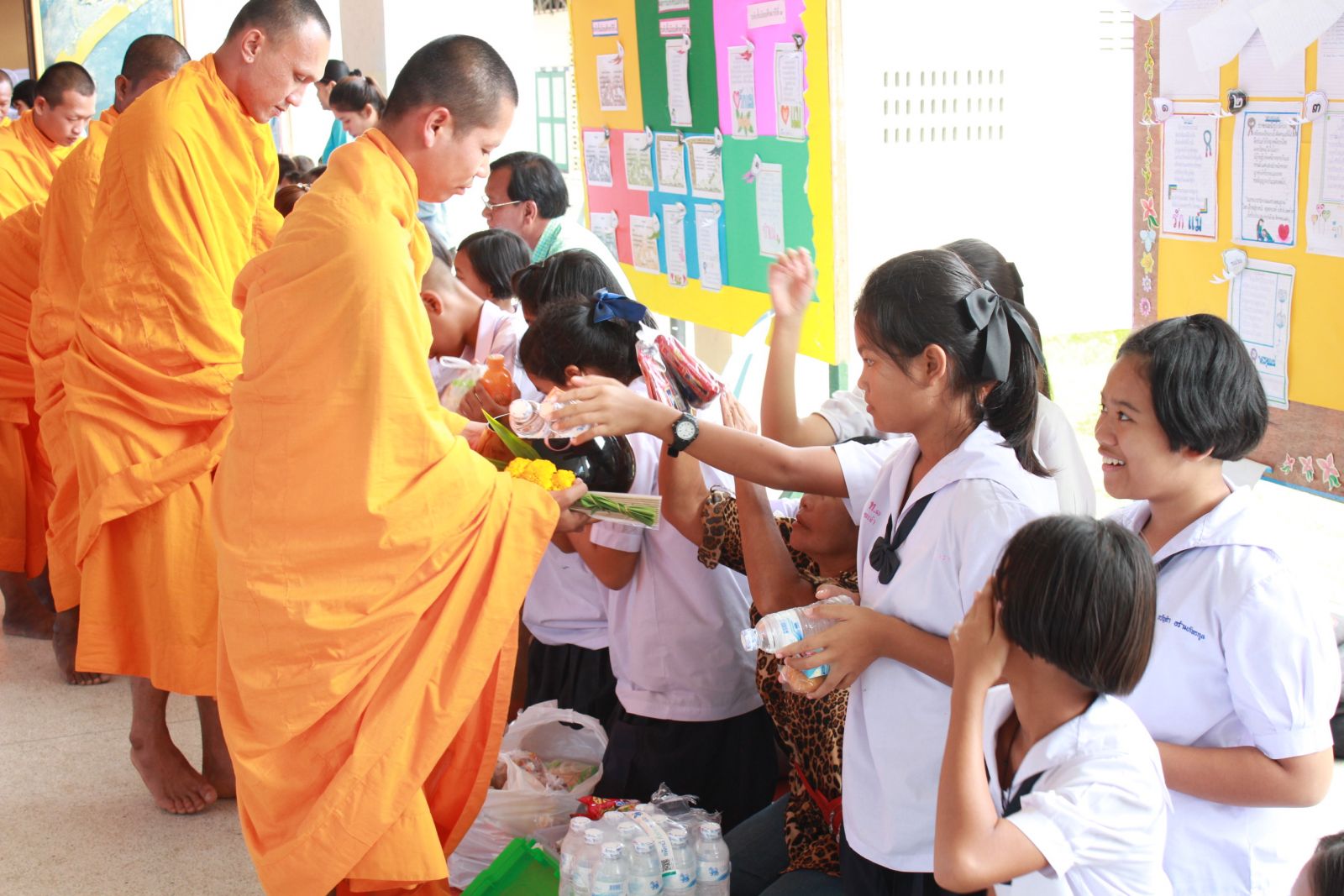 นักเรียนช่วยถ่ายบาตรจากพระอาจารย์