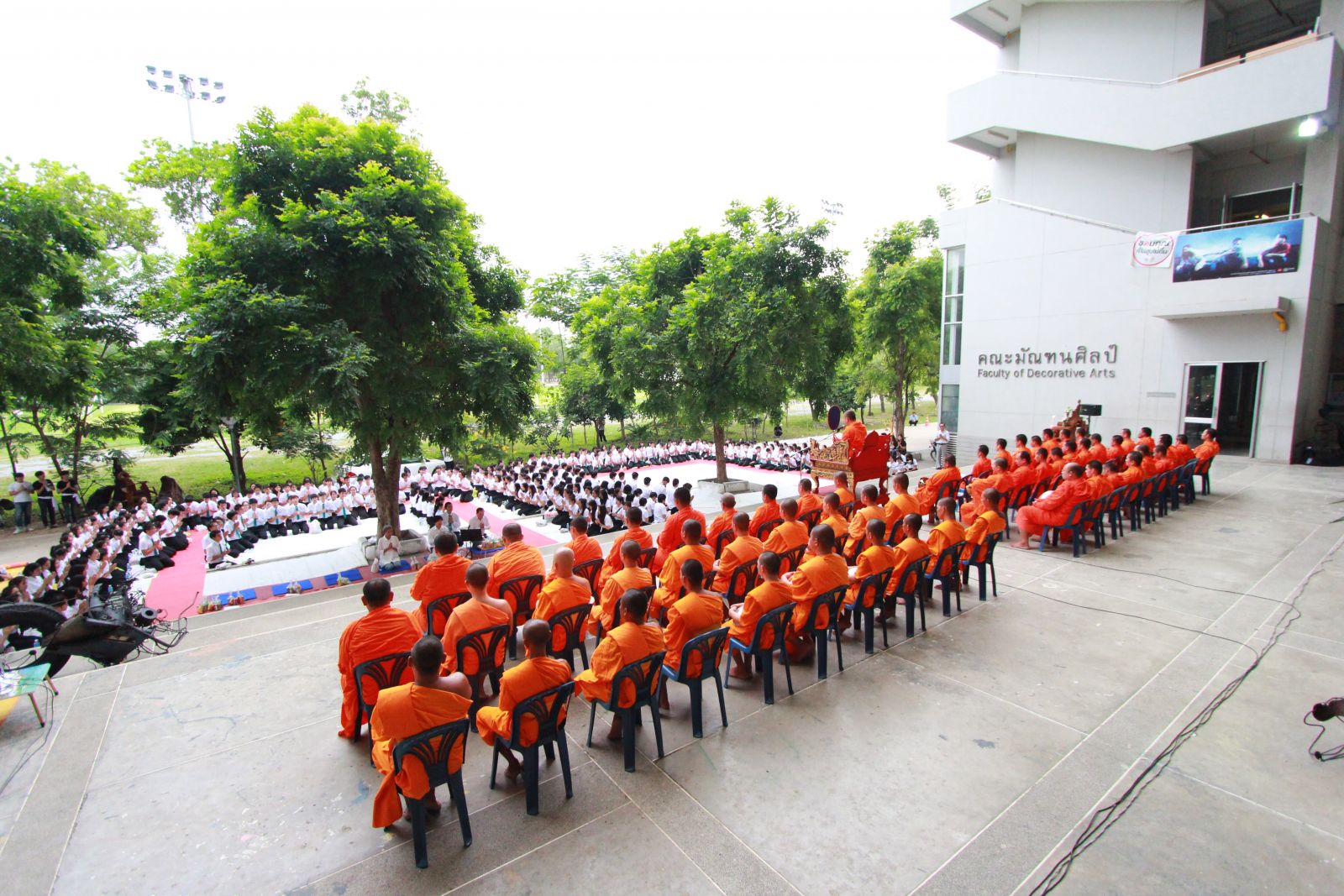 วันที่ 5 สิงหาคมที่ผ่านมา คณะกรรมการชมรมพุทธศาสตร์มหาวิทยาลัยศิลปากรจัดพิธีตักบาตรต้อนรับน้องใหม่แด่พระภิกษุสงฆ์จำนวน 59 รูป ณ บริเวณหน้าตึกคณะมัณฑณศิลป์ ภายในงานมีคณาจารย์และนักศึกษาน้องใหม่คณะมัณฑณศิลป์รวมทั้งประชาชนผู้สนใจเข้าร่วมงานกว่า 350 คน การตักบาตรในครั้งนี้มีวัตถุประสงค์เพื่อสร้างความเป็นศิริมงคล คงไว้ซึ่งประเพณีอันดีงามในพระพุทธศาสนา ส่งเสริมคุณธรรมจริยธรรมให้กับนักศึกษาที่เข้าใหม่ และเป็นการสืบทอดอายุพระพุทธศาสนาให้ยืนยาวต่อไป