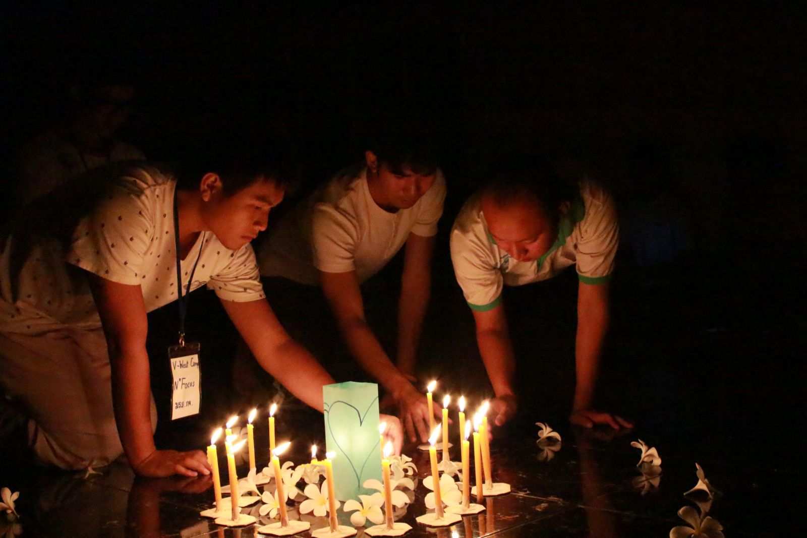 ช่วงหลังจากสวดมนต์ นั่งสมาธิเสร็จ น้องๆ ชมรมพุทธได้จุดเทียนรวมใจถวายเป็นพุทธบูชาแด่พระสัมมาสัมพุทธเจ้าผู้เป็นต้นแบบการสร้างบารมี ซึ่งบรรยากาศเป็นไปด้วยความอบอุ่นน้องๆตัวแทนได้พูดถึงความประทับในการทำชมรมพุทธ