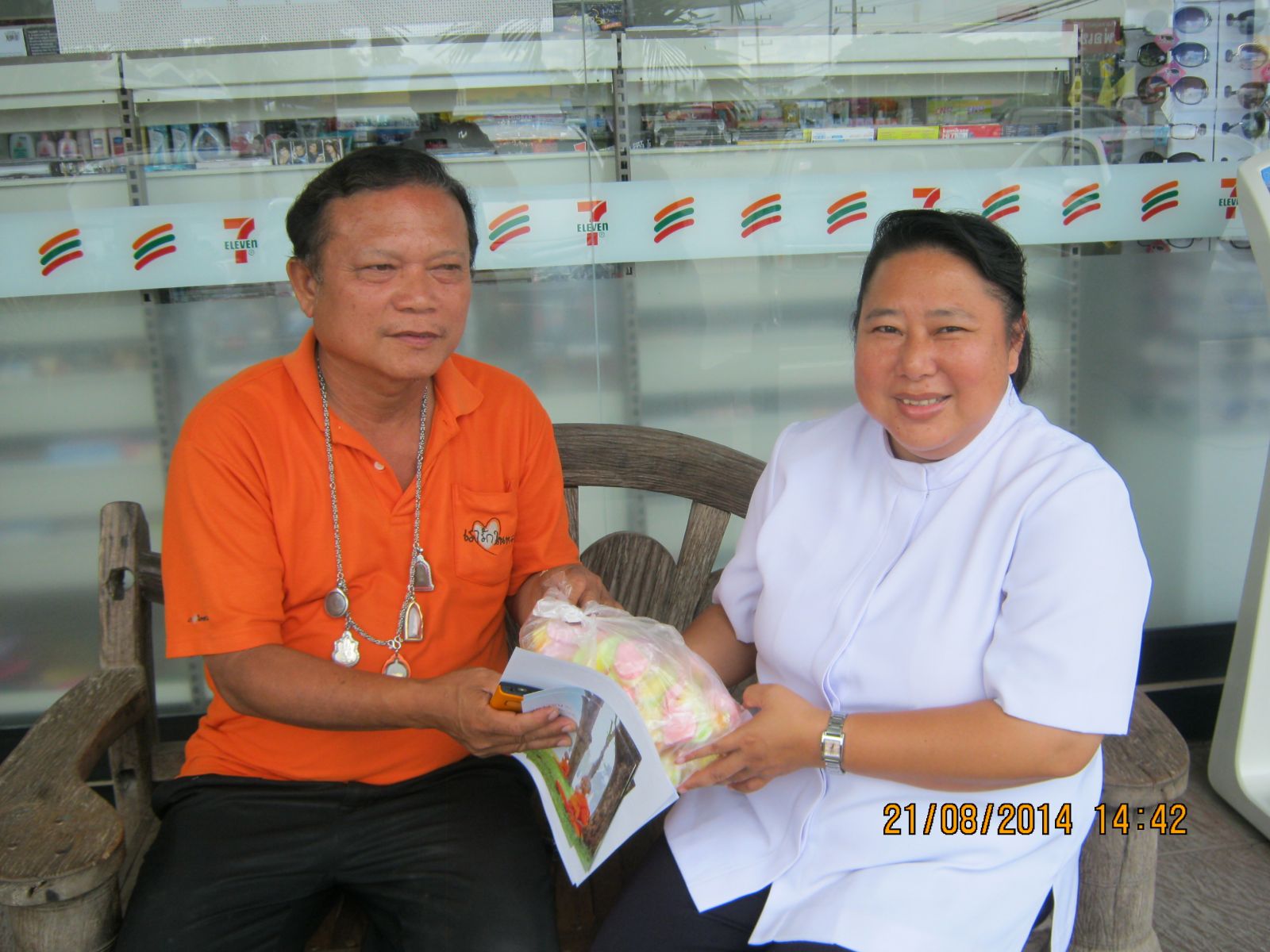 รูปที่ 4 มอบเอกสารตอบรับเข้าร่วมโครงการกฐินสัมฤทธิ์กับครูผู้ประสานงานโรงเรียนวัดหนองแก