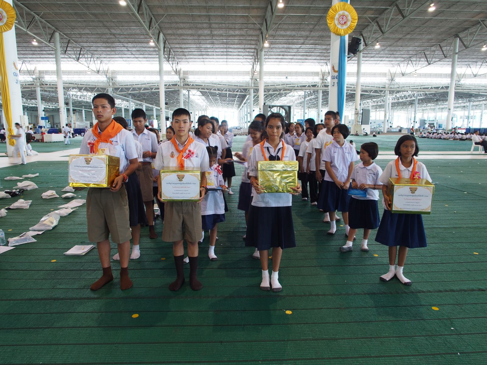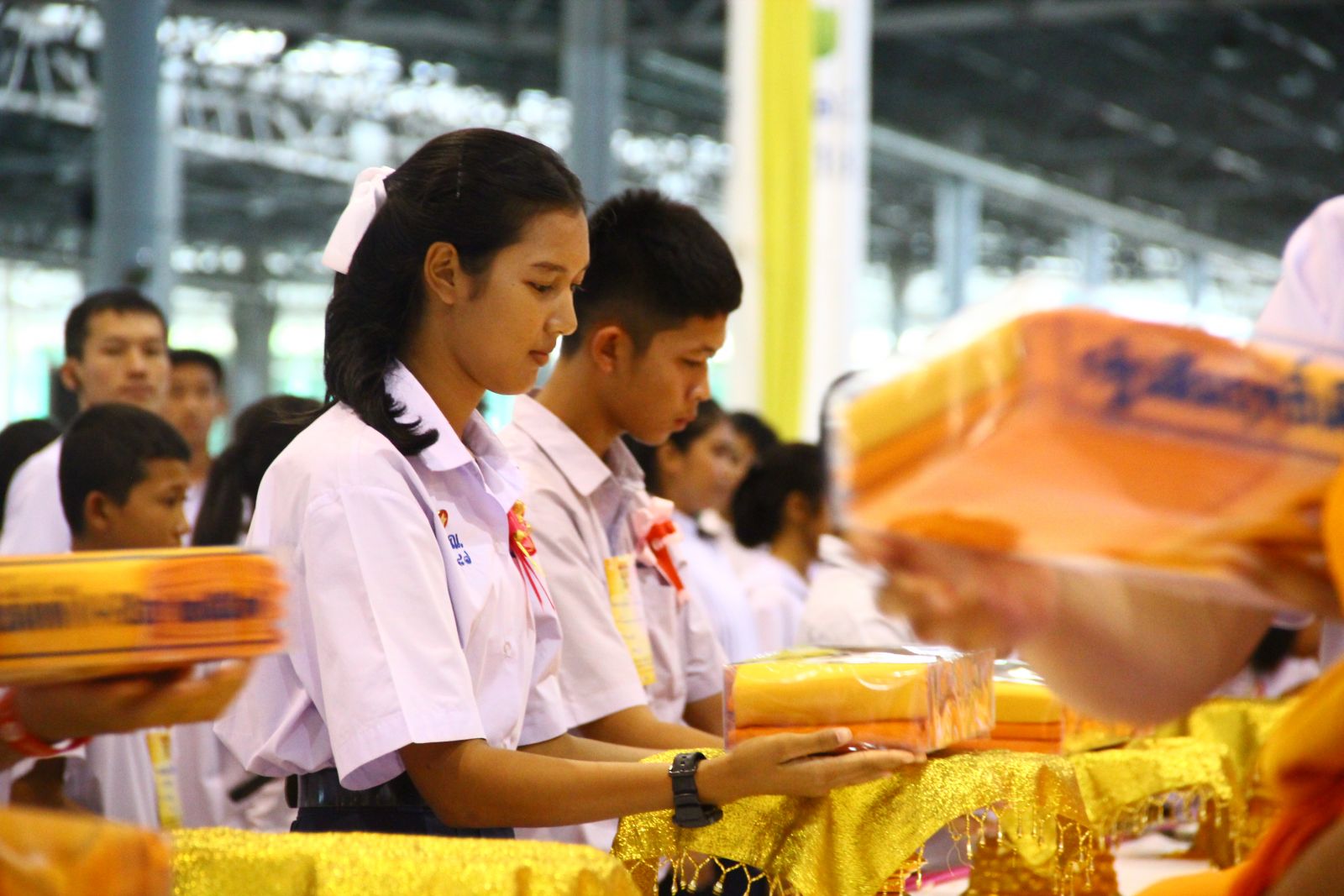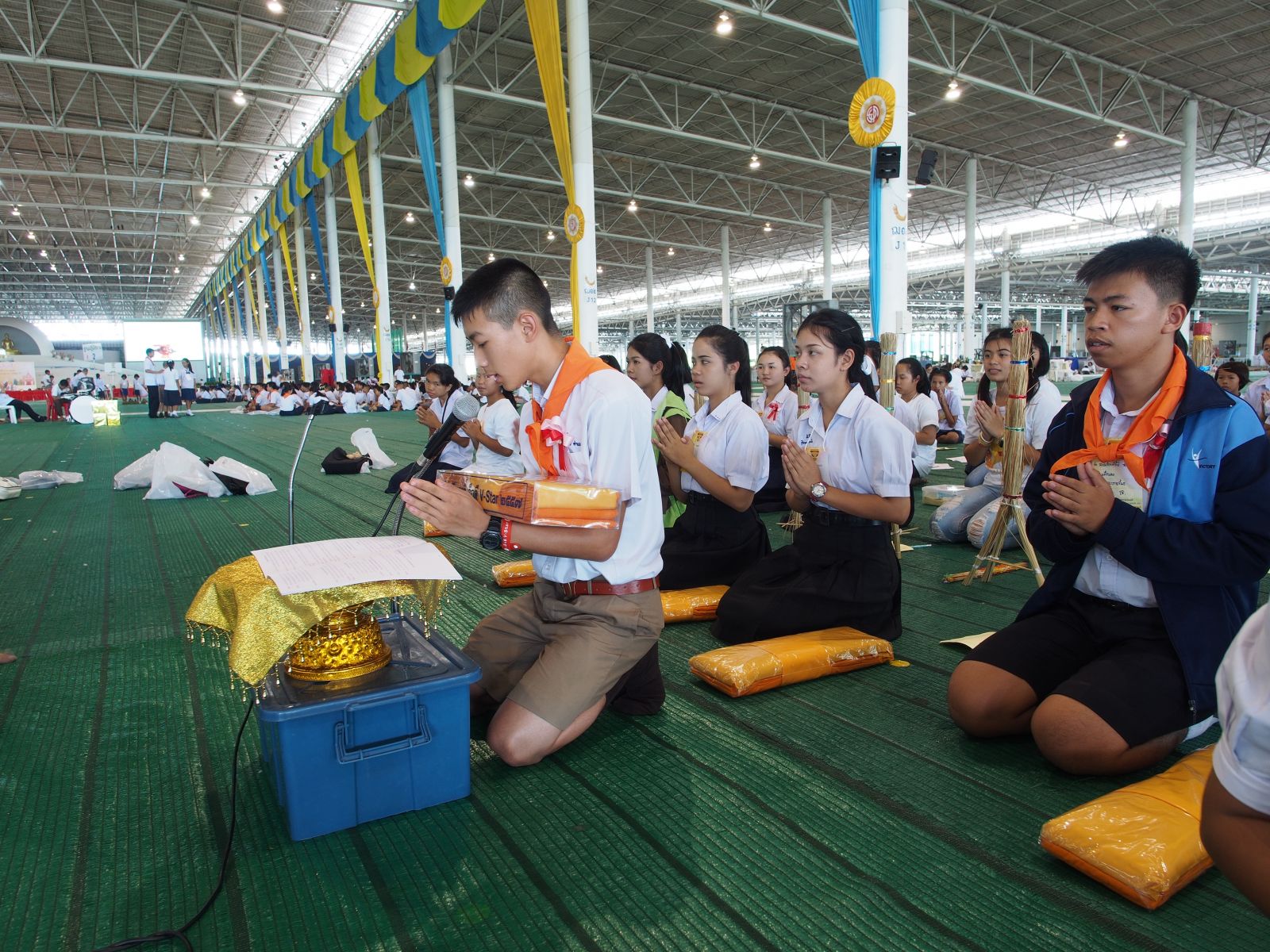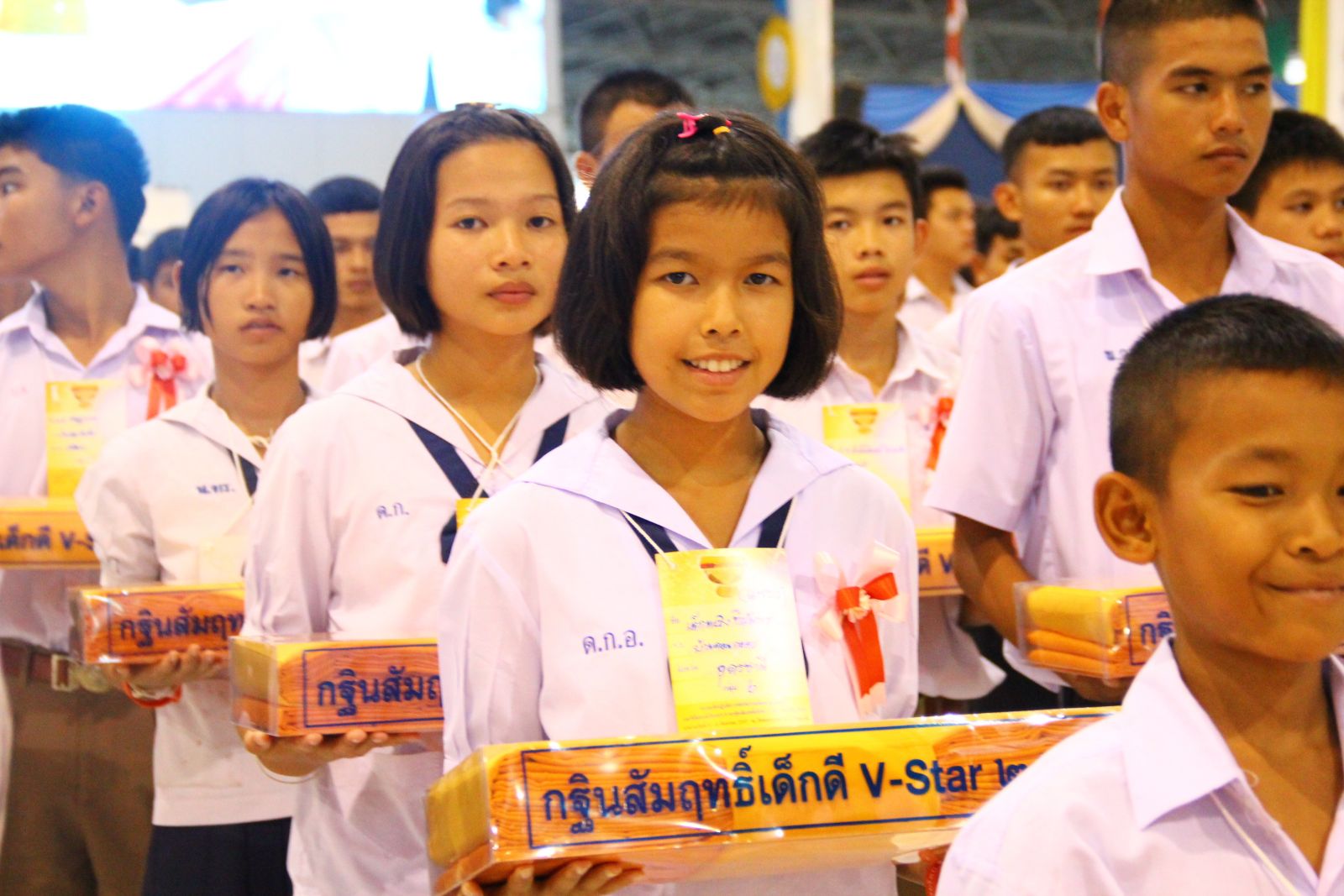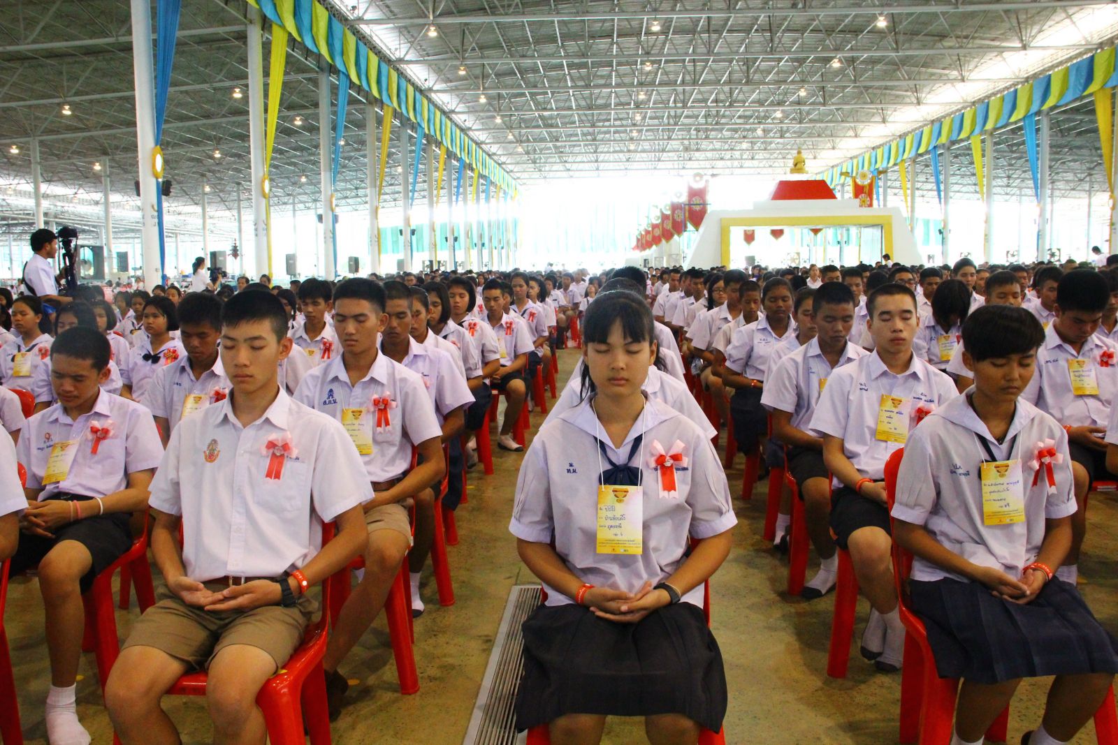 เด็กดี V-Star กว่า 2,000 คน ได้นั่งหลับตาทำสมาธิ ก่อนเข้าสู่พิธีรับผ้าไตรประธานกฐินสัมฤทธิ์เด็กดี V-Star