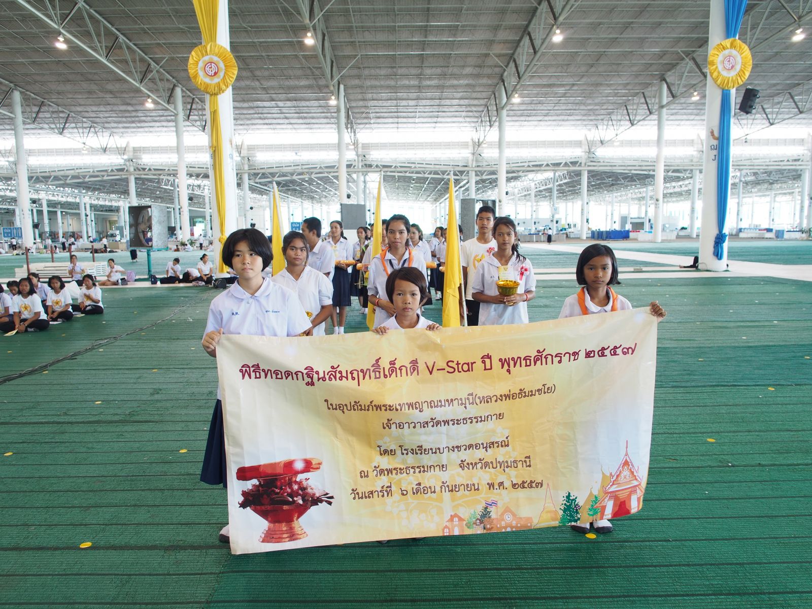 เมื่อวันที่ 6 กันยายนที่ผ่านมา ชมรมพุทธศาสตร์สากล ในอุปถัมภ์สมเด็จพระมหารัชมังคลาจารย์ ได้จัดอบรมเชิงปฎิบัติการจัดกิจกรรมทอดกฐินสัมฤทธิ์ประจำปี 2557 ณ บริเวณหน้ารัตนบัลลังก์ สภาธรรมกายสากล วัดพระธรรมกาย จังหวัดปทุมธานี โดยมีเด็กดี V-Star กว่า 2,000 คน เดินทางมาจากทั่วประเทศ เพื่อให้สืบทอดวัฒนธรรมชาวพุทธที่ดีงามและน้องๆ เด็กดี V-Star จะได้รู้จักการทำทาน ทำหน้าที่กัลยาณมิตร พร้อมรับทราบแนวทางปฏิบัติการจัดกิจกรรมกฐินได้อย่างถูกต้อง