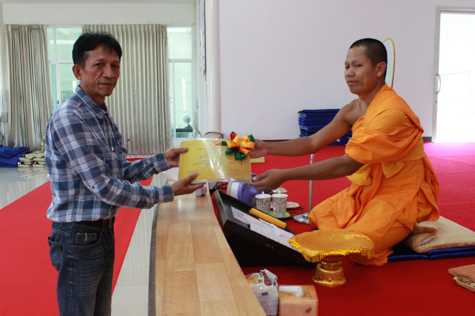 รูปที่ 20 ผอ.พล นกสุข ผู้อำนวยการโรงเรียนเขื่อนเพชร เป็นตัวแทนรับประกาศนียบัตรจากพระอาจารย์