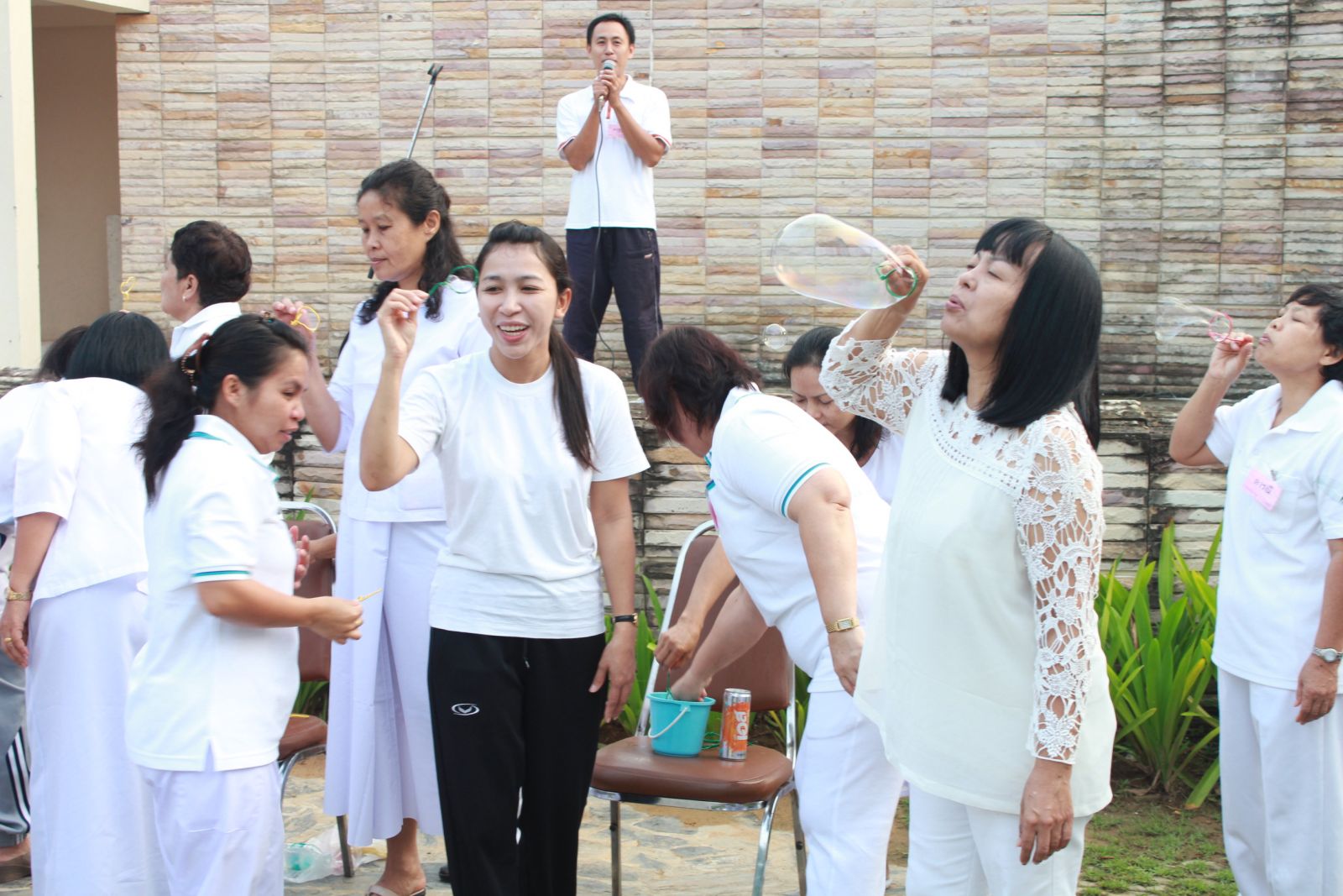 ออกกำลังกาย เป่าดวงแก้ว และถ่ายภาพหมู่