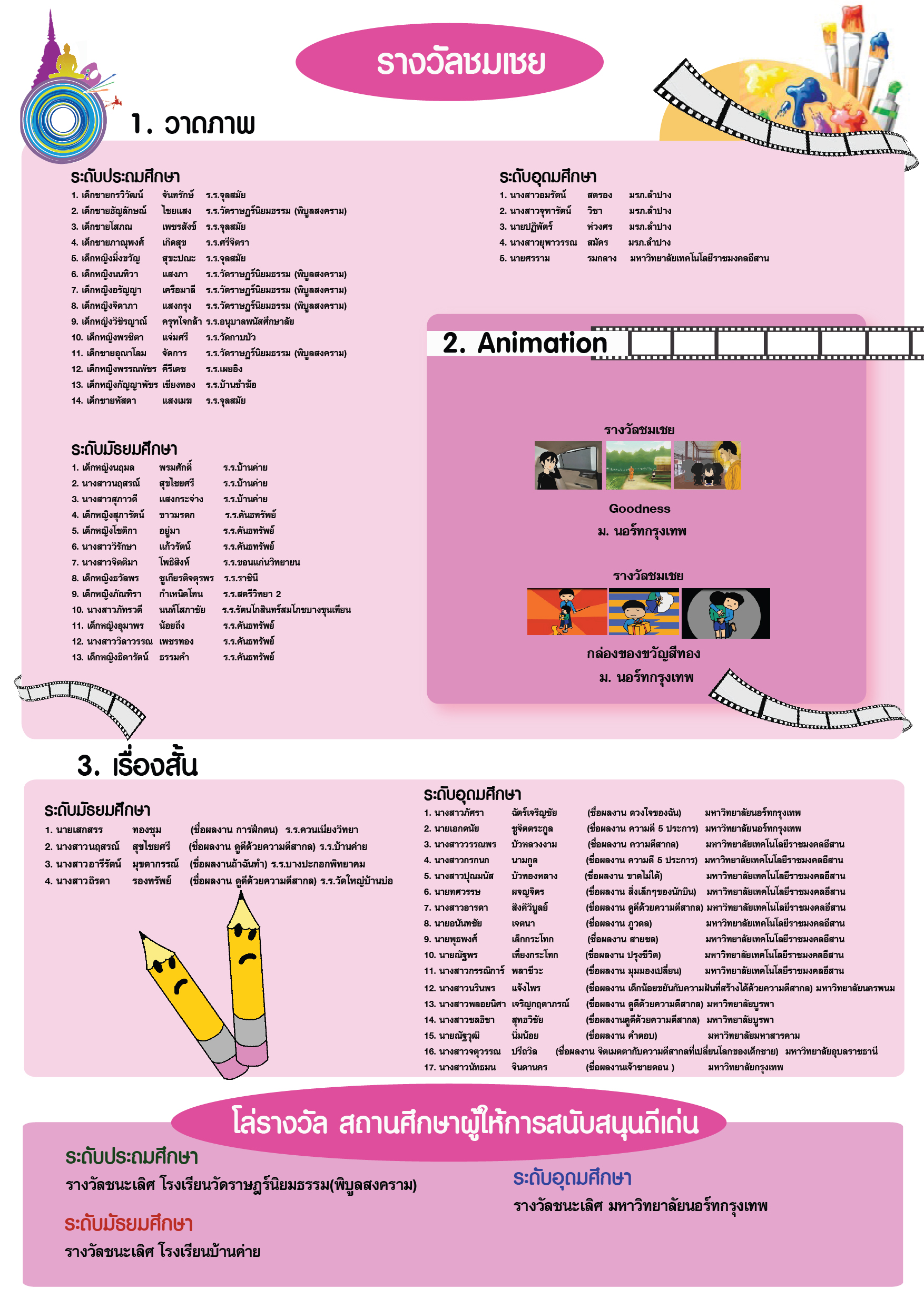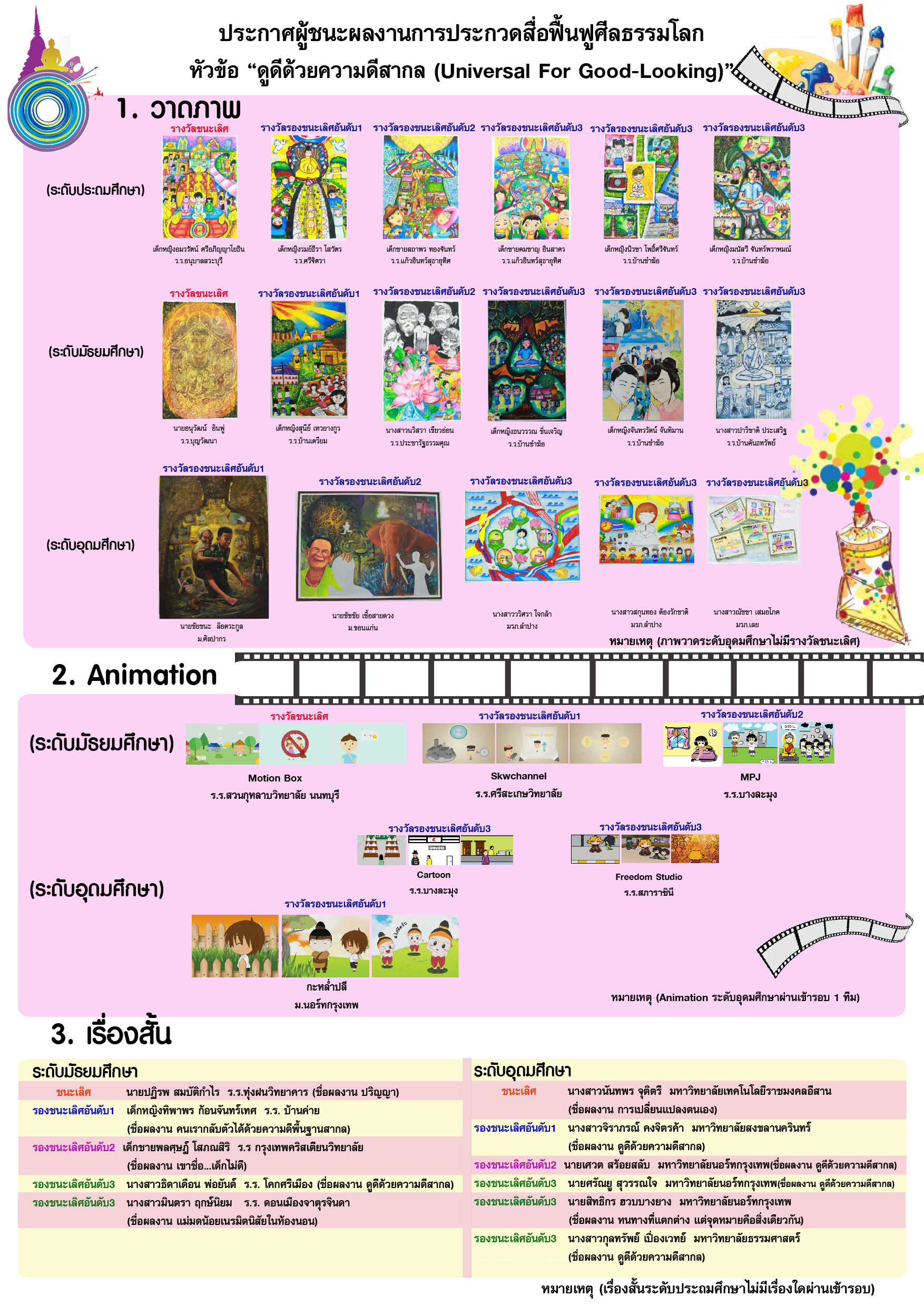 | หัวข้อ | ประกาศผลรางวัลการประกวดสื่อฟื้นฟูศีลธรรมโลก หัวข้อ “ดูดีด้วยความดีสากล (Universal For Good-Looking)” |
