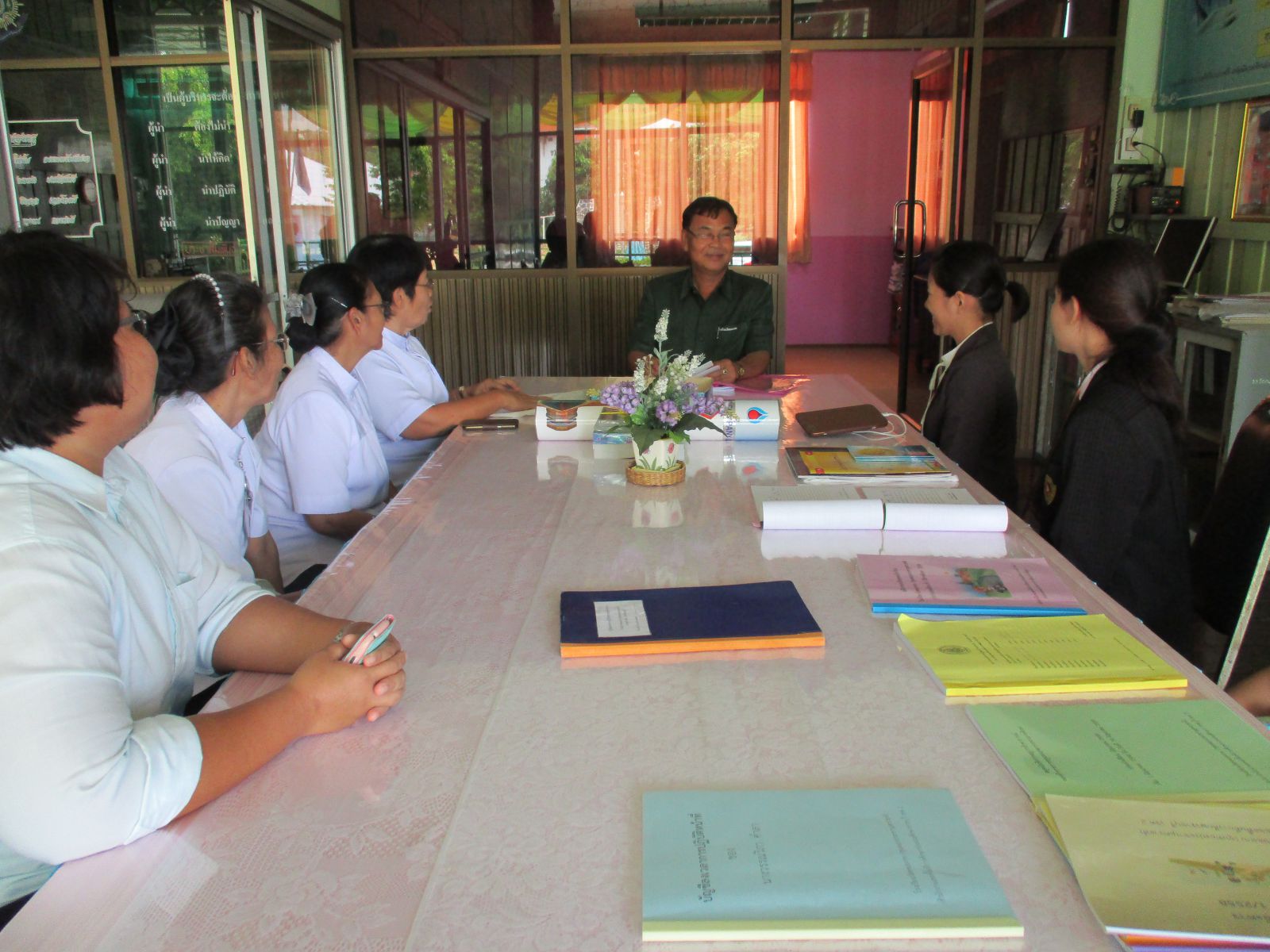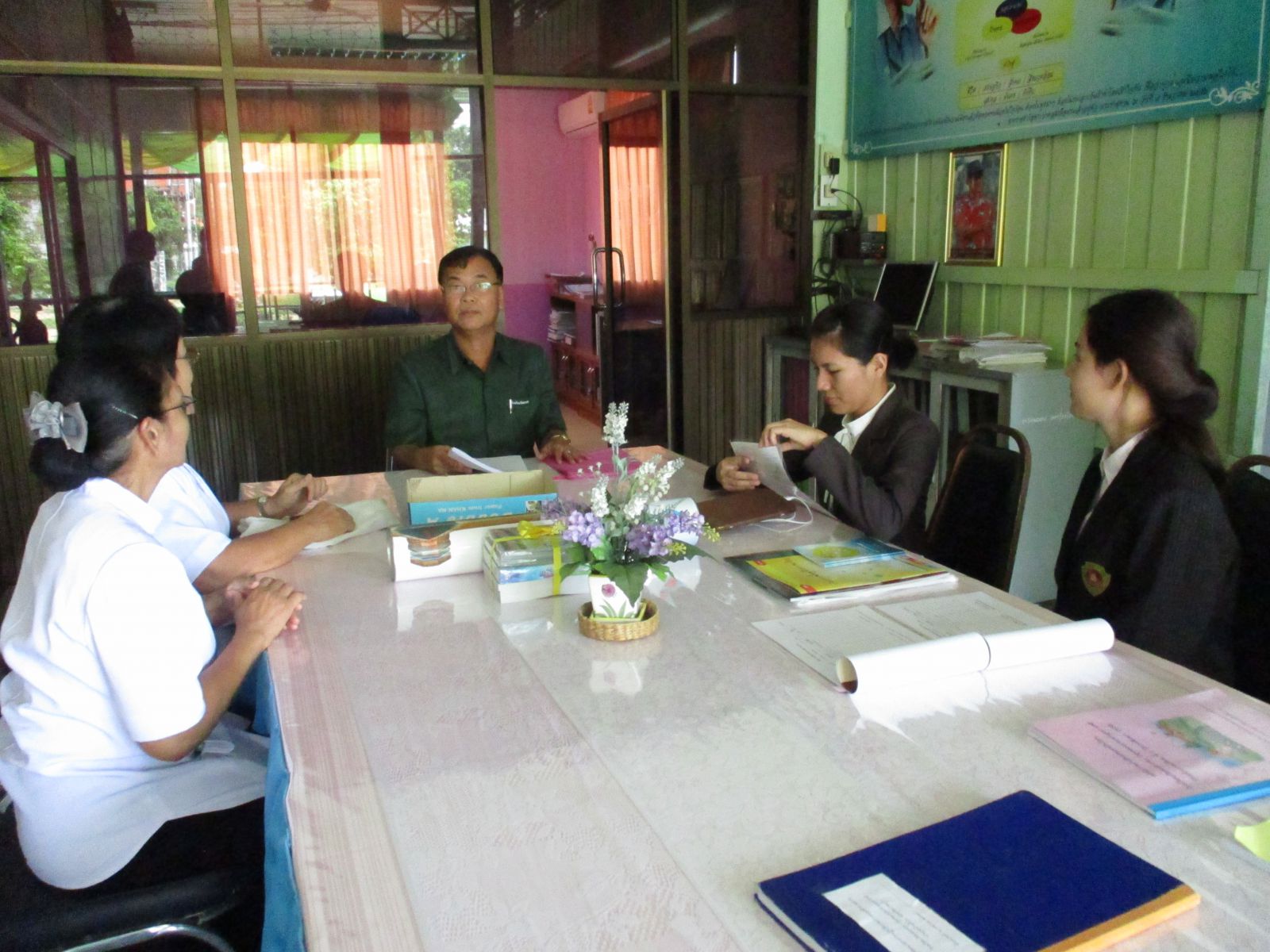 อธิบายเชิญชวนโรงเรียนชุมชนวัดหนองโพธารามเข้าร่วมโครงการ V-Star และโครงการอื่น ๆ ของชมรมพุทธศาสตร์สากล