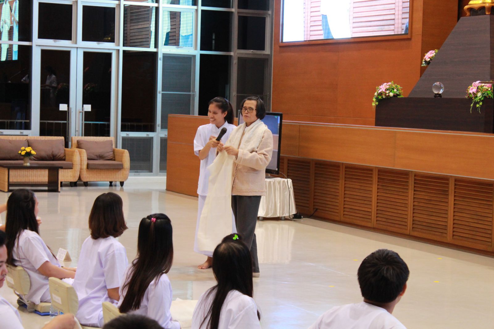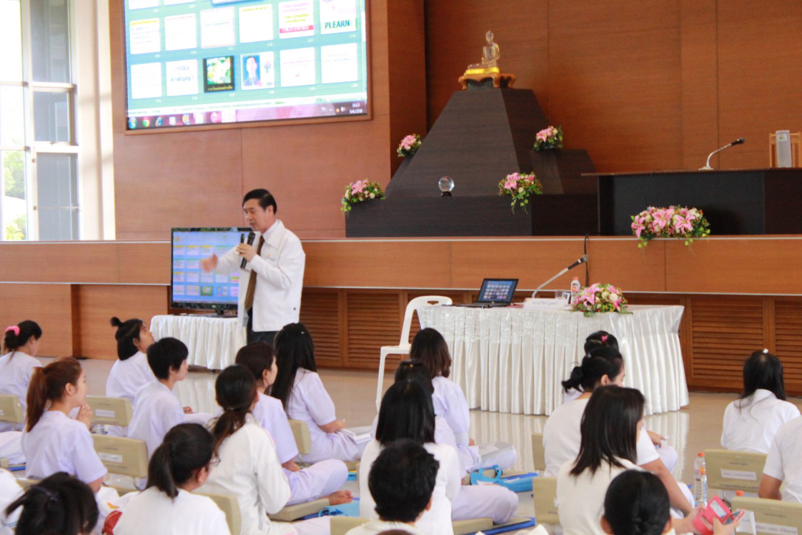 บรรยากาศการบรรยายเรื่องพระพุทธศาสนากับวิถีชีวิต โดยวิทยาการคือ ผศ.ดร.สมสุดา ผู้พัฒน์