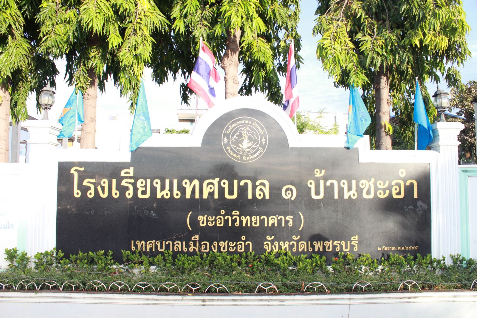 ป้ายหน้าโรงเรียนเทศบาล 1 บ้านชะอำ