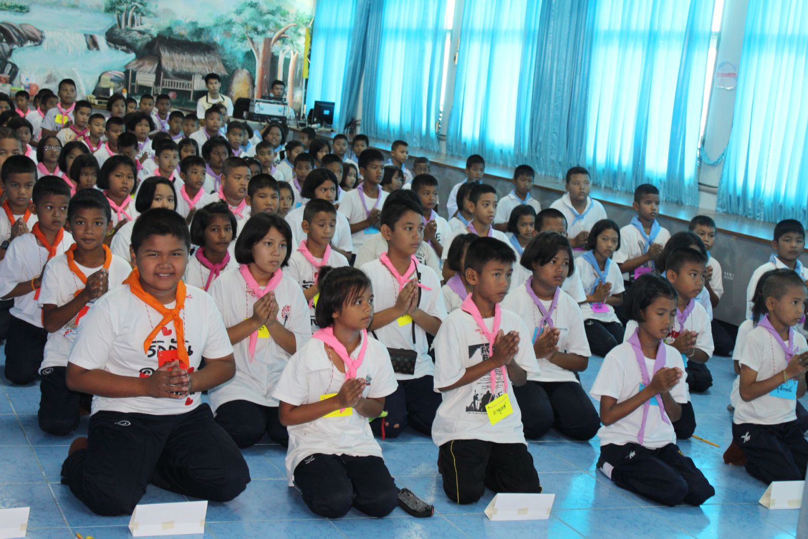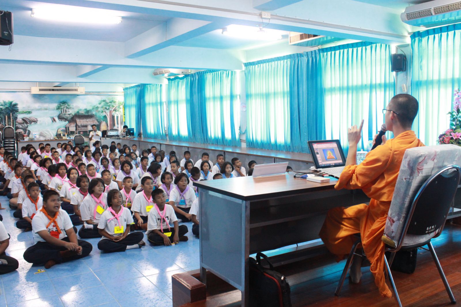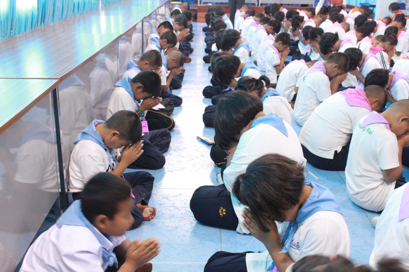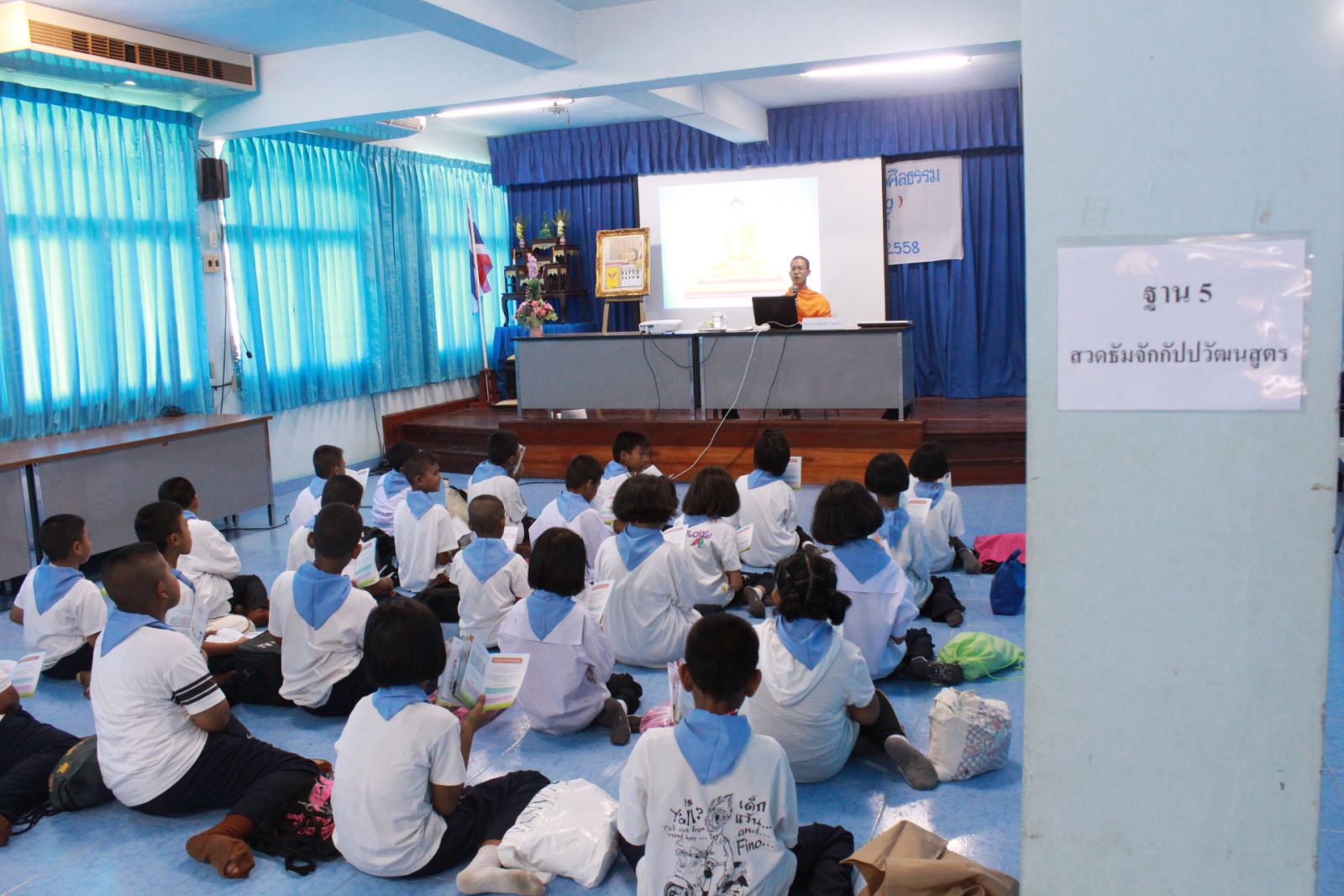 นักเรียนปฏิบัติธรรมนั่งสมาธิในช่วงสาย
