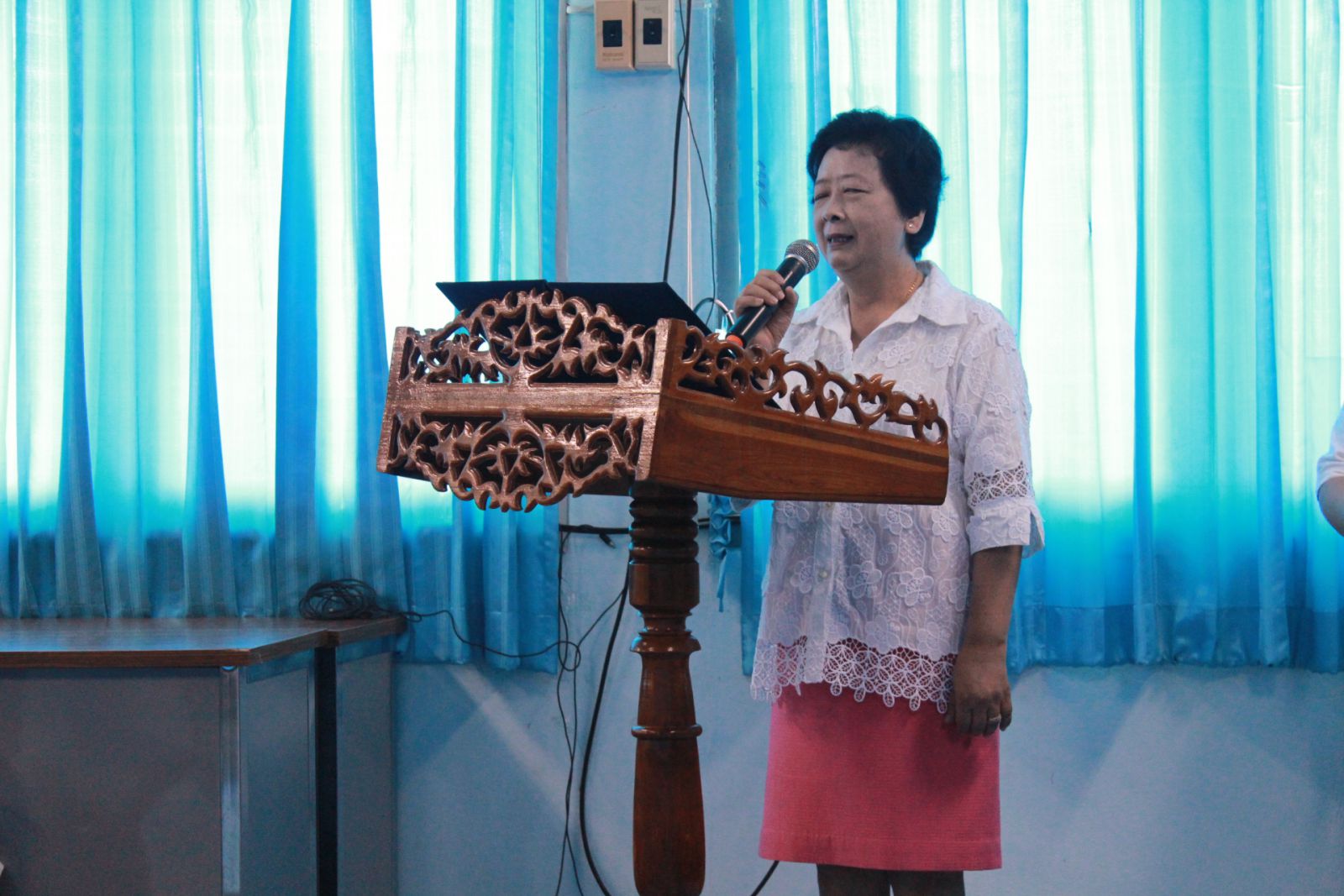 ผอ.สุภาพร อมรฤทธิ์ กล่าวให้โอวาทแก่นักเรียนที่เข้าร่วมอบรม