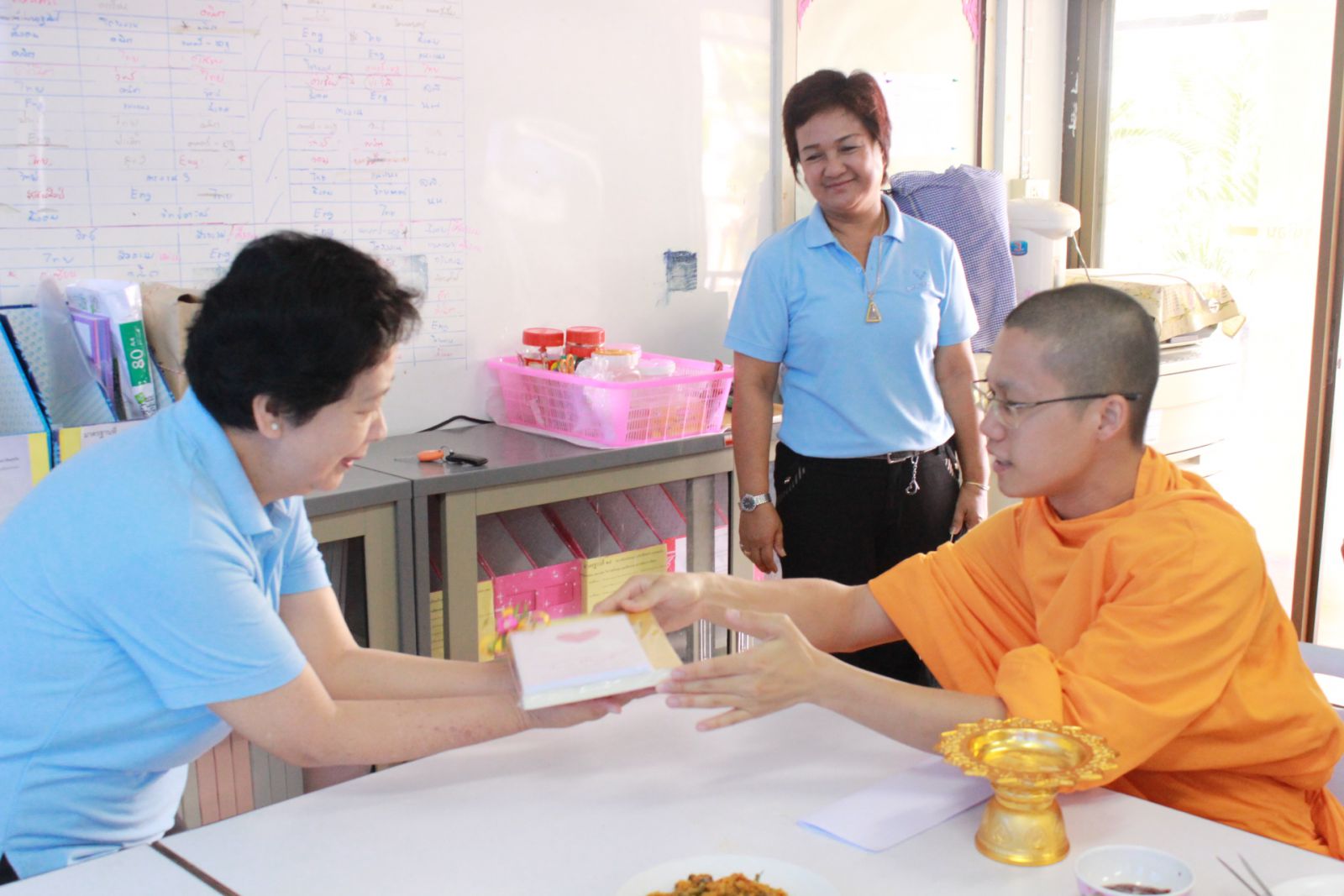 ผอ.สุภาพร อมรฤทธิ์ และทีมงานครูร่วมกันถวายภัตตาหารพระอาจารย์