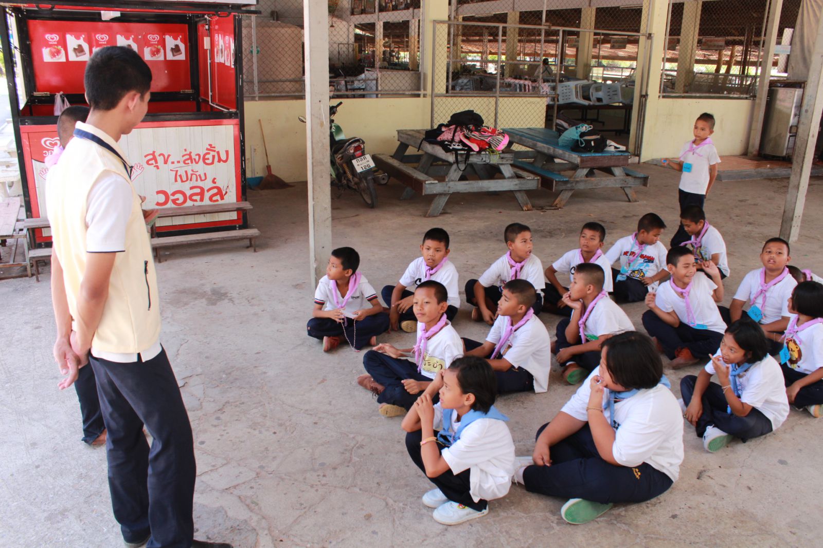 มอบของที่ระลึกเยลลี่แด่คุณครูมงกุฏ ตรีเงินกุล ครูประสานงานโครงการวีสตาร์