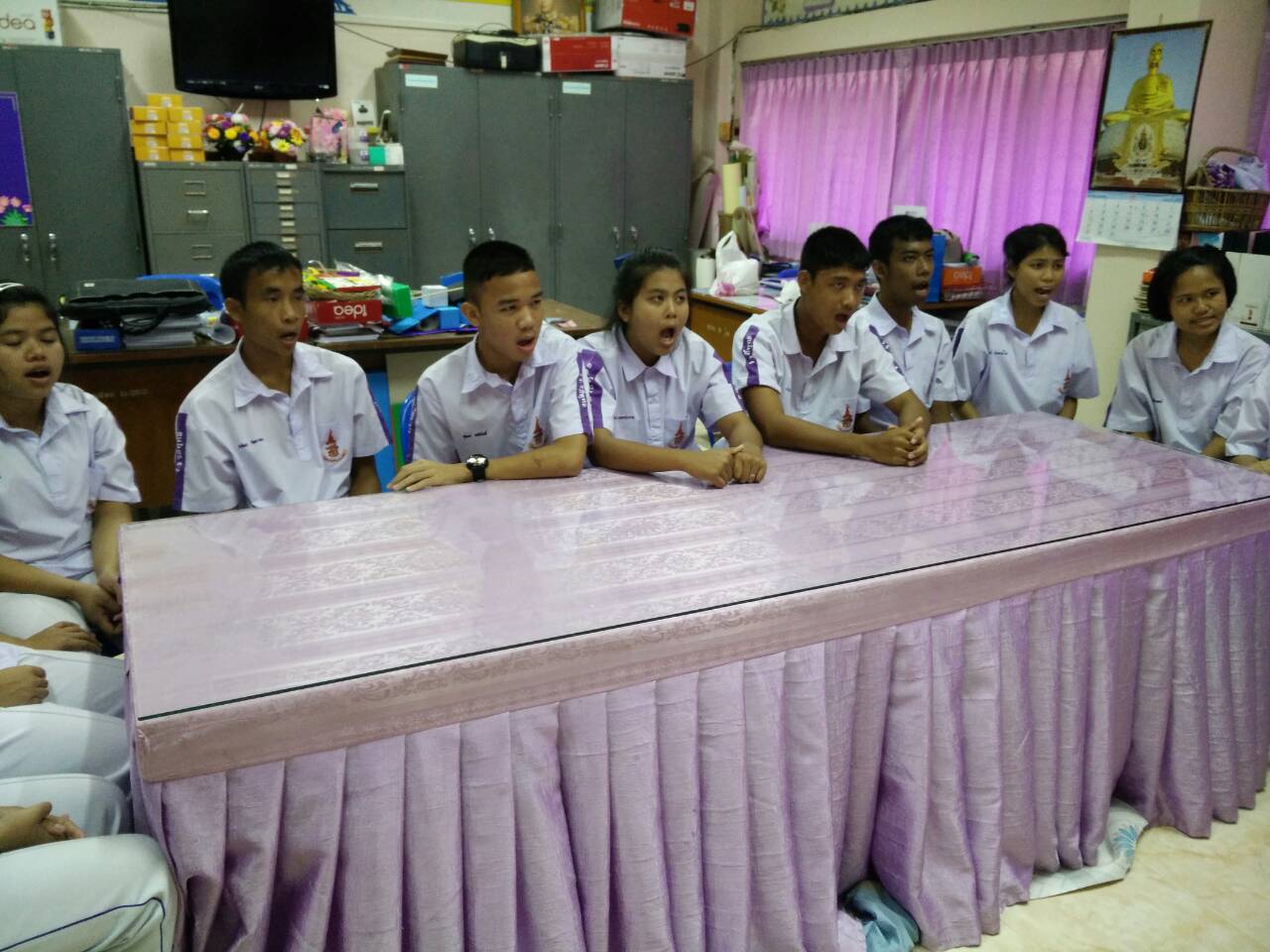 นักเรียนโรงเรียนโสตศึกษาเทพรัตน์ จ.ประจวบคีรีขันธ์ ฝึกสวดบทสรรเสริญพระมงคลเทพมุนี (สด จนฺทสโร)