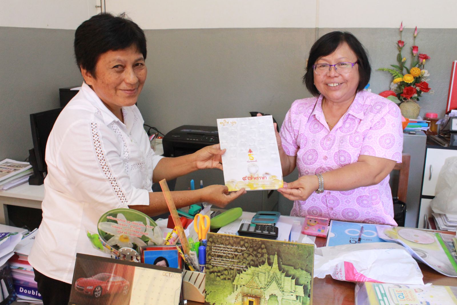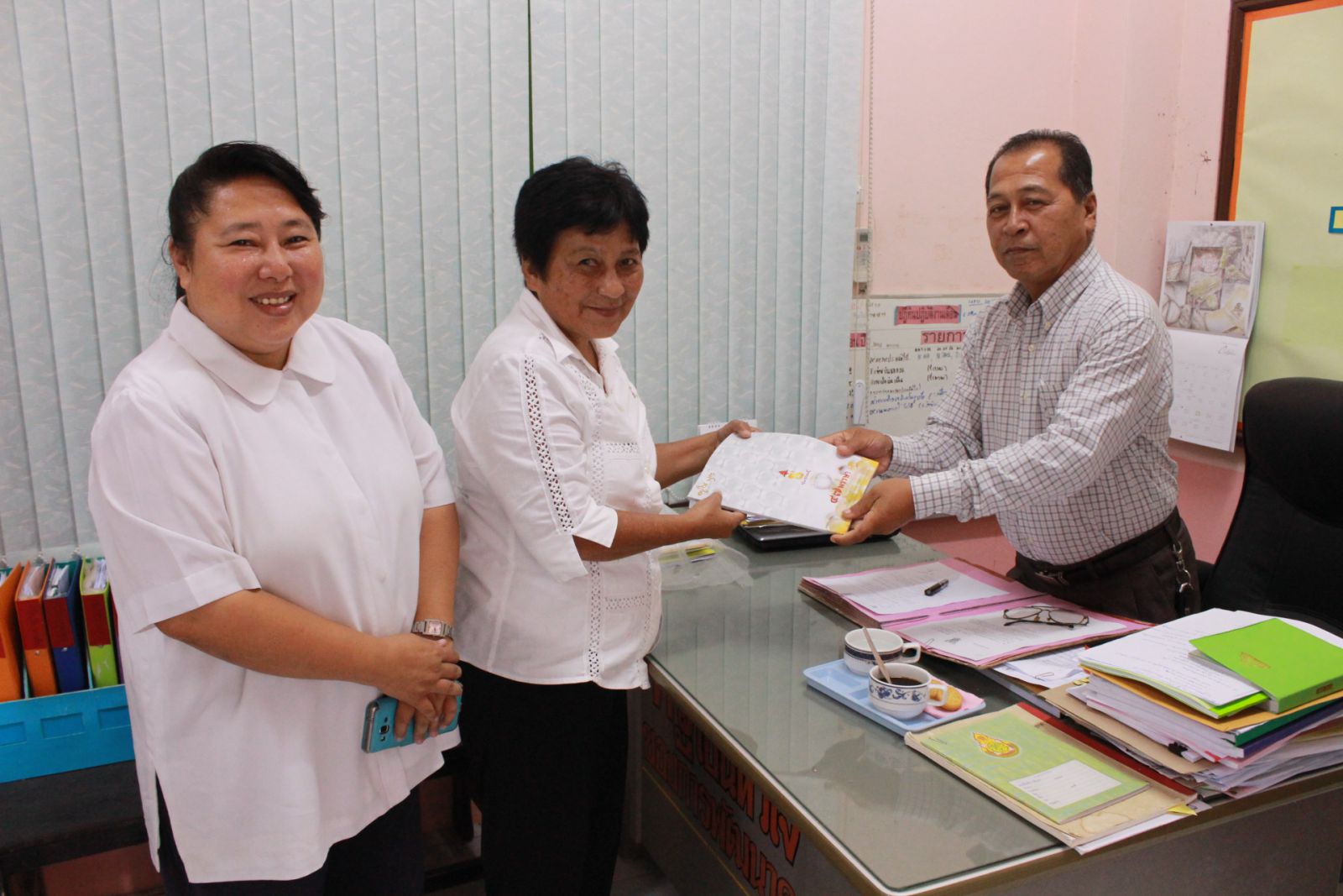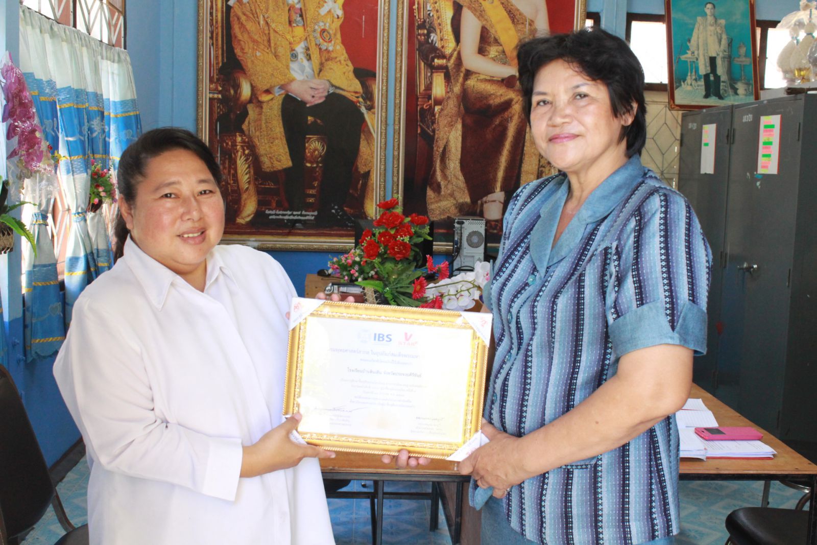 มอบประกาศนียบัตรผ่านการประเมินมาตรฐานศีลธรรม V-STAR กับผอฺ.สิริกร โรงเรียนบ้านหินเทิน