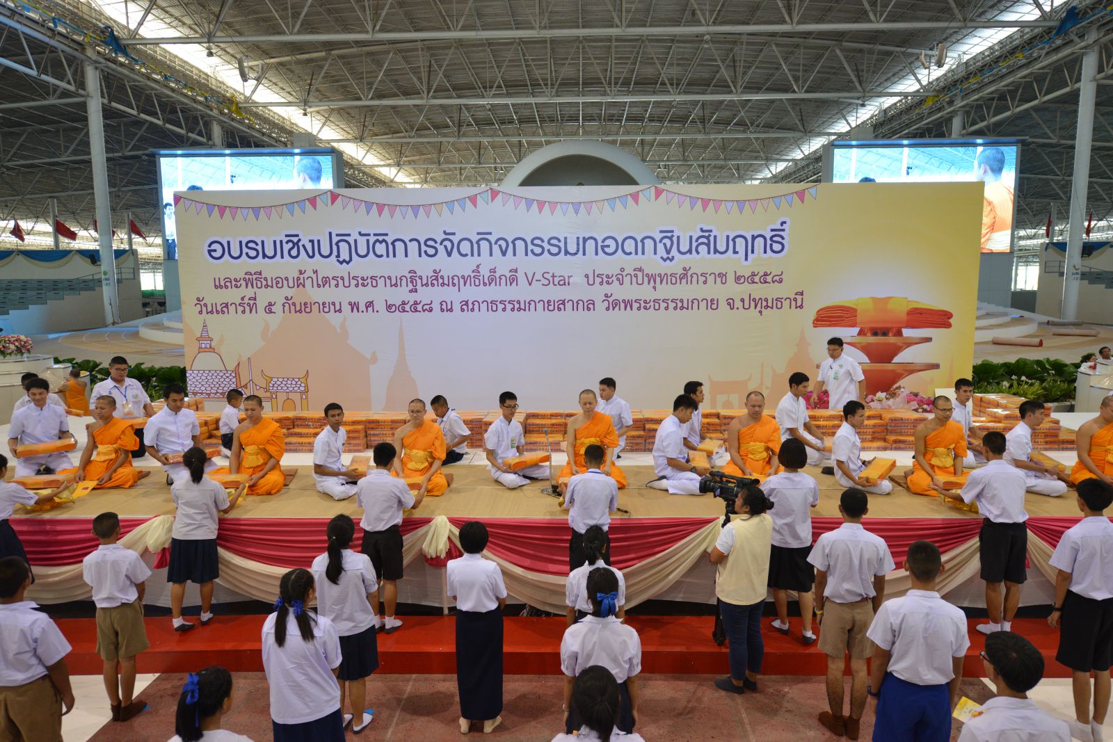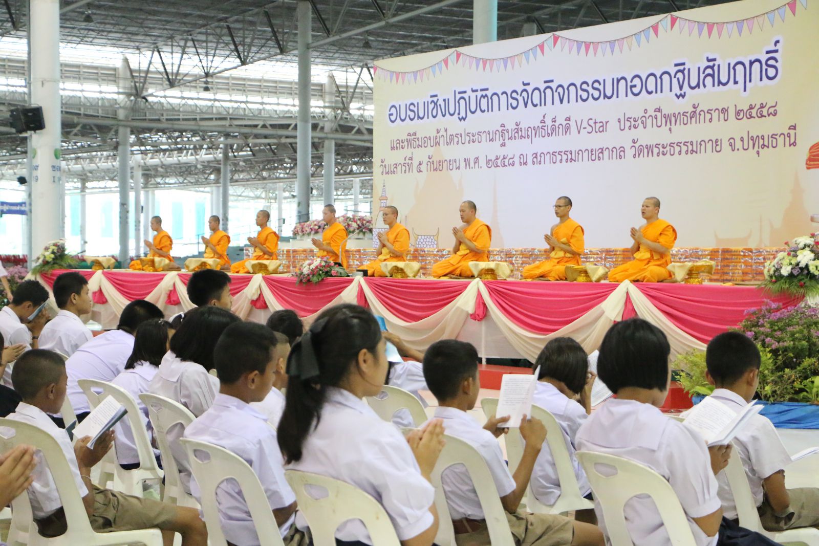 อบรมเชิงปฏิบัติการจัดกิจกรรมทอดกฐินสัมฤทธิ์ และพิธีมอบผ้าไตรประธานกฐินสัมฤทธิ์เด็กดี V-star ประจำปีพุทธศักราช ๒๕๕๘