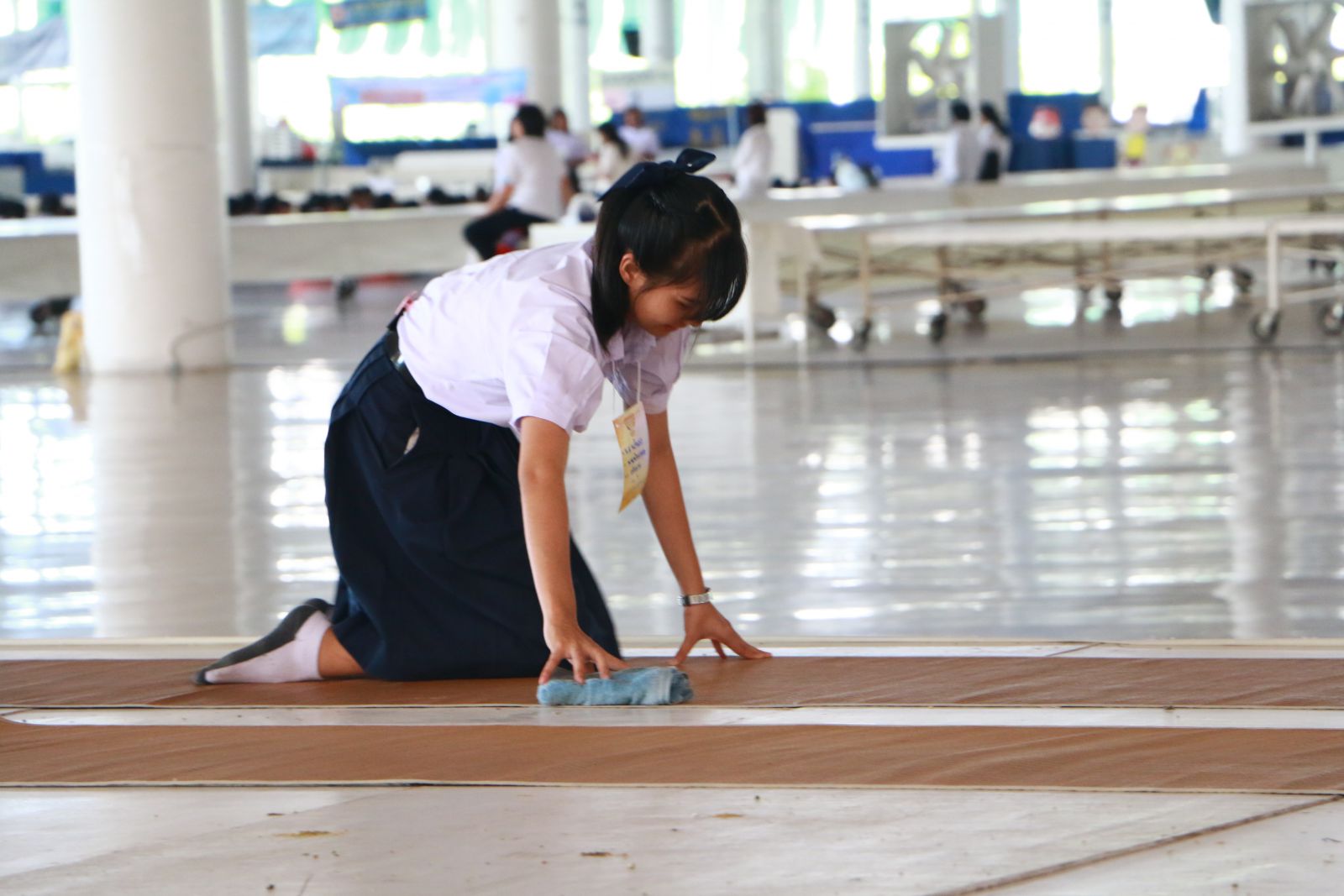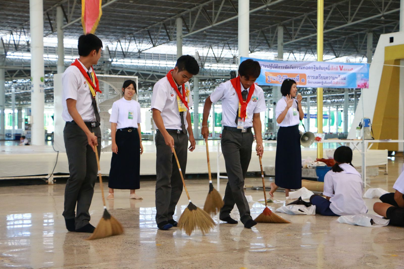 ฐานที่1 อบรมการเตรียมความพร้อม โดยแนะนำการทำความสะอาด ทำให้ถูกหลักการ ควรเช็ดไปทิศทางเดียวกัน เช่น จาก บนลงล่าง ขวาไปซ้าย เช่น การเช็ดโต๊ะ เช็ดเสื่อ กวาดพื้น ถูพื้น การผับผ้าขนหนูควรพับให้พอดีฝ่ามือเพื่อทำความสะอาดในการเช็ดเสื่อ เช็ดโต๊ะ การใช้วัสดุอุปกรณ์ให้ถูกกับพื้นผิว ปฏิบัติตามหลักความดีพื้นฐานสากล ๕ ประการ