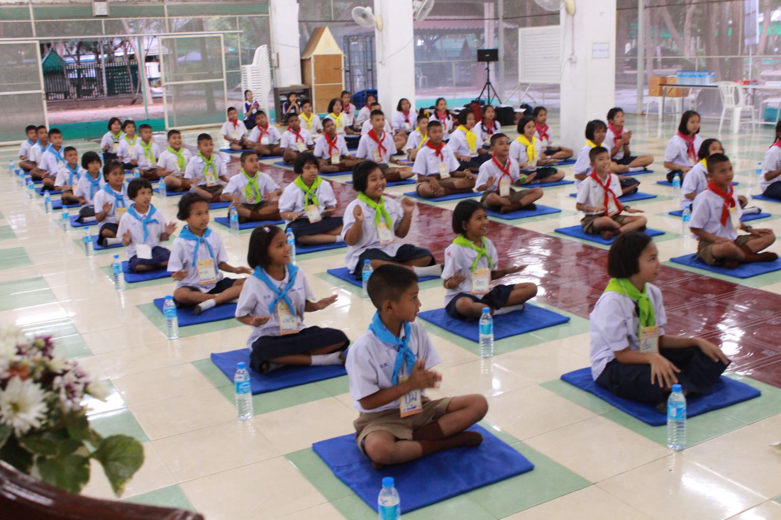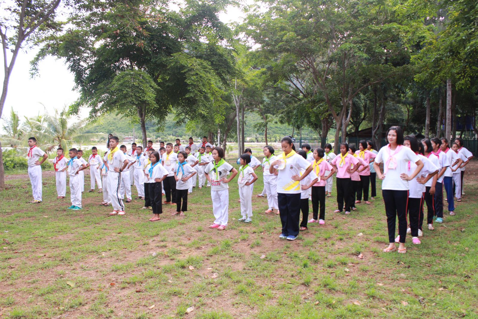 นักเรียนตั้งแถวออกกำลังกายตอนเช้า