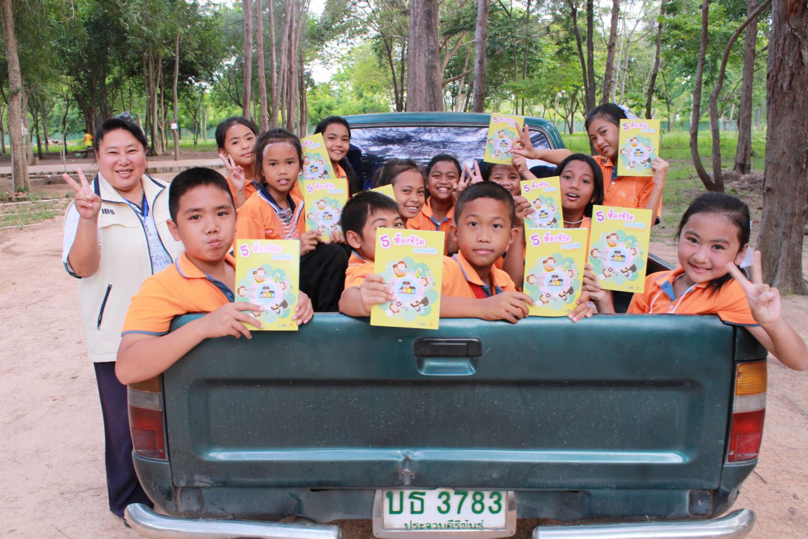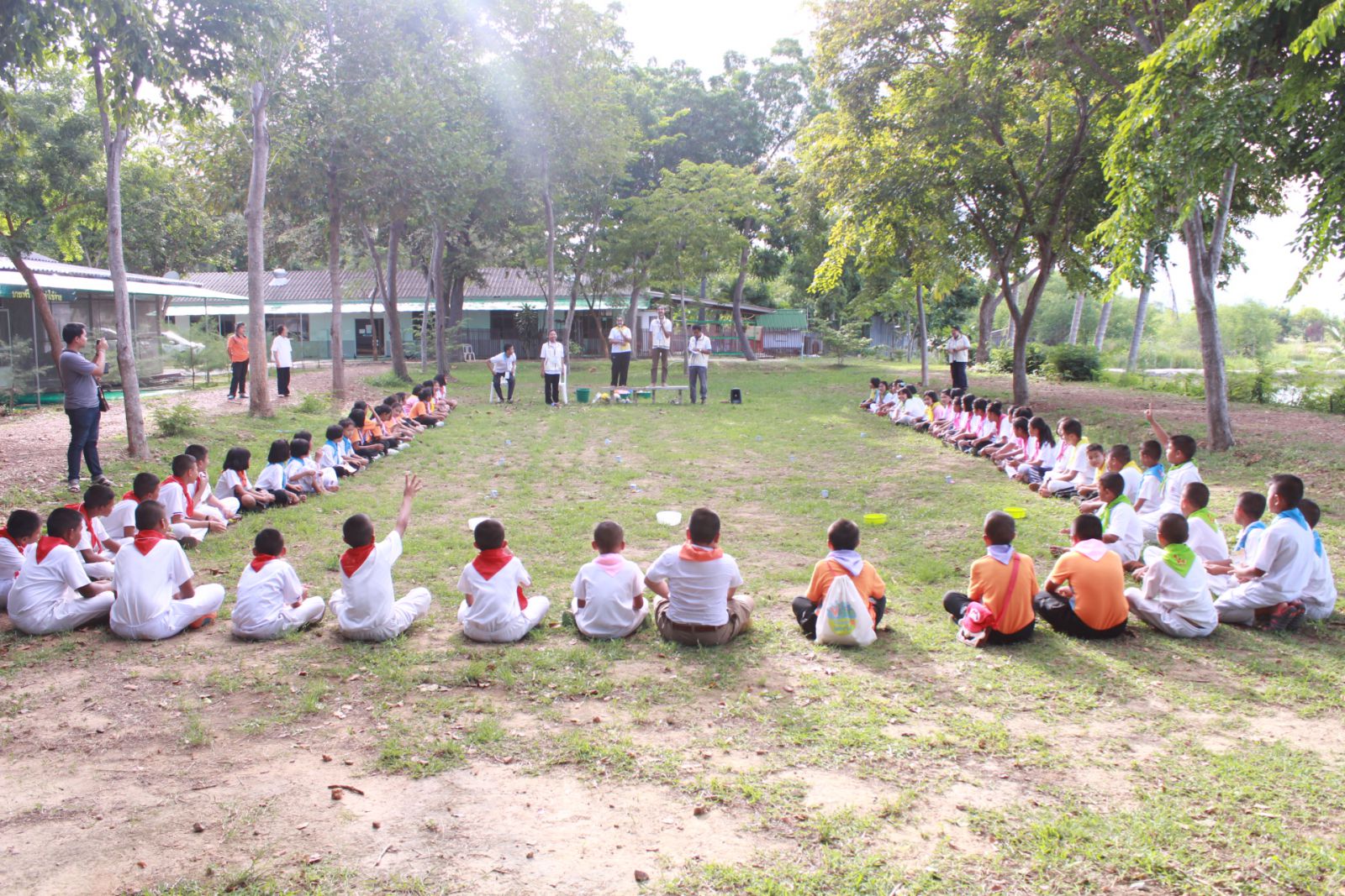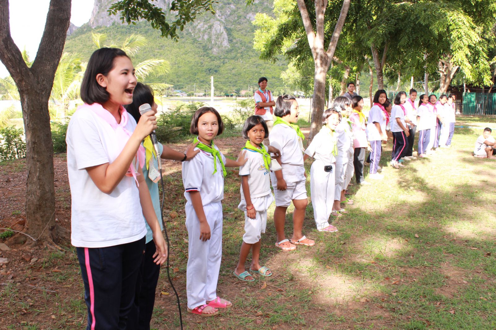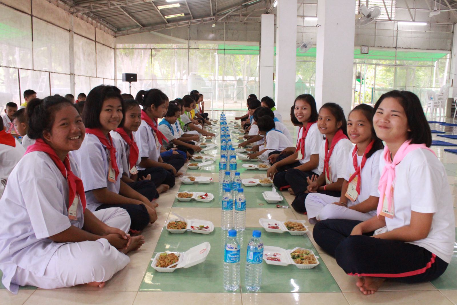 นักเรียนโรงเรียนบ้านหินเทินเดินทางมาถึงค่ายแล้ว