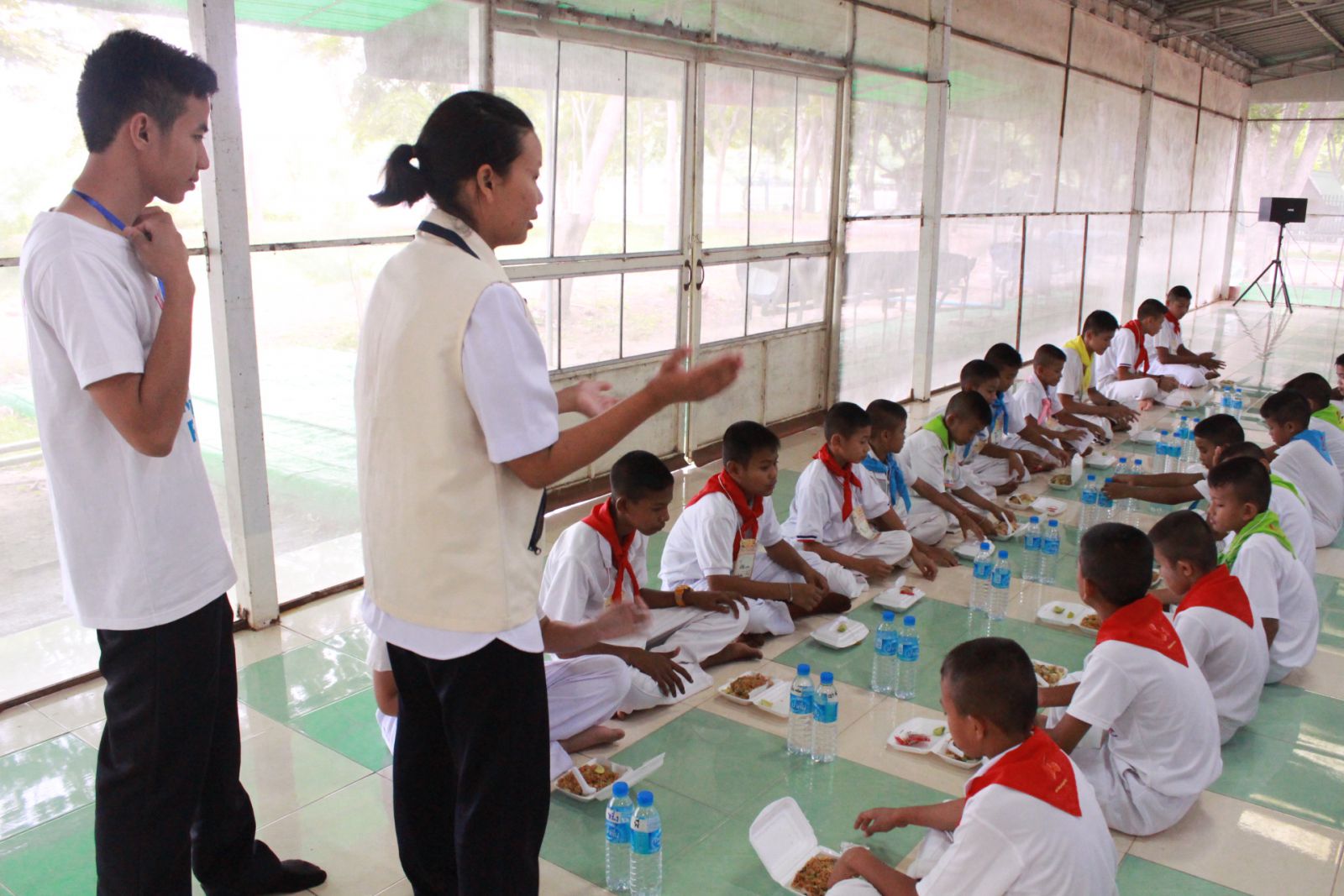 บรรยากาศการรับประทานอาหารร่วมกัน พร้อมมีพี่เลี้ยงมาสอนรับประทานอาหารที่ถูกวิธี