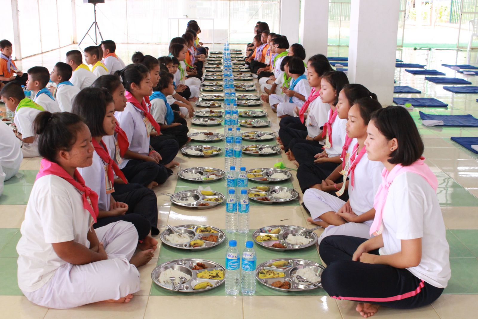 นักเรียนรับอาหารกลางวันและเตรียมความพร้อมก่อนรับประทานอาหารกลางวัน