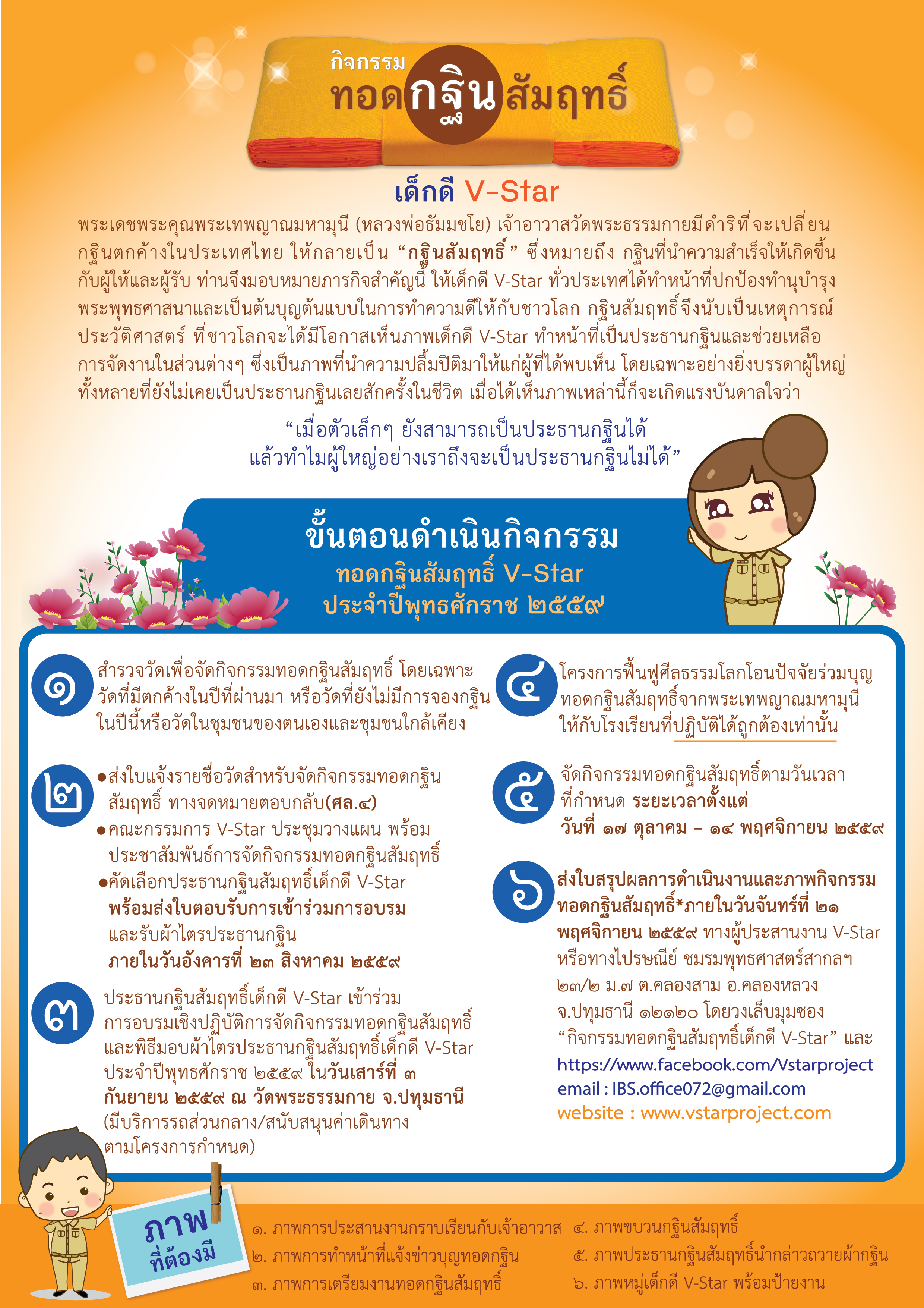 ขอเชิญสถานศึกษาเข้าร่วมกิจกรรมทอดกฐินสัมฤทธิ์เด็กดี V-Star ประจำปี ๒๕๕๙