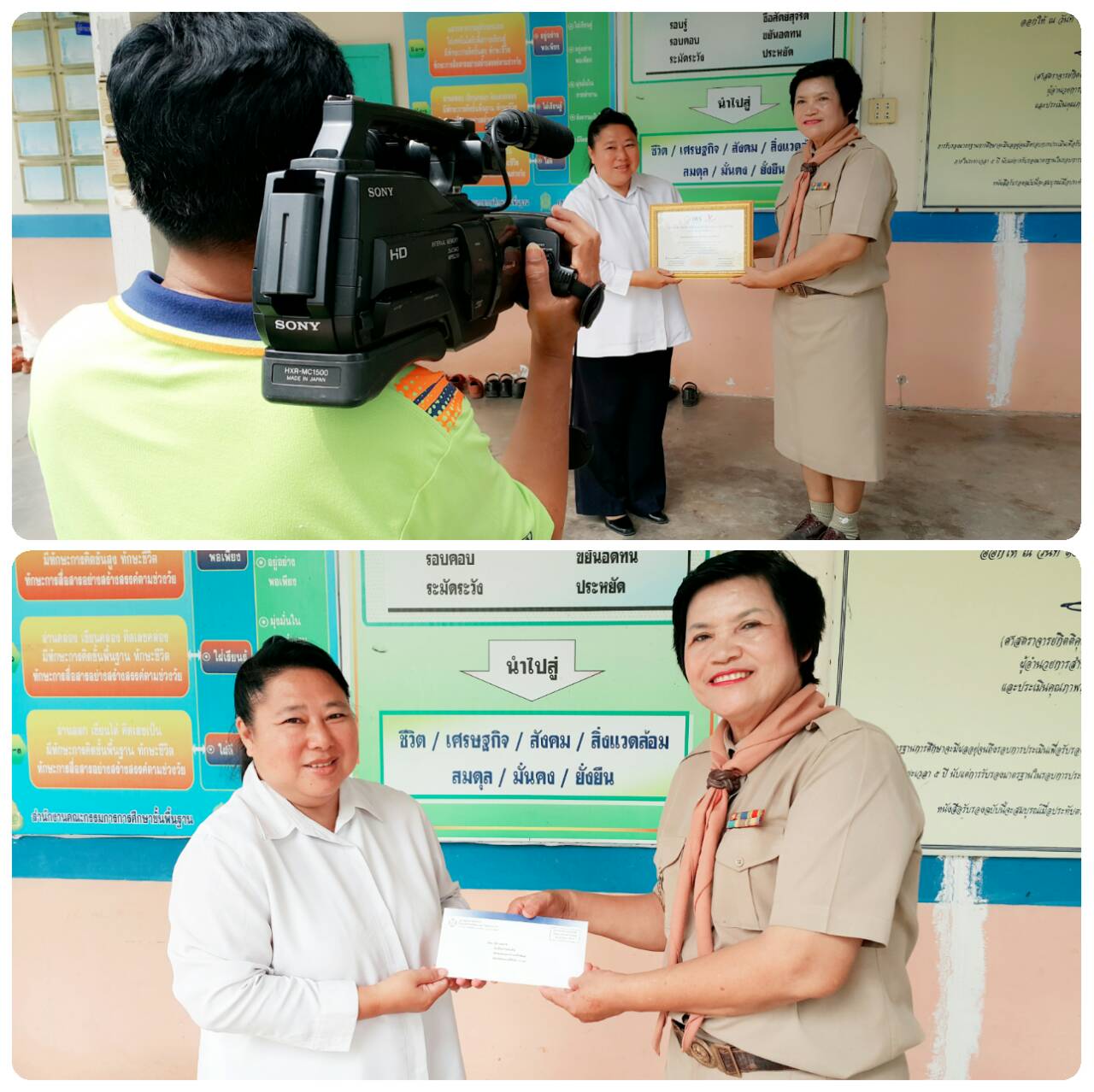 รูปที่ 2.4 ยื่นจดหมายเชิญรับรางวัลคุณภาพฟื้นฟูศีลธรรมโลก VQA ที่โรงเรียนบ้านหินเทิน