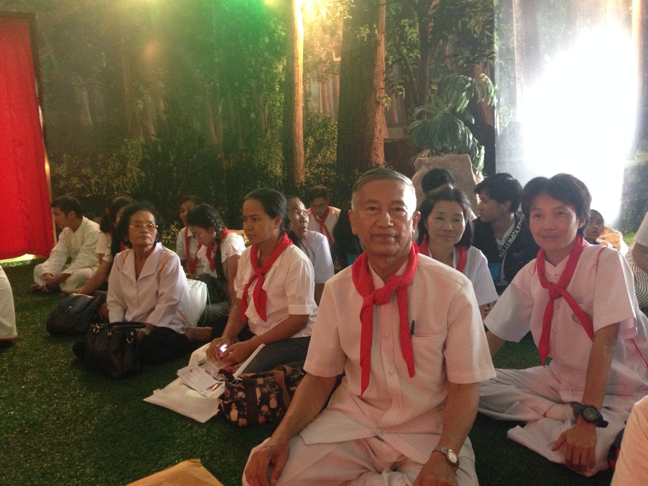 กิจกรรมแรกคณะครู-ครูอาสา และผู้ประสานงานโครงการฟื้นฟูศีลธรรมโลกภาคตะวันออกคือ ถวายภัตตาหารเพล ถวายปัจจัยเเละผ้าไตรสนับสนุนนงานบวชพระ อิ่มอกอิ่มใจ ปลื้มปิติ ณ หอฉันคุณยายอาจารย์ฯ วัดพระธรรมกาย