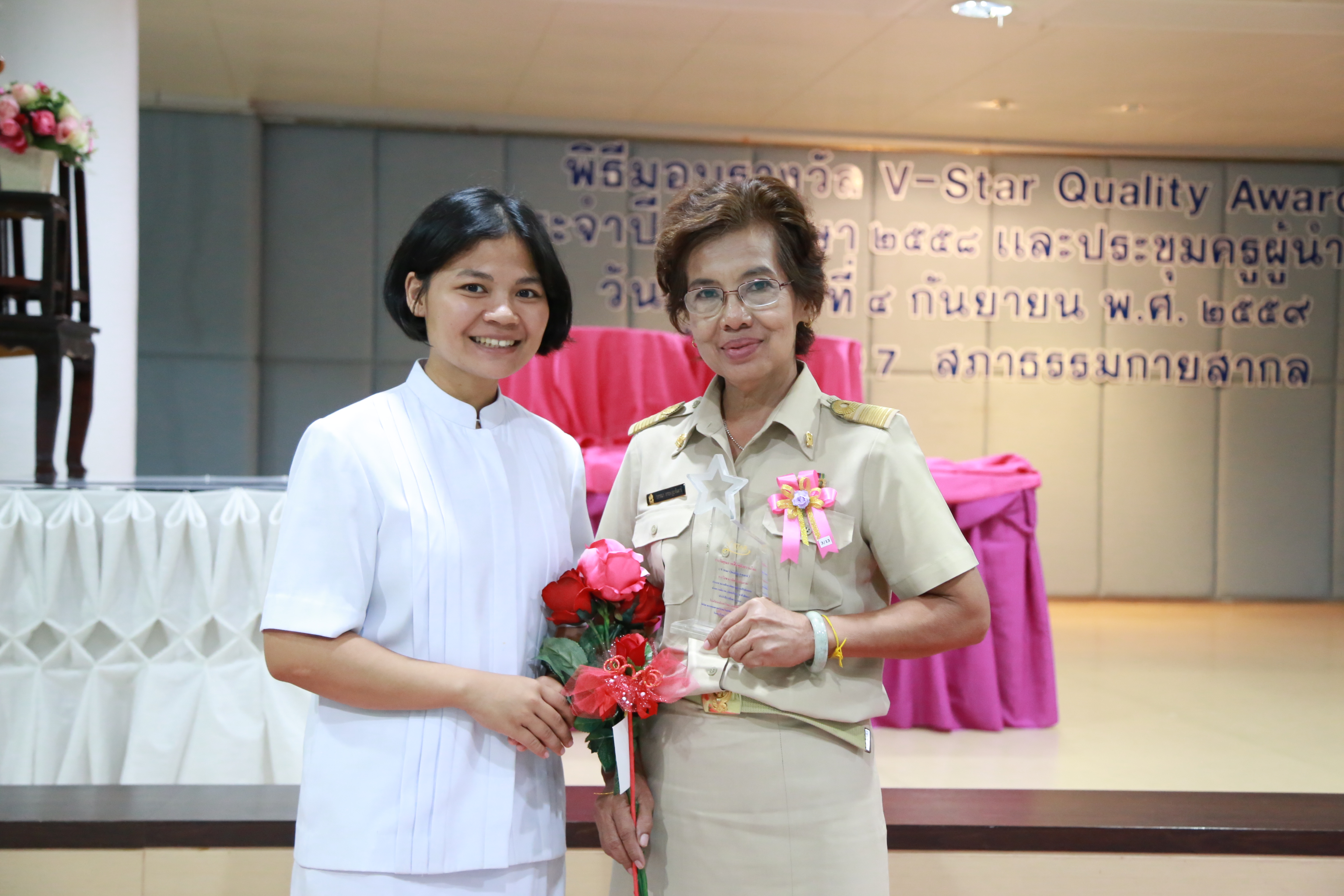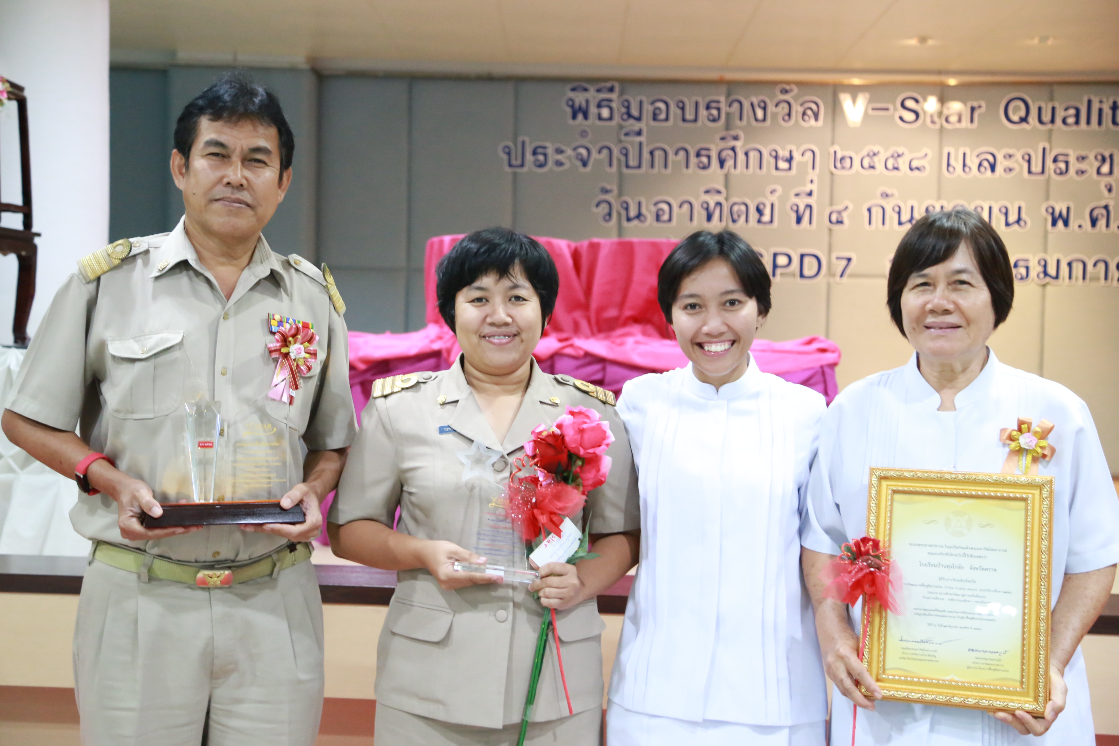 ภาพคณะครูที่รับ รางวัลคุณภาพฟื้นฟูศีลธรรมโลก V-Star Quality Award ประจำปี 2558 ภาพแห่งความประทับใจ