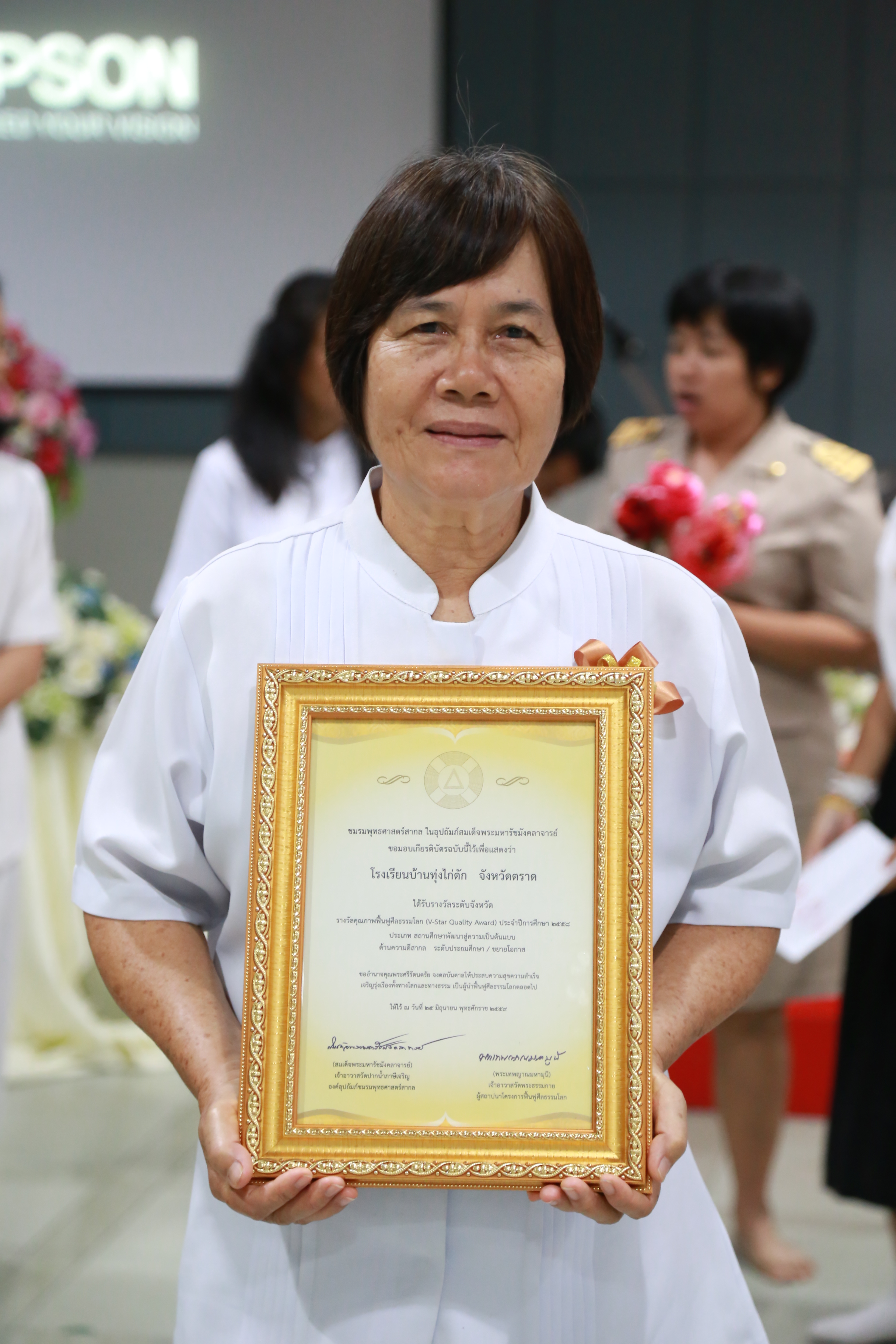 (ภาพขวา)4. รางวัลระดับจังหวัด ประเภทสถานศึกษาพัฒนาสู่ความเป็นต้นแบบด้านความดีพื้นฐานสากล ระดับประถมศึกษา/ขยายโอกาส โรงเรียนบ้านทุ่งไก่ดัก จังหวัดตราด