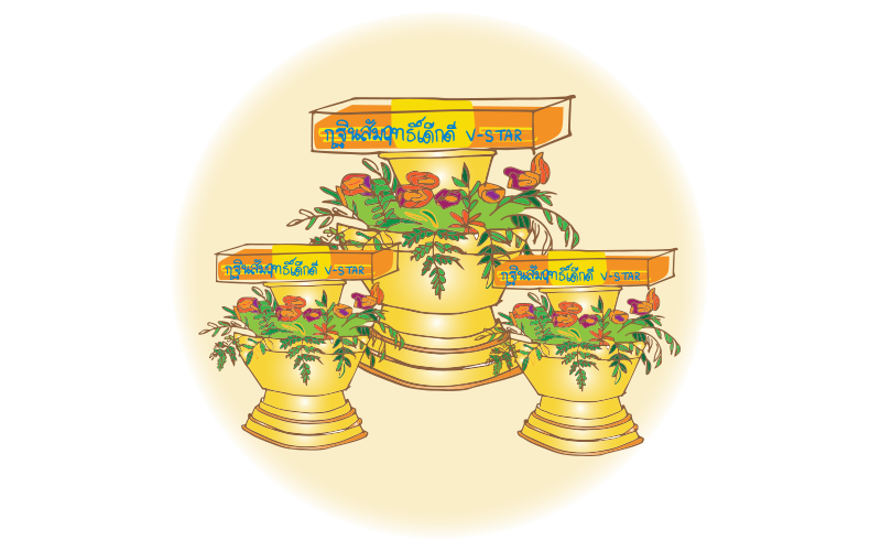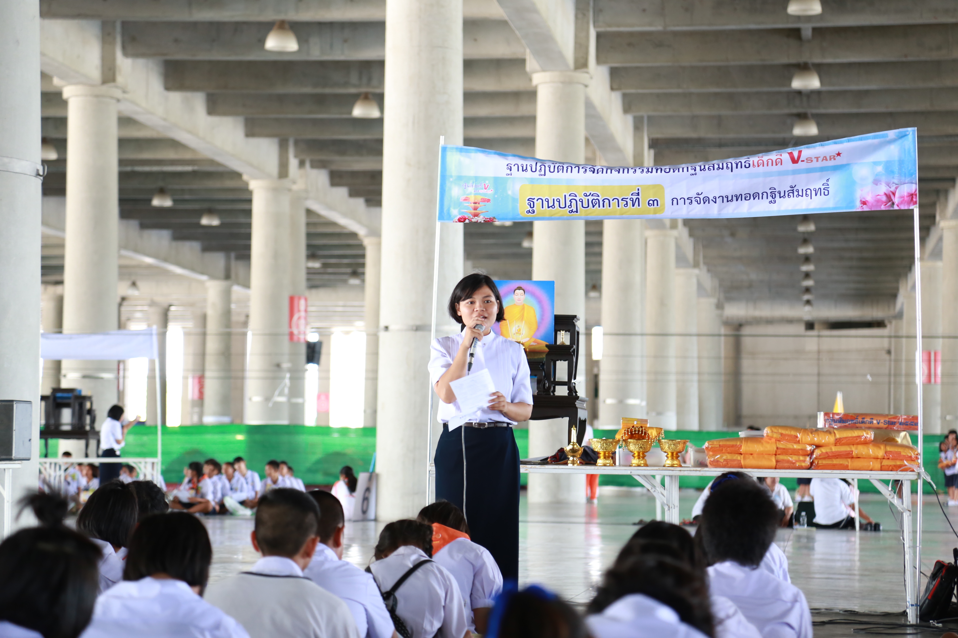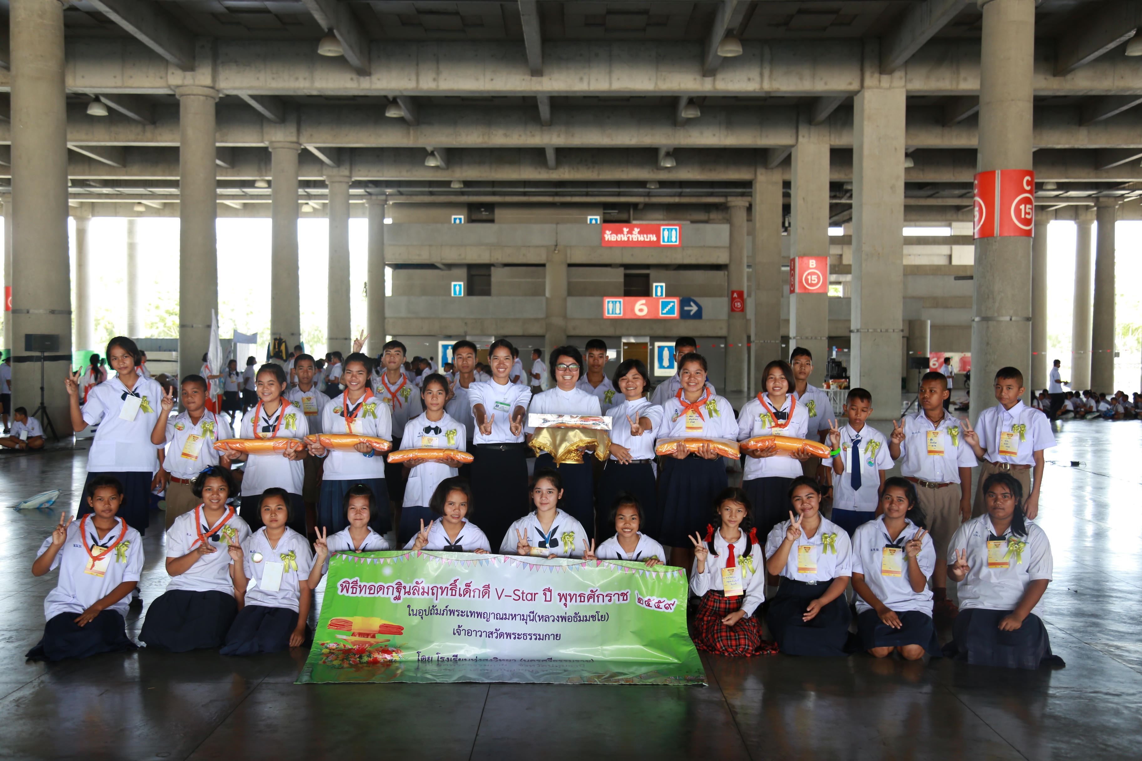 เด็กดี V-Star ให้รู้จักทำทาน ทำหน้าที่กัลยาณมิตร และส่งเสริมการทำงานเป็นทีม ทางโรงเรียนคัดเลือกประธานกฐินสัมฤทธิ์