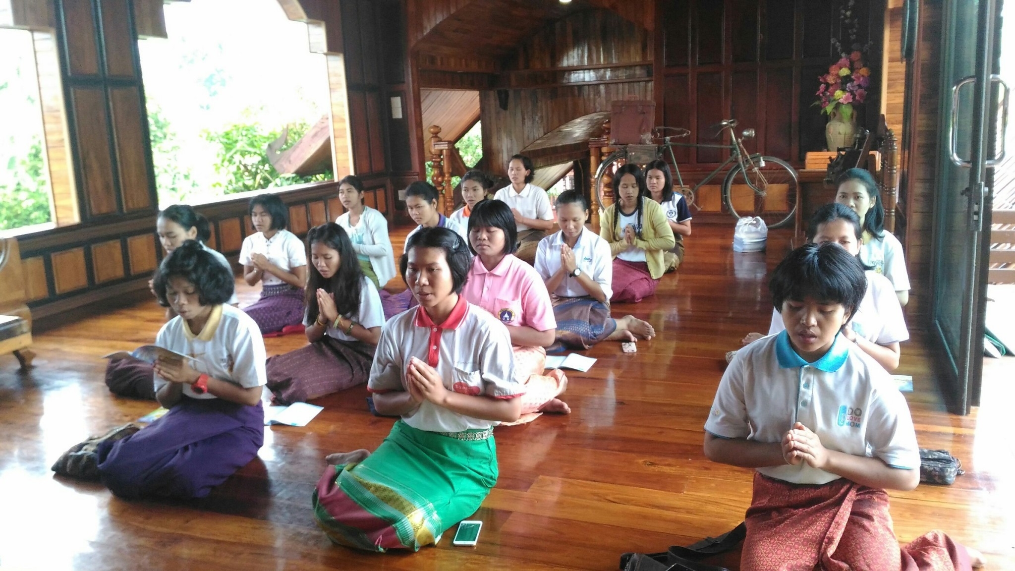กิจกรรมหล่อหลอมครั้งนี้ น้องได้ทำกิจวัตรกิจกรรมร่วมกัน คือ การสวดมนต์ นั่งสมาธิและฟังธรรมะ จากพระอาจารย์ และนอกจากนั้นได้ร่วมกันทำกิจกรรมถวายสังฆทาน 9 วัด