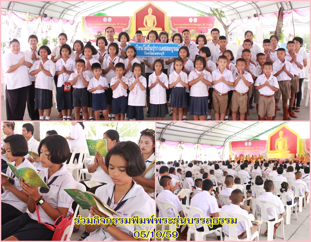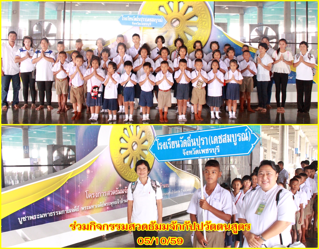 | หัวข้อ | โรงเรียนวัดถิ่นปุรา จ.เพชรบุรี ร่วมกิจกรรมสวดธัมมจักกัปปวัตตนสูตรและพิมพ์พระรุ่น “บรรลุธรรม” ที่วัดพระธรรมกาย วันที่ 5 ตุลาคม 2559 |