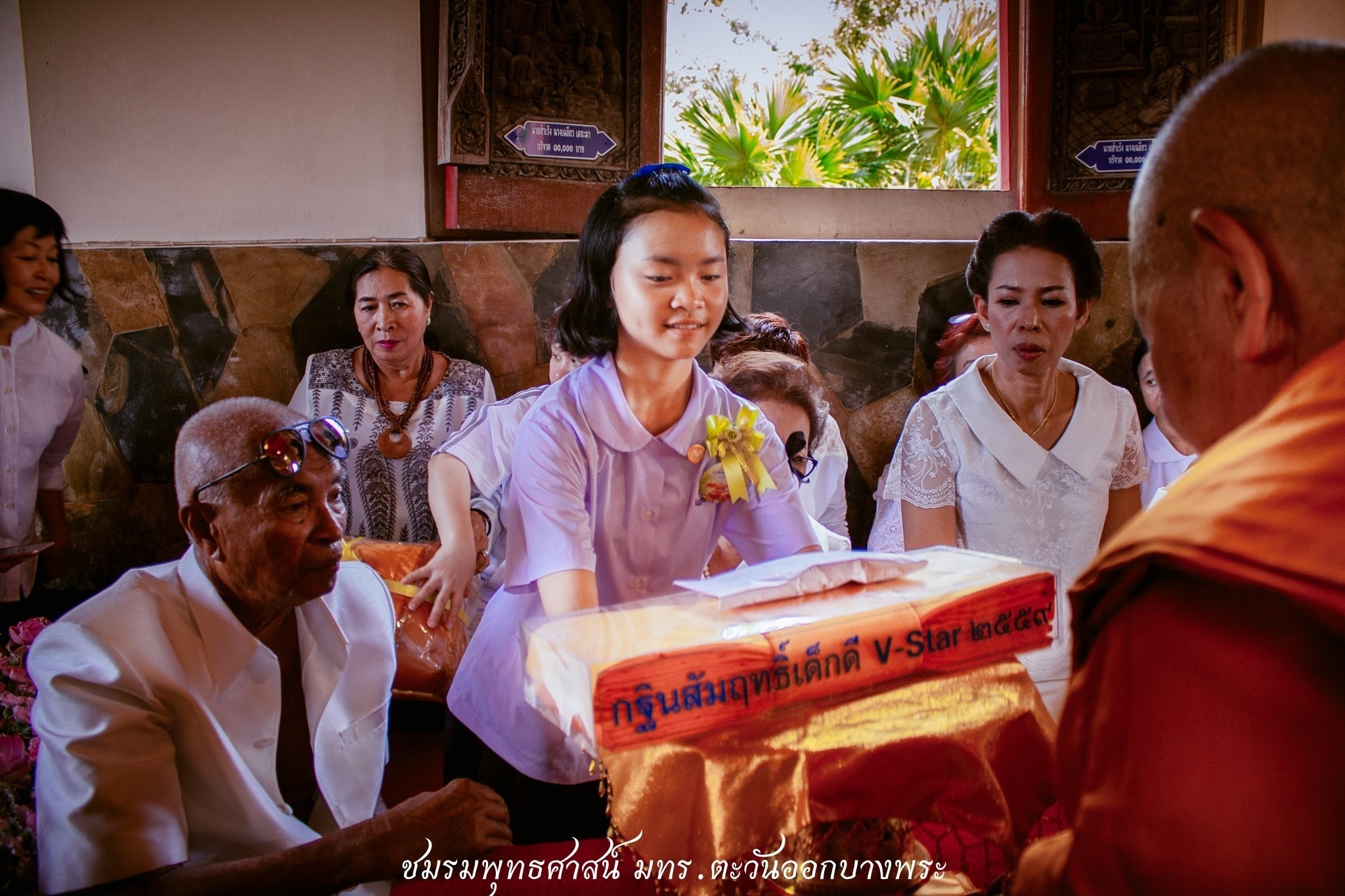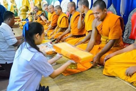 ในการร่วมกันสืบทอดวัฒนธรรมชาวพุทธที่ดีงาม ฝึกฝนเด็กดี V-Star ให้รู้จักทำทาน
