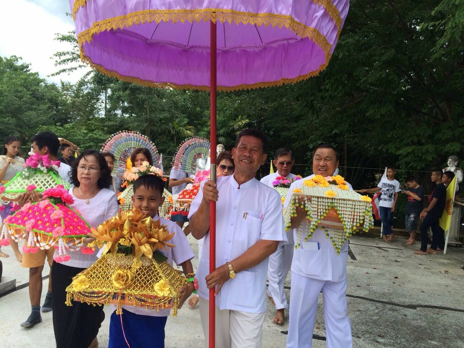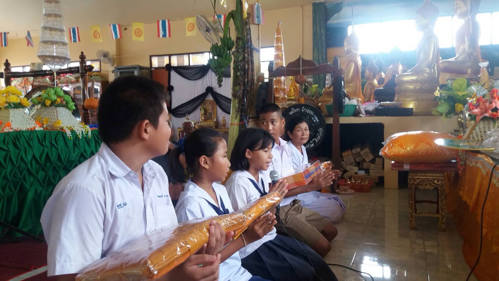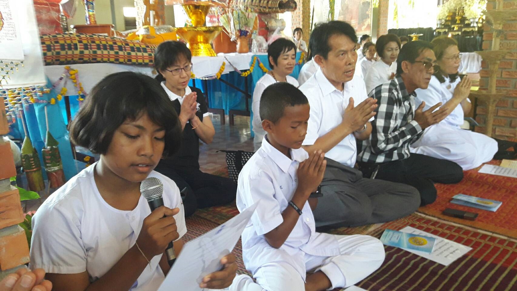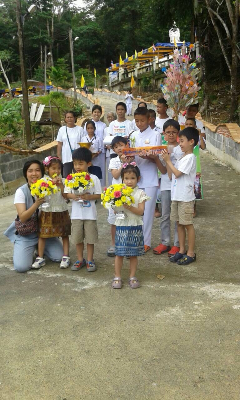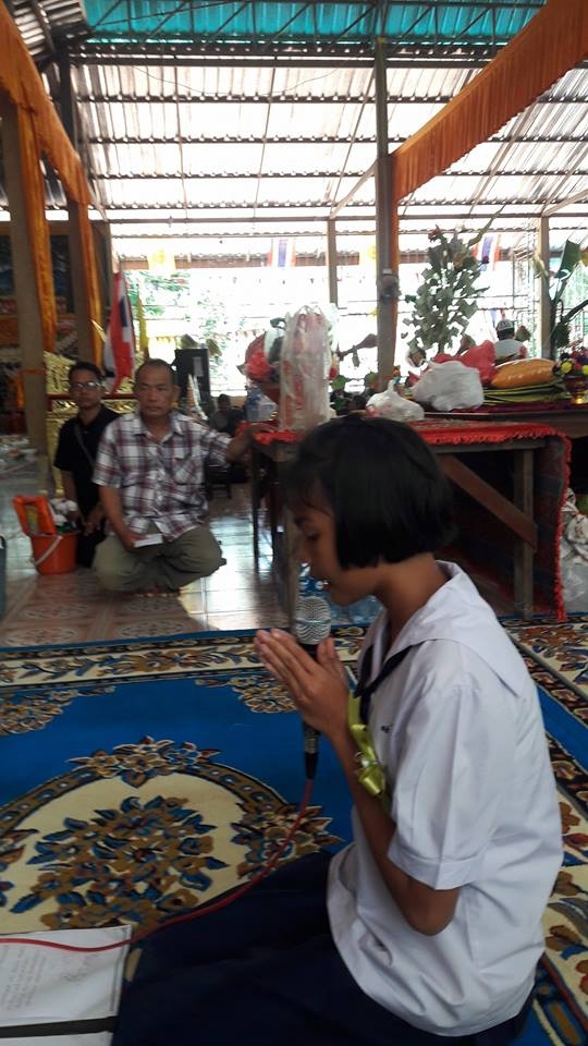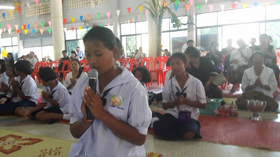 เด็กๆ ได้พูดเชิญชวน ด้วยปิยะ วาจา เพื่อแจ้งข่าวบุญให้กับเพื่อน ผู้ใหญ่ และชุมชนรอบวัด
