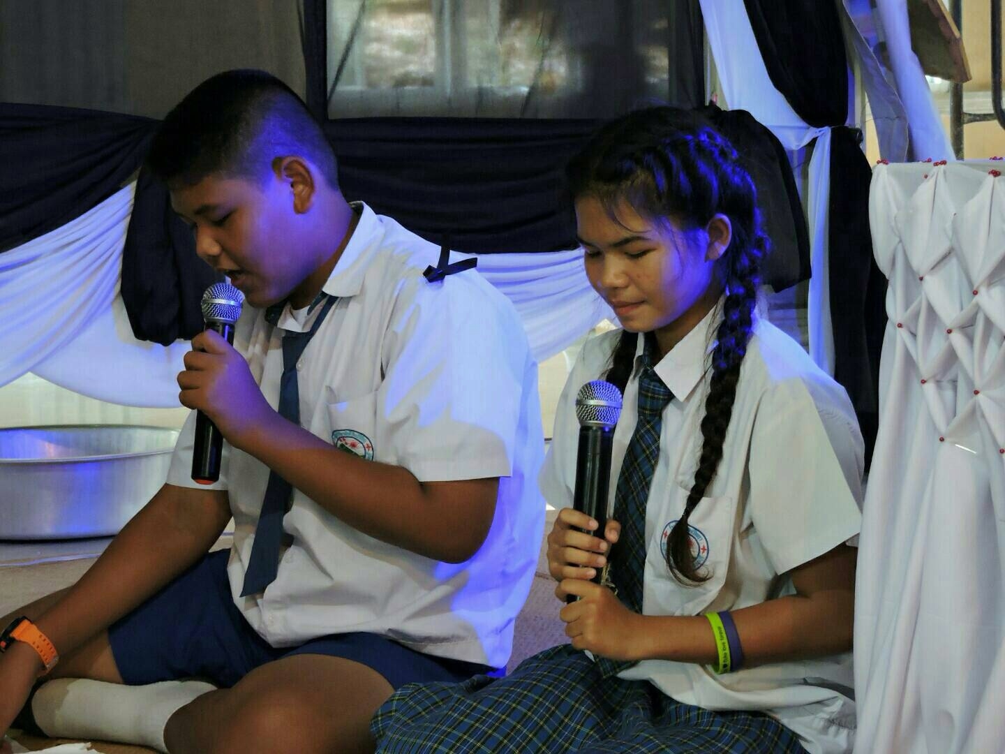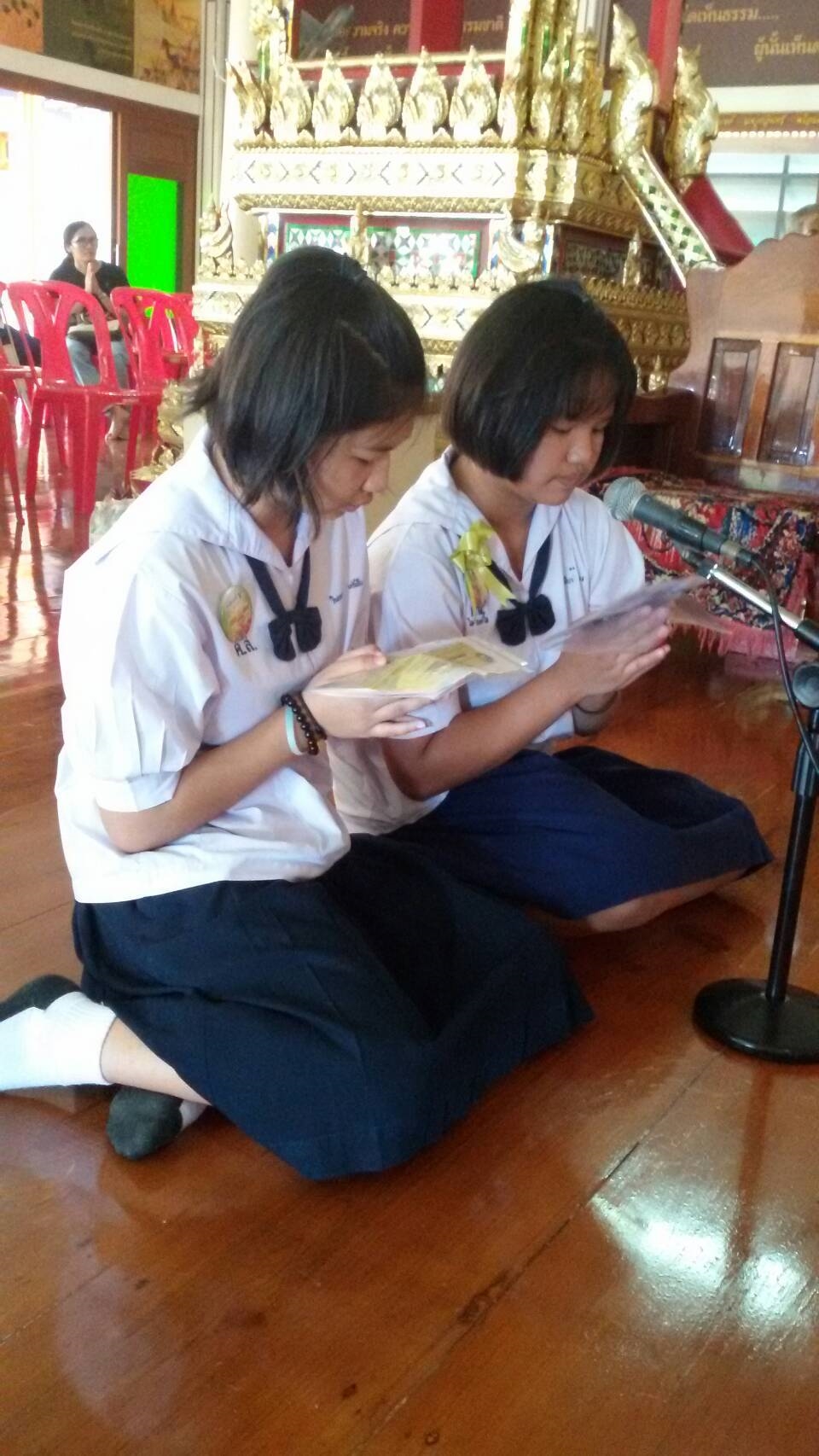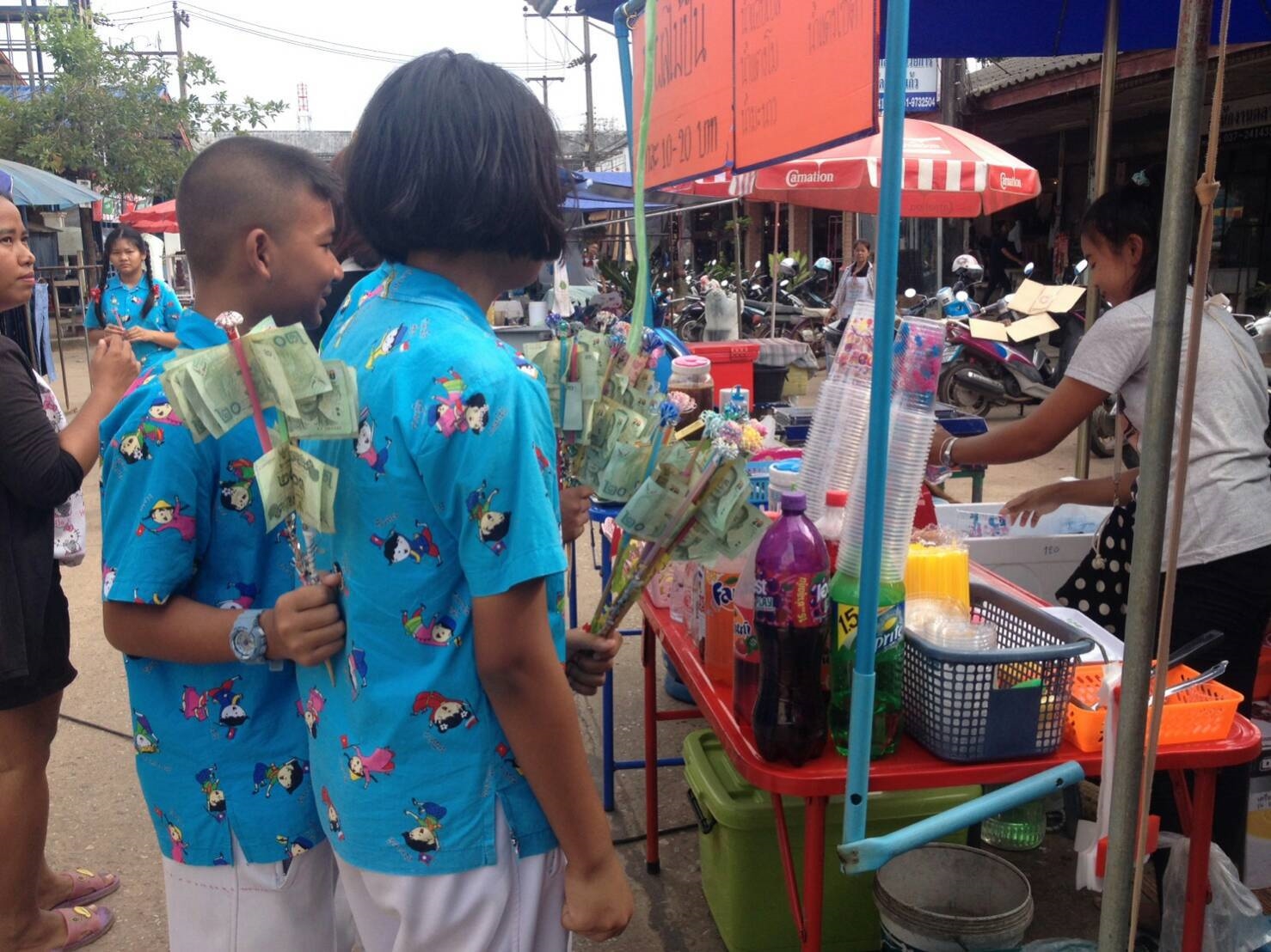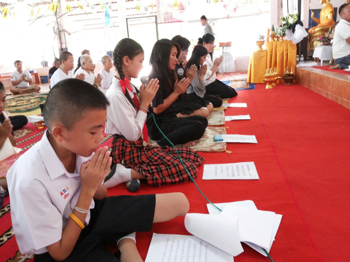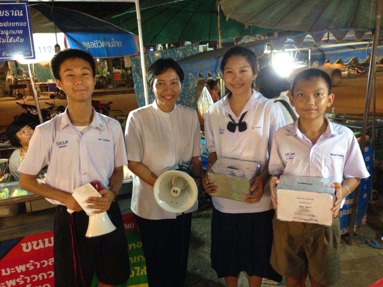 เด็กๆ ได้พูดเชิญชวน ด้วยปิยะ วาจา เพื่อแจ้งข่าวบุญให้กับเพื่อน ผู้ใหญ่ และชุมชนรอบวัด
