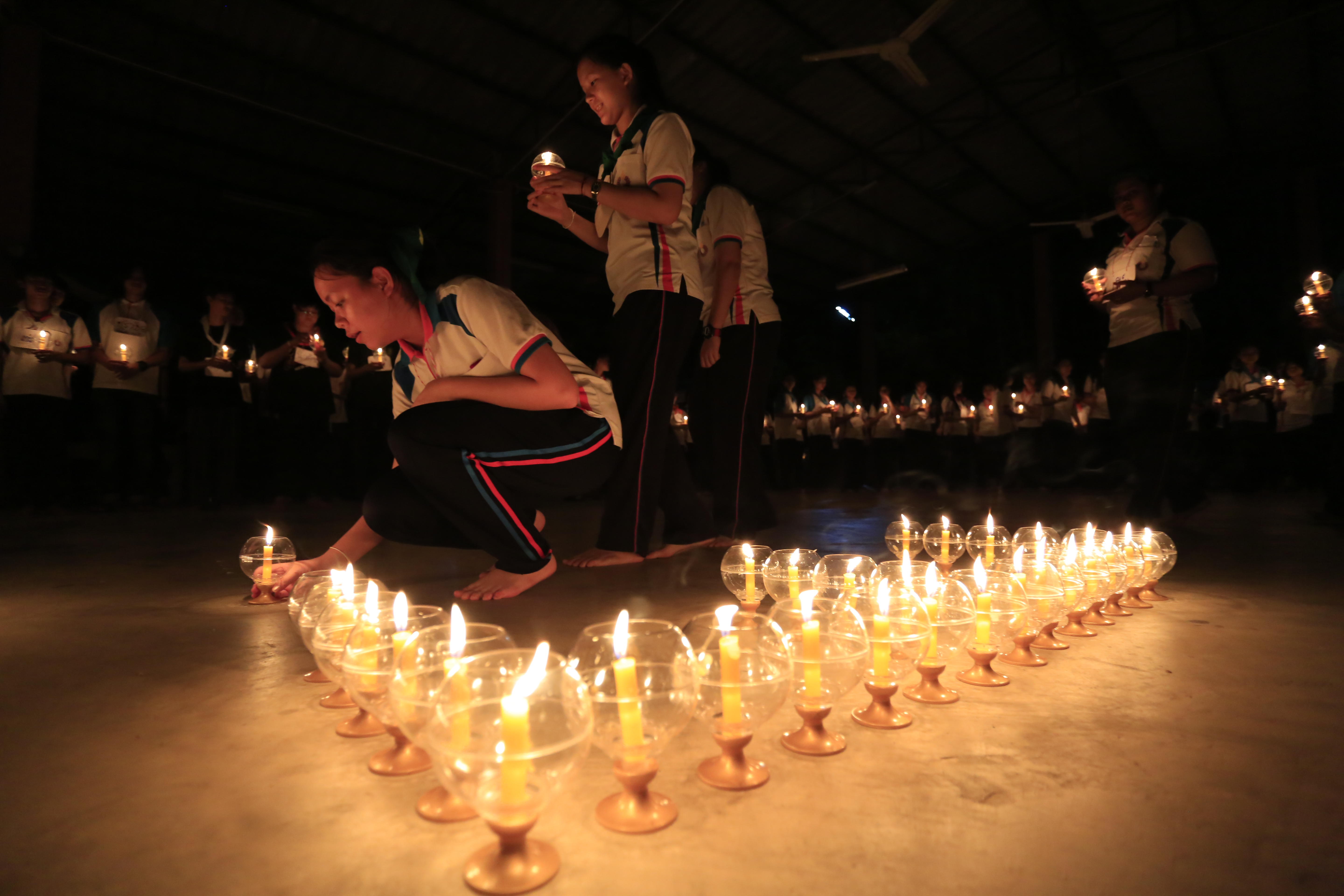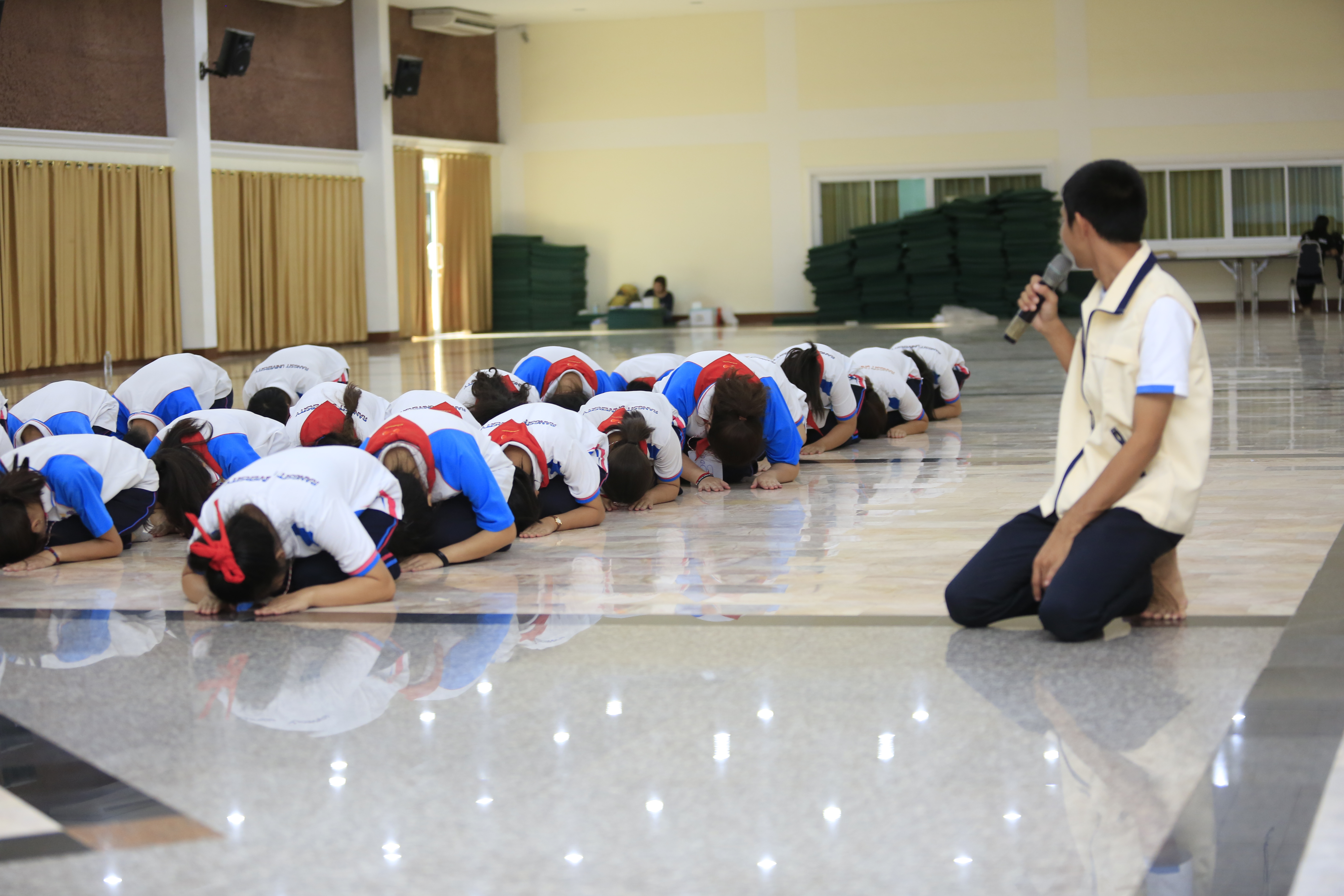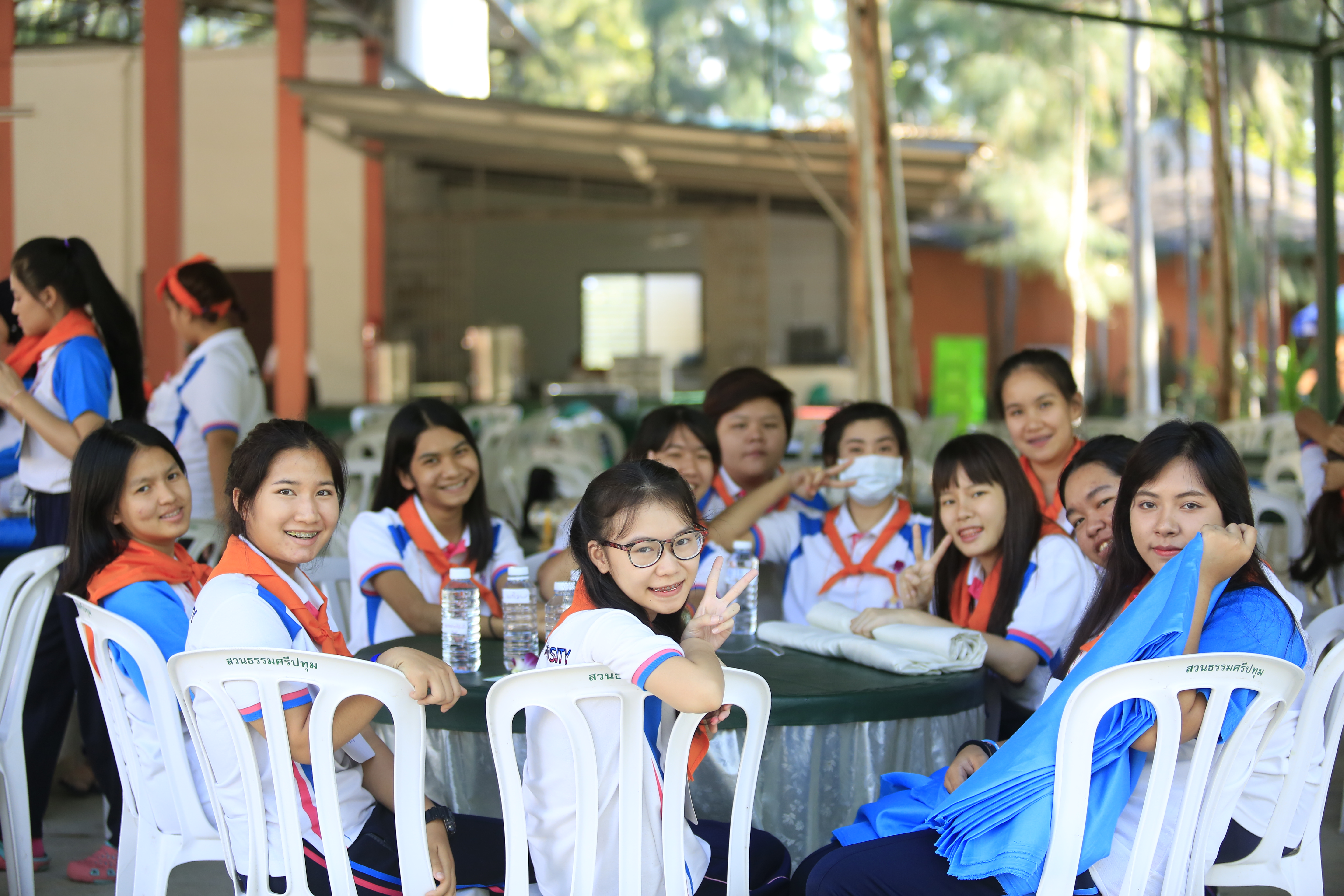 ณ สวนธรรมศรีปทุม อำเภอสามโคก จังหวัดปทุมธานี ในค่ายคุณธรรมมีนักศึกษา
