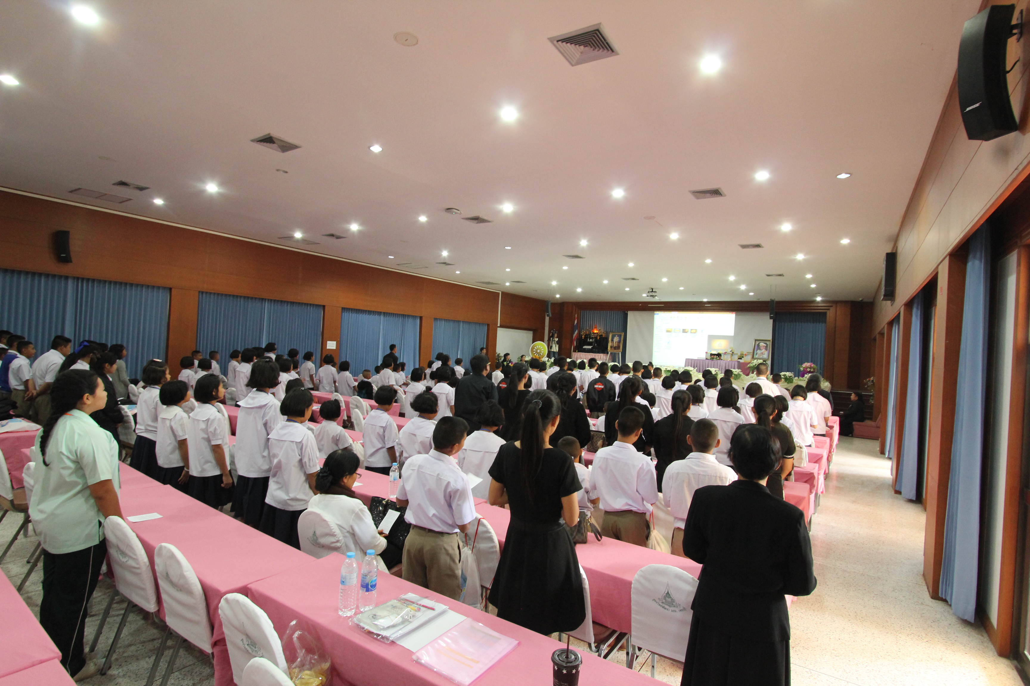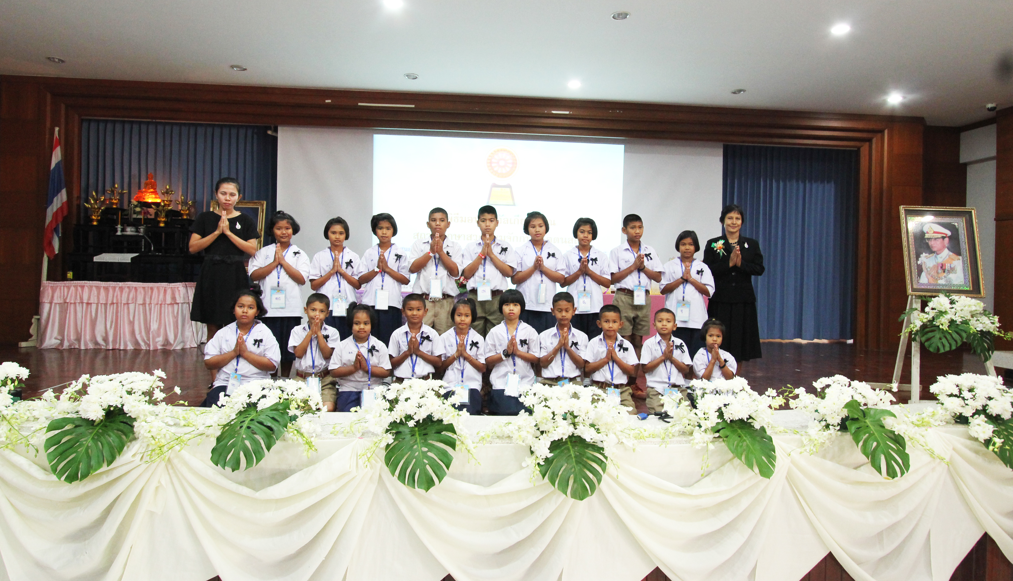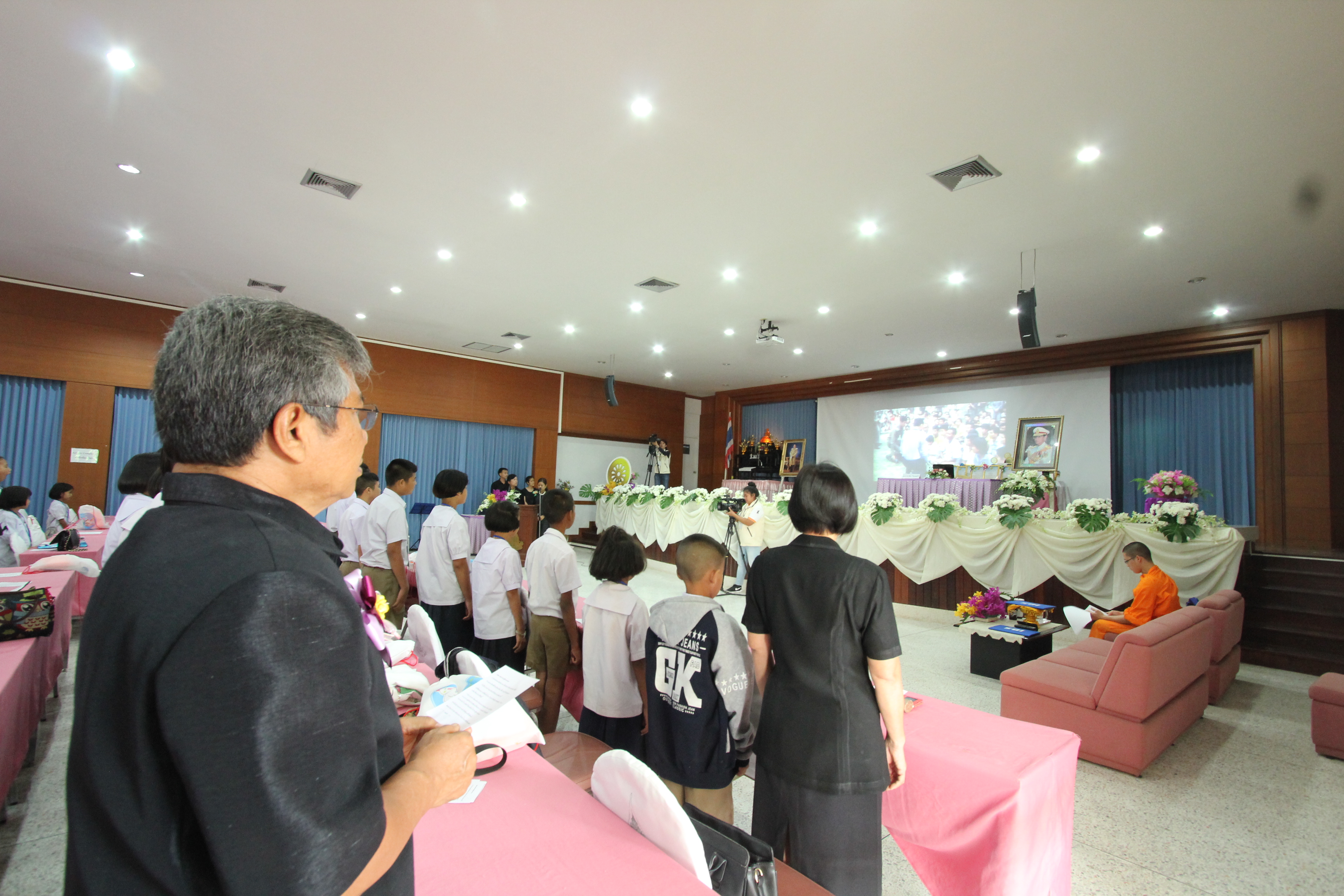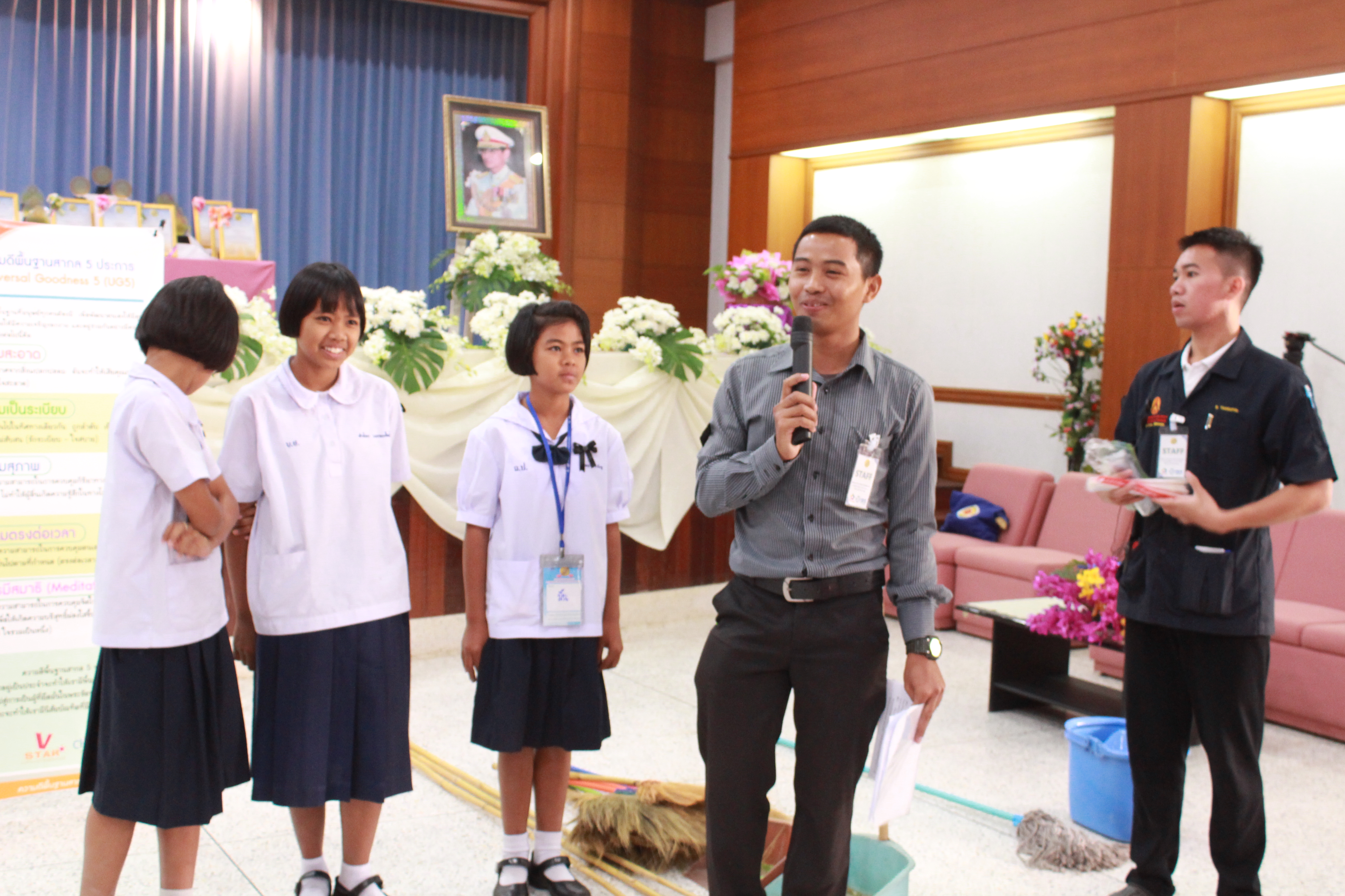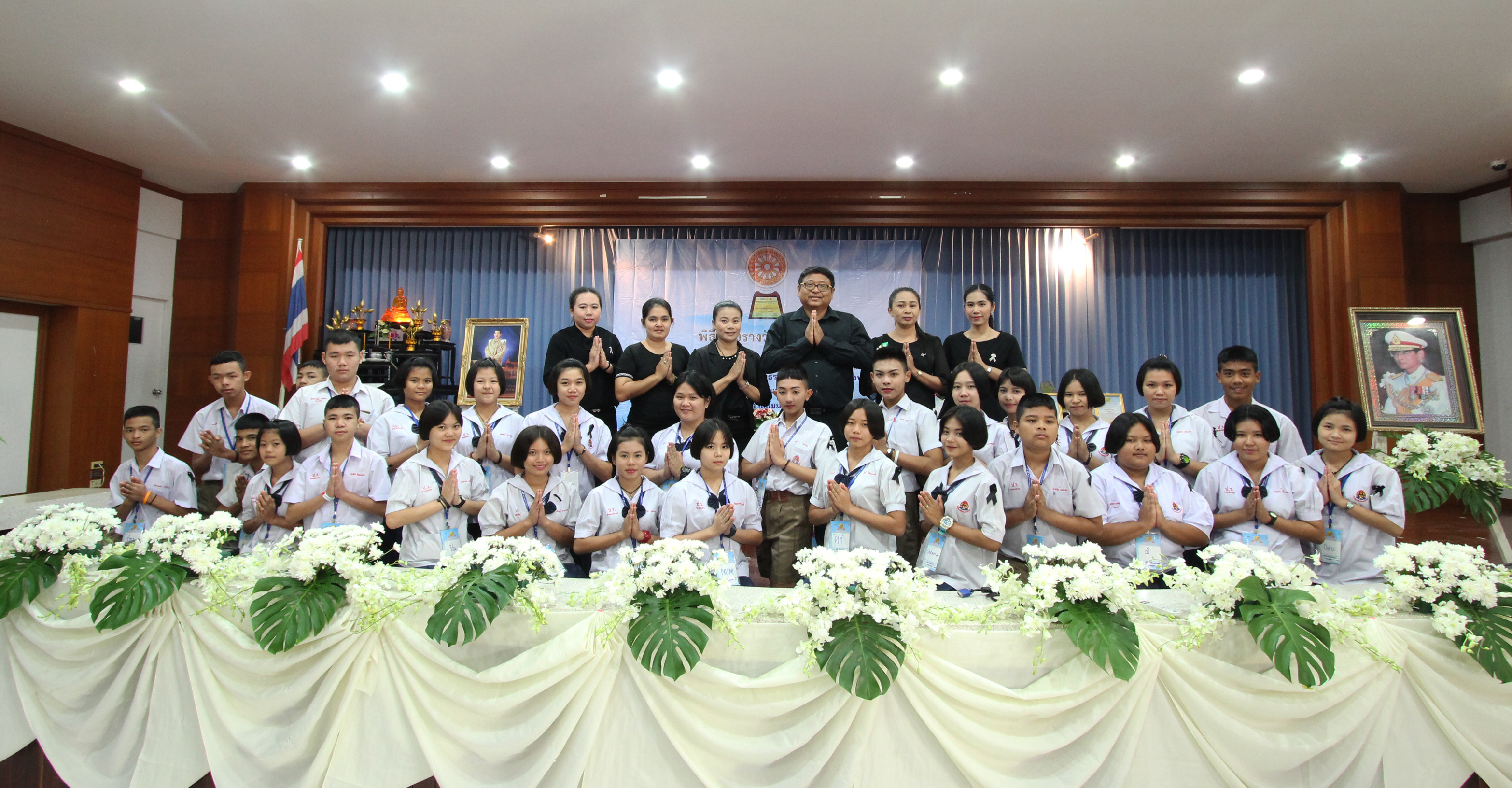 ในส่วนพิธีกรรมภาคบ่าย น้องได้ทำพิธีถวายความอาลัยแด่รัชกาลที่ ๙ โดยร้องเพลง พระราชาผู้ทรงธรรมและเพลงสรรเสริญพระบารมี จากนั้นตัวแทนนักเรียนได้กล่าวแสดงตนเป็นพุทธมามกะและกล่าวคำปฏิญาณตนของ V-STAR