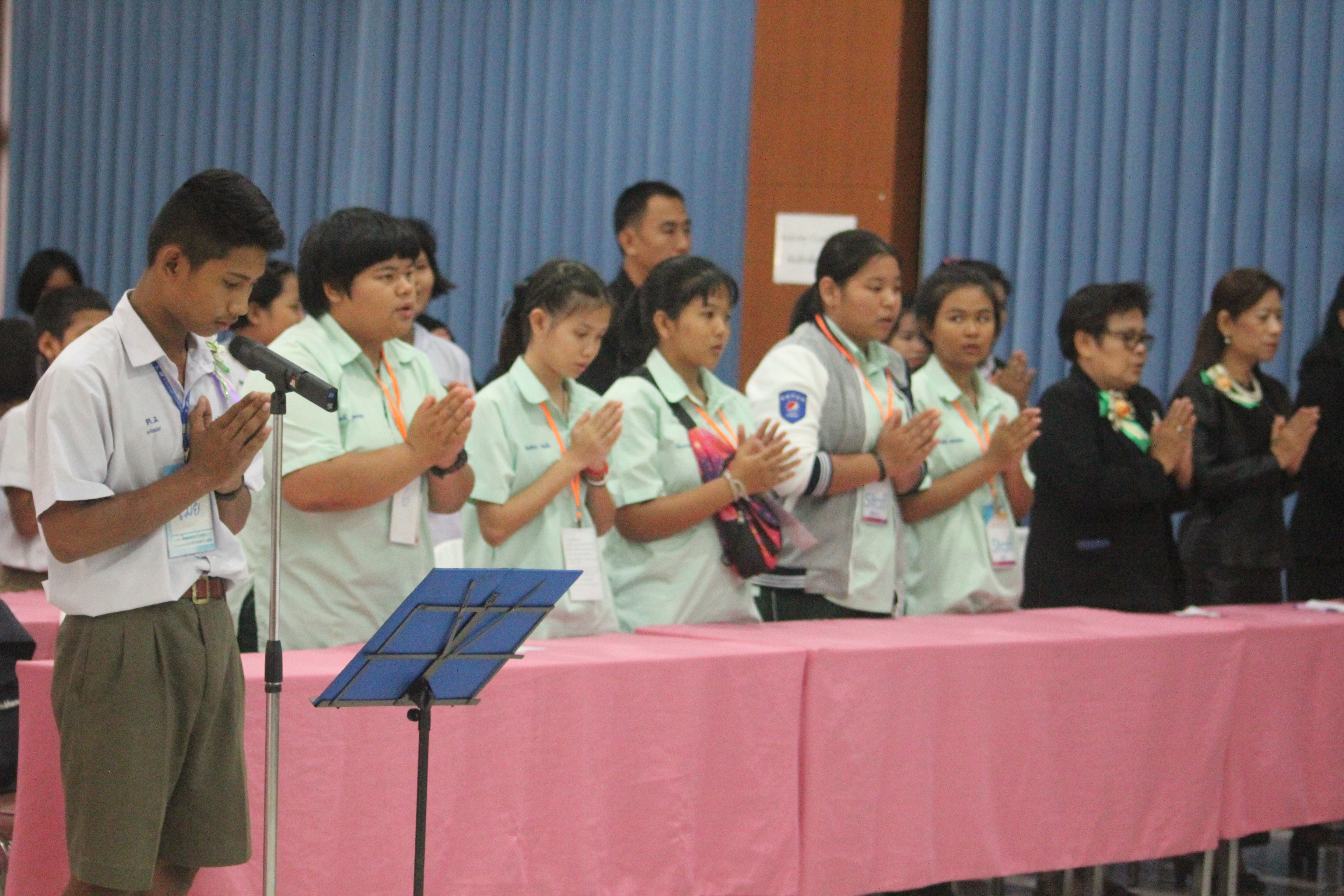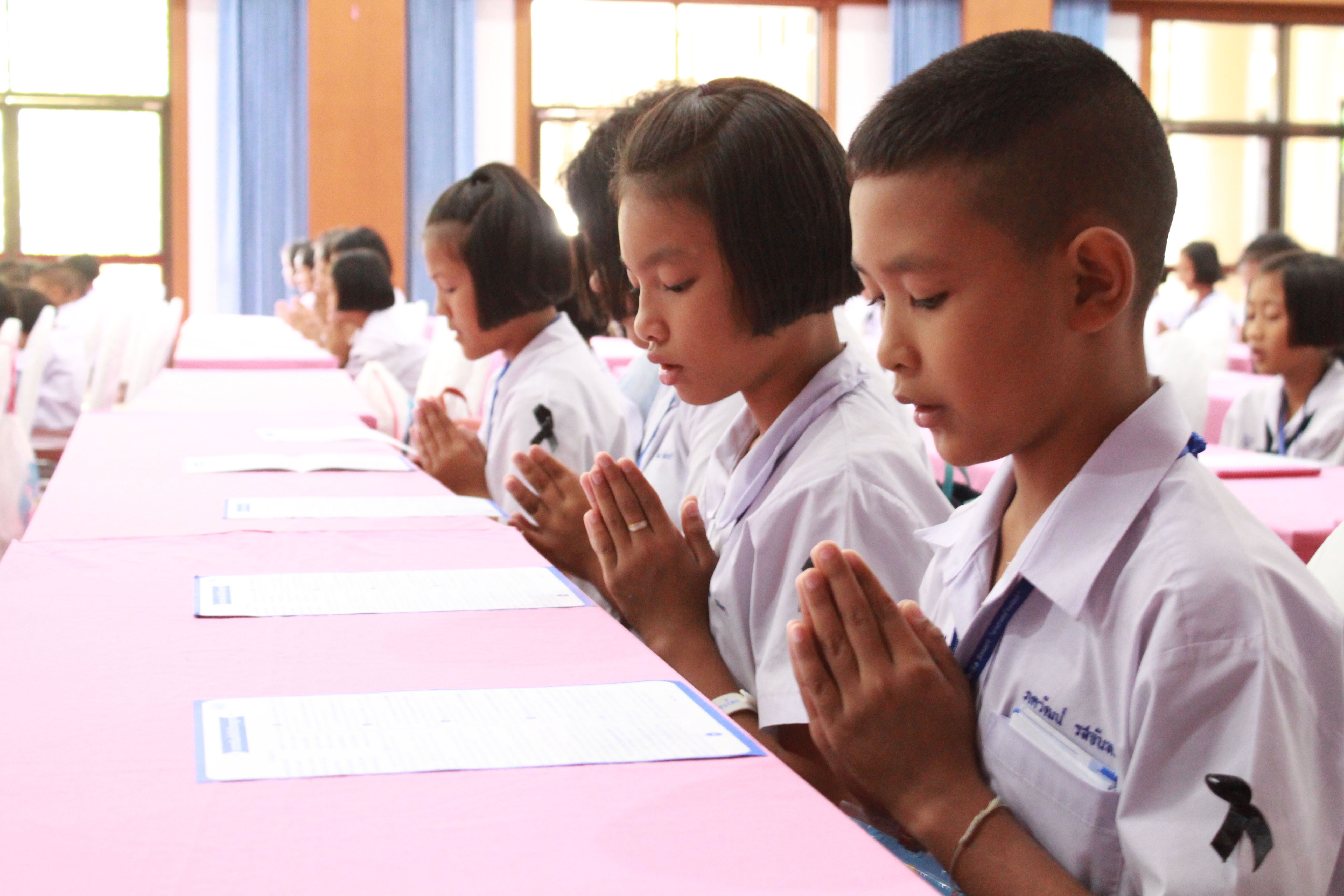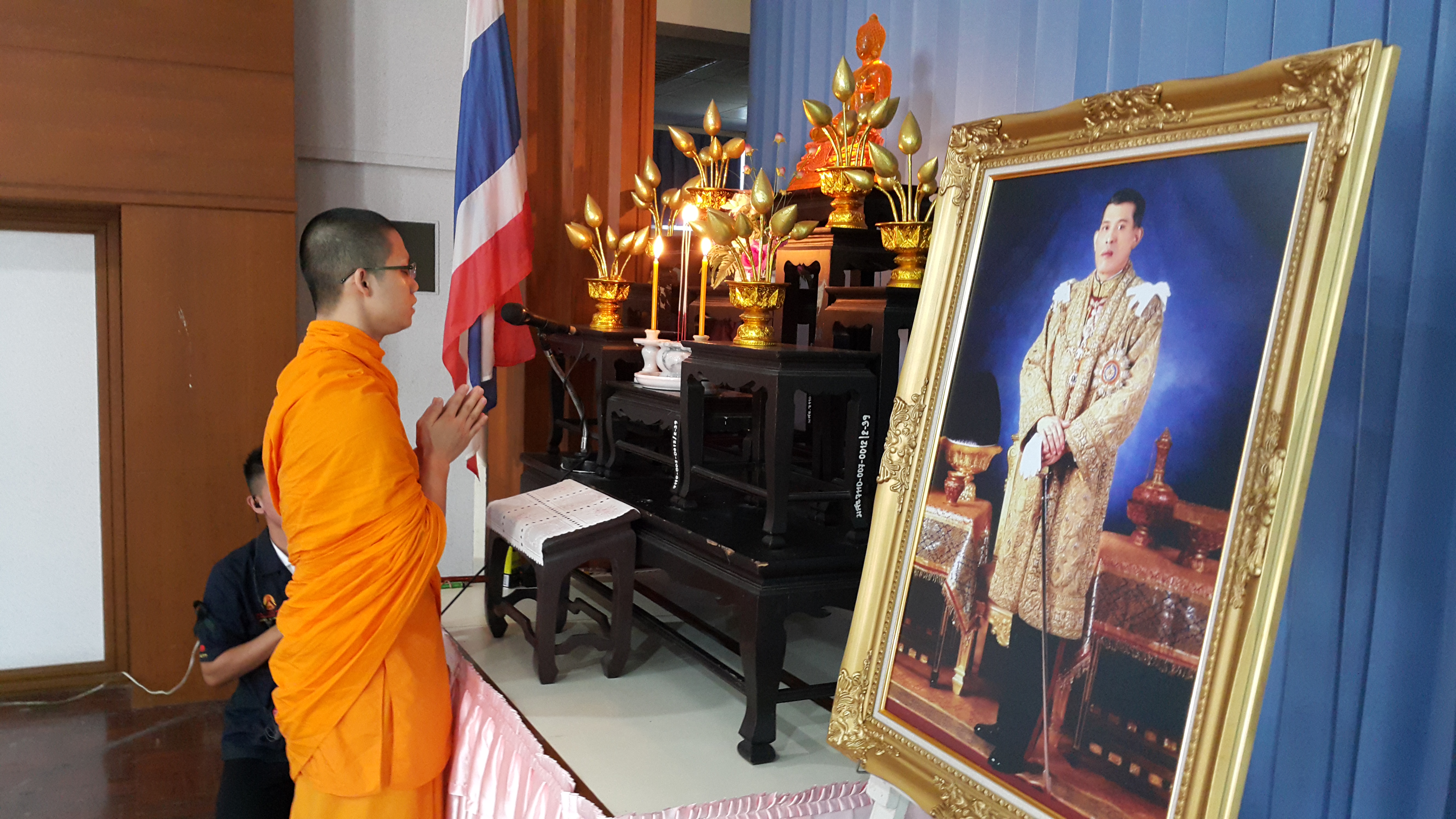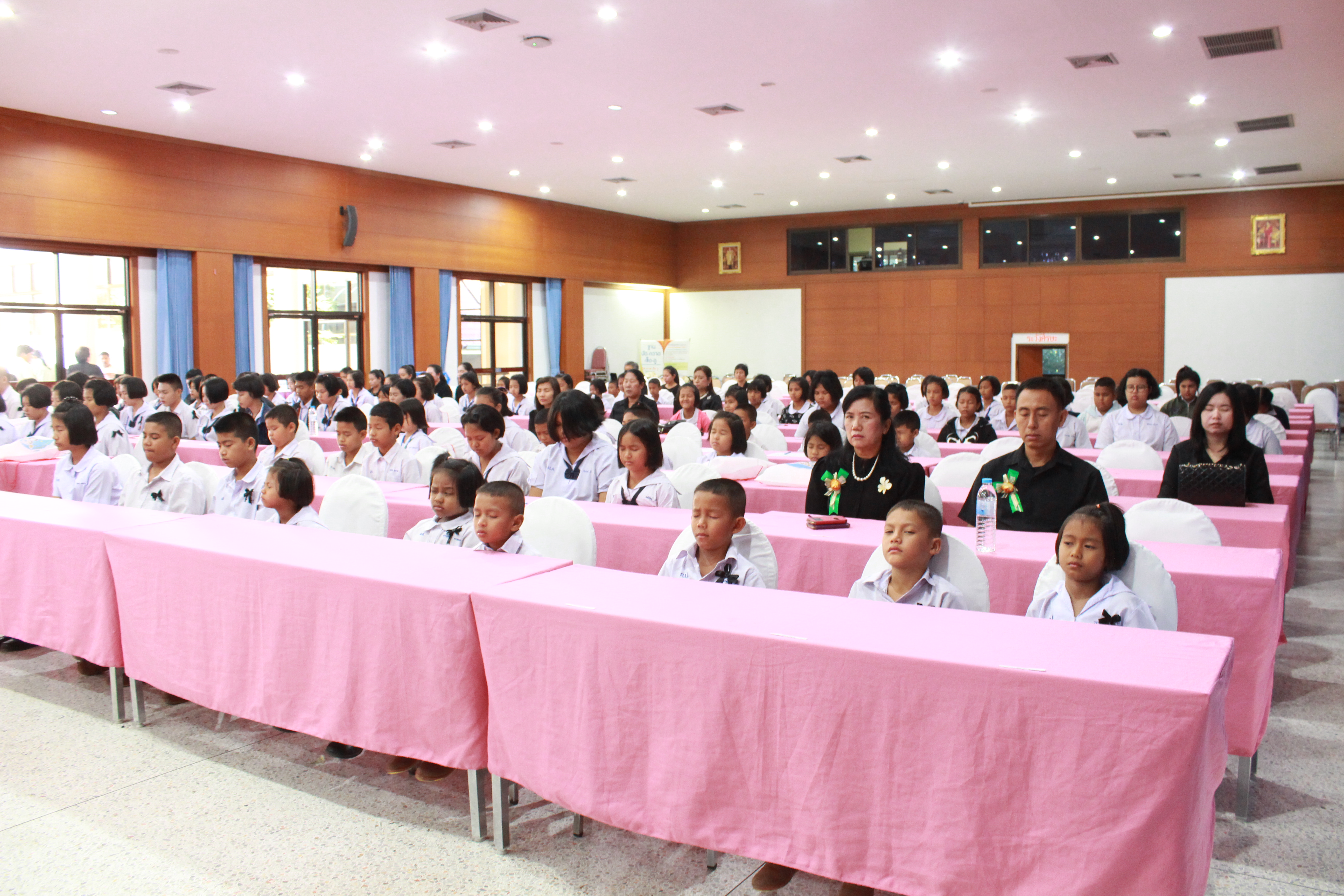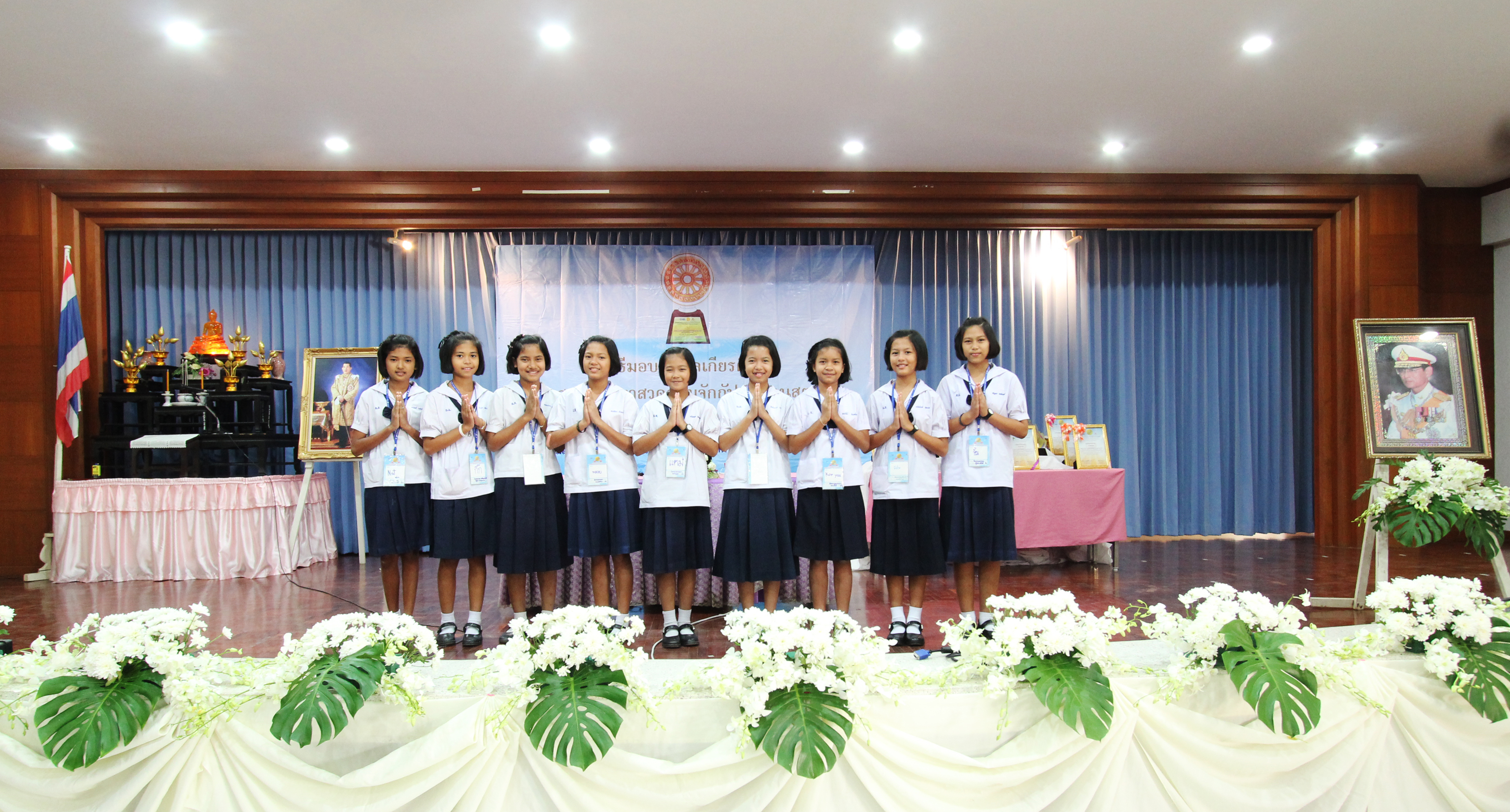 ในส่วนพิธีกรรมภาคบ่าย น้องได้ทำพิธีถวายความอาลัยแด่รัชกาลที่ ๙ โดยร้องเพลง พระราชาผู้ทรงธรรมและเพลงสรรเสริญพระบารมี จากนั้นตัวแทนนักเรียนได้กล่าวแสดงตนเป็นพุทธมามกะและกล่าวคำปฏิญาณตนของ V-STAR