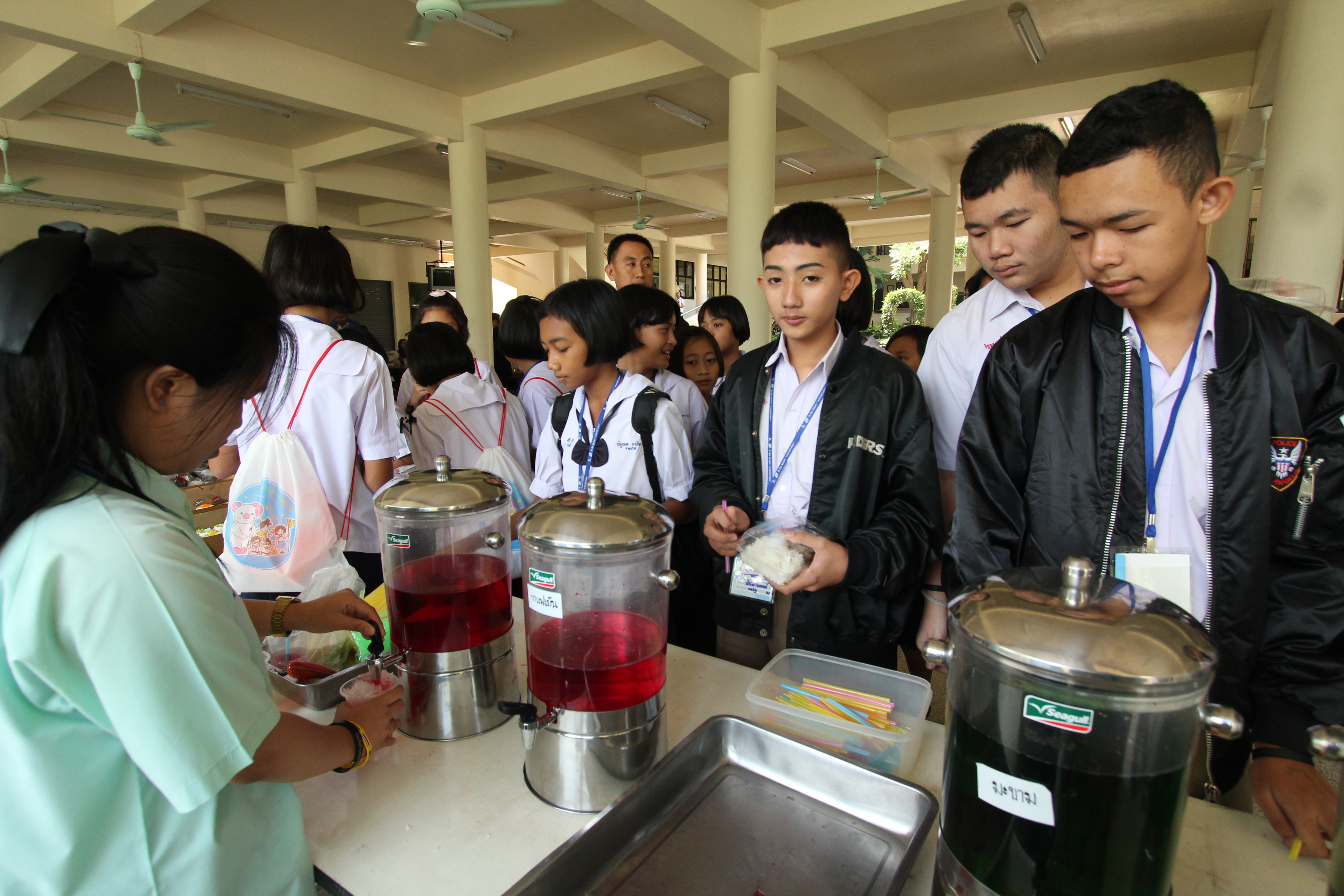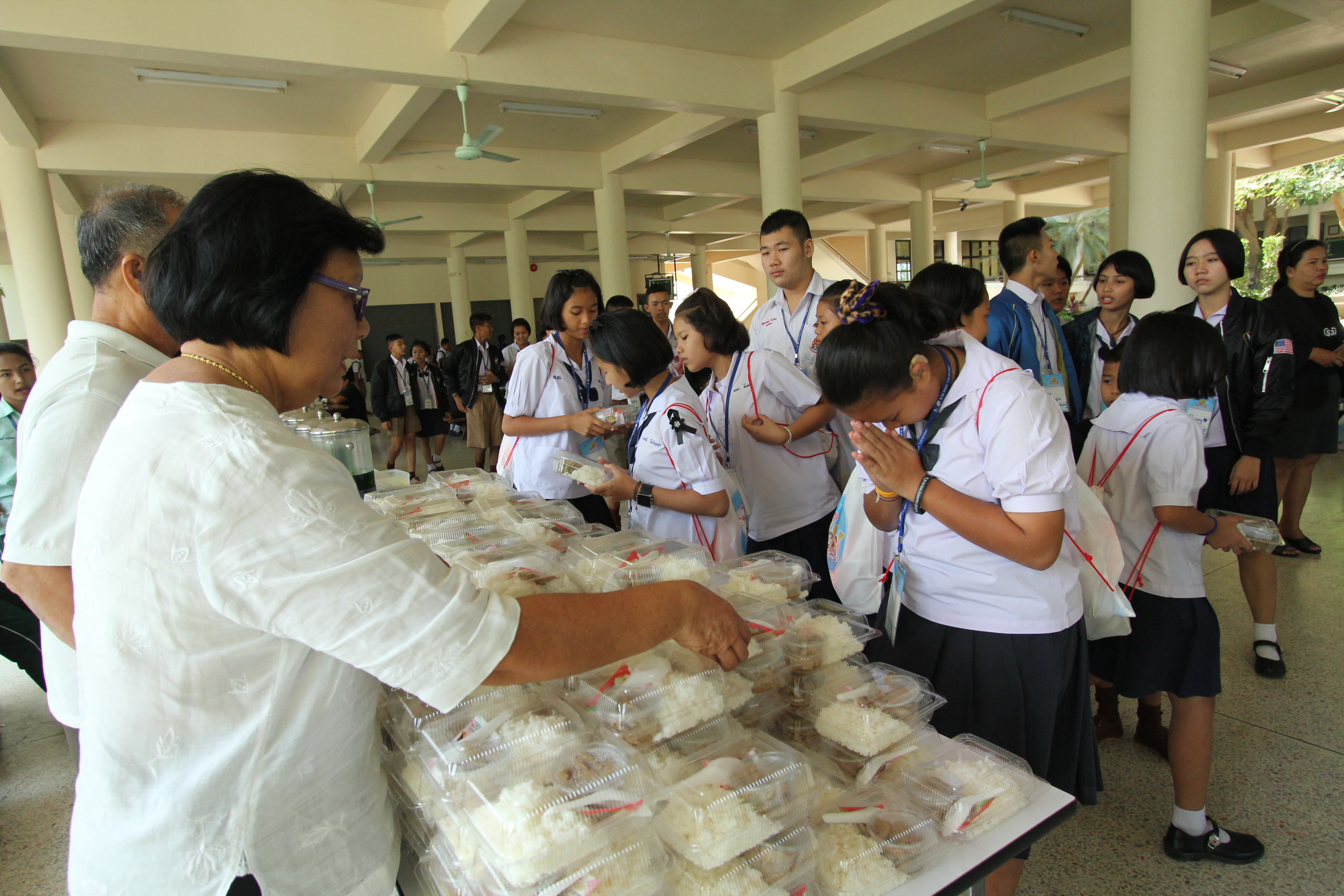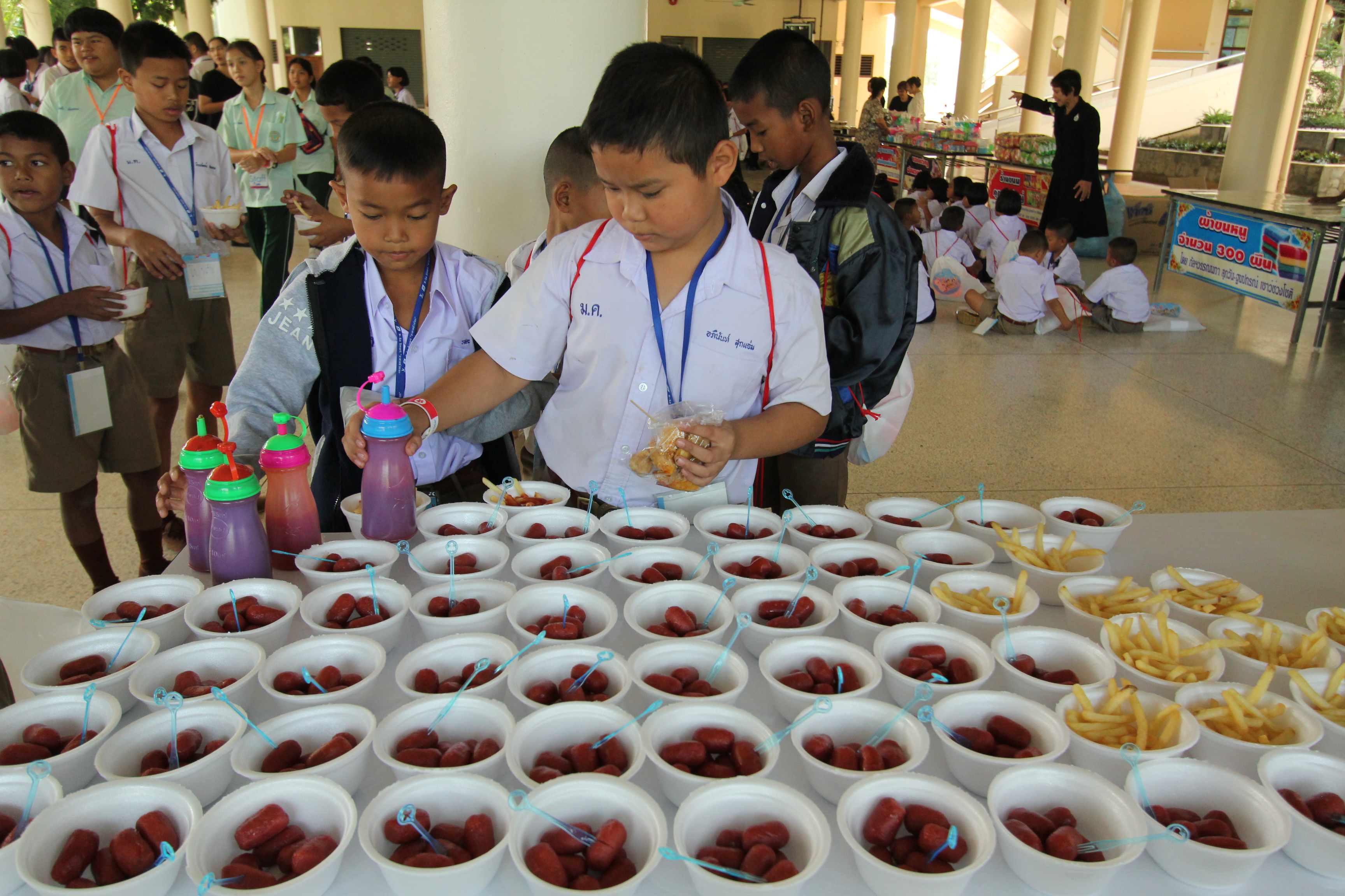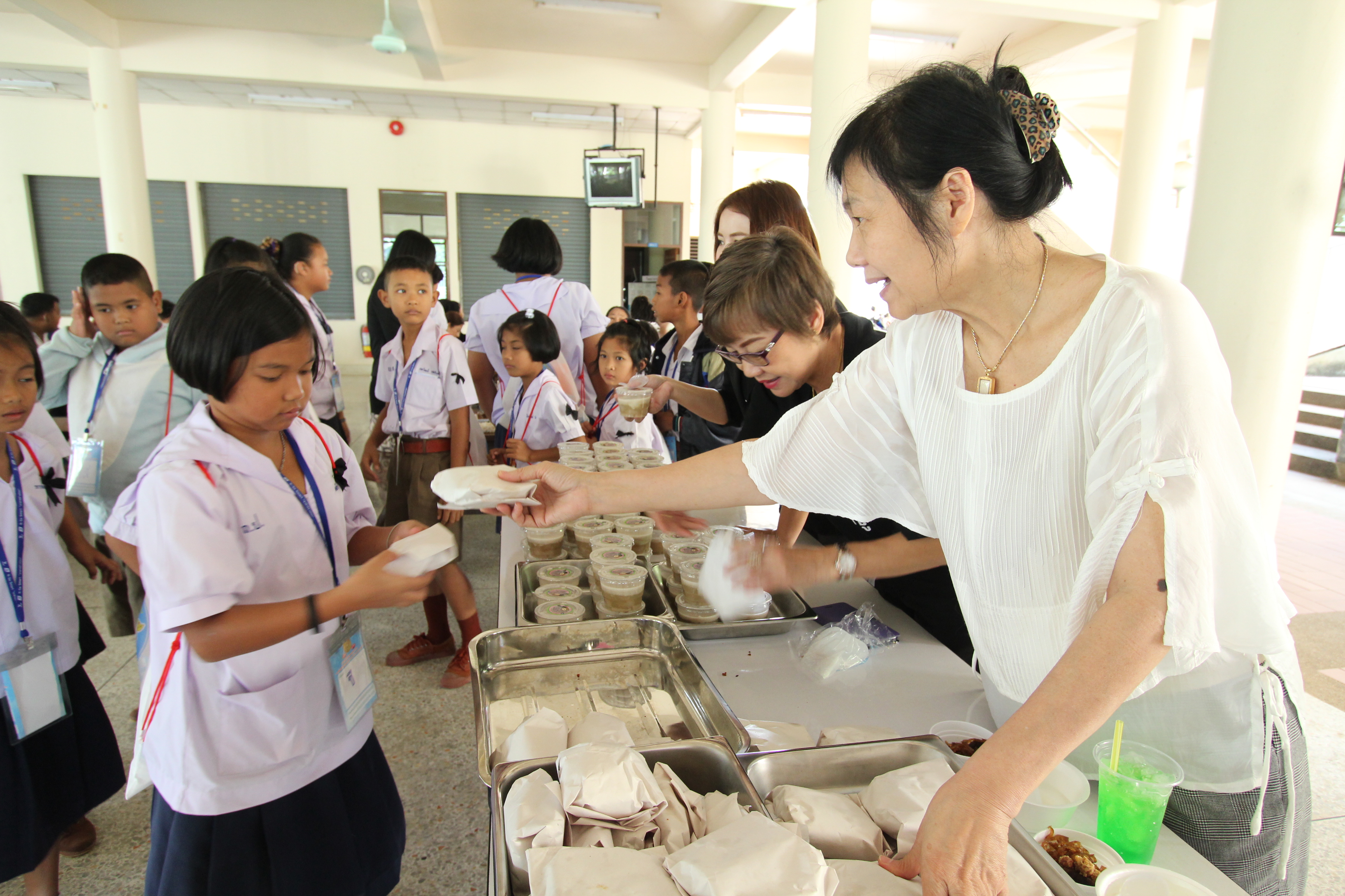 เมื่อได้รับความรู้จากฐานกิจกรรมอันแสนสนุกแล้ว น้องๆ ก็ได้มารับประทานอาหารกลางวัน แบบอิ่มอร่อยจากผู้ใหญ่ใจดี โดยมีอาหารให้เลือกรับประทานมากมาย